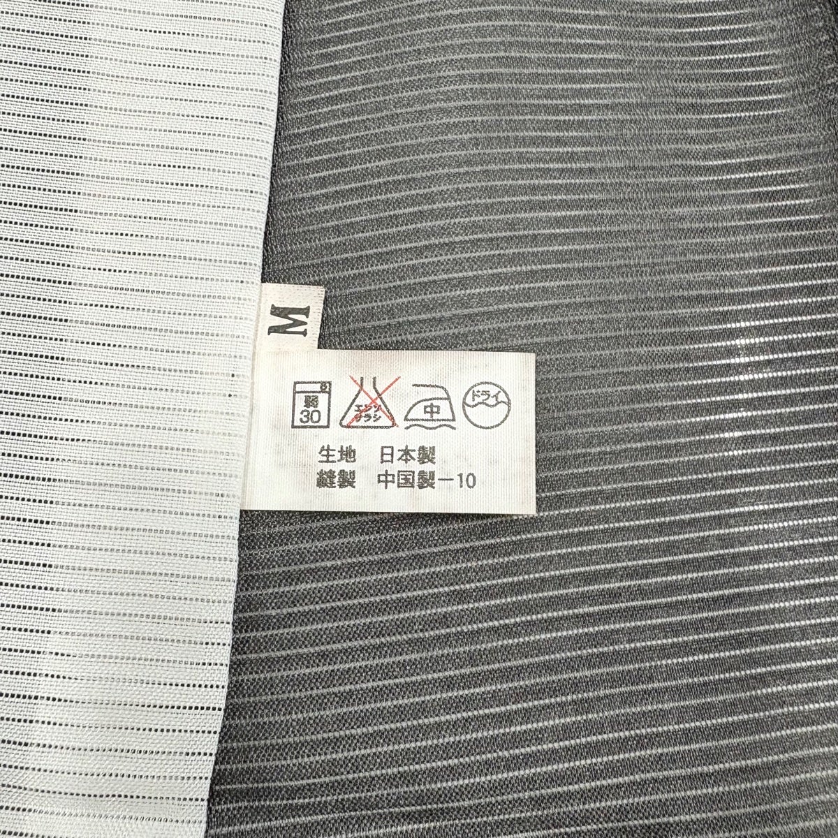 【美品】 紬 身丈162.5cm 裄丈65.5cm M 薄物 夏紬 縞 幾何学模様 黒 正絹 秀品