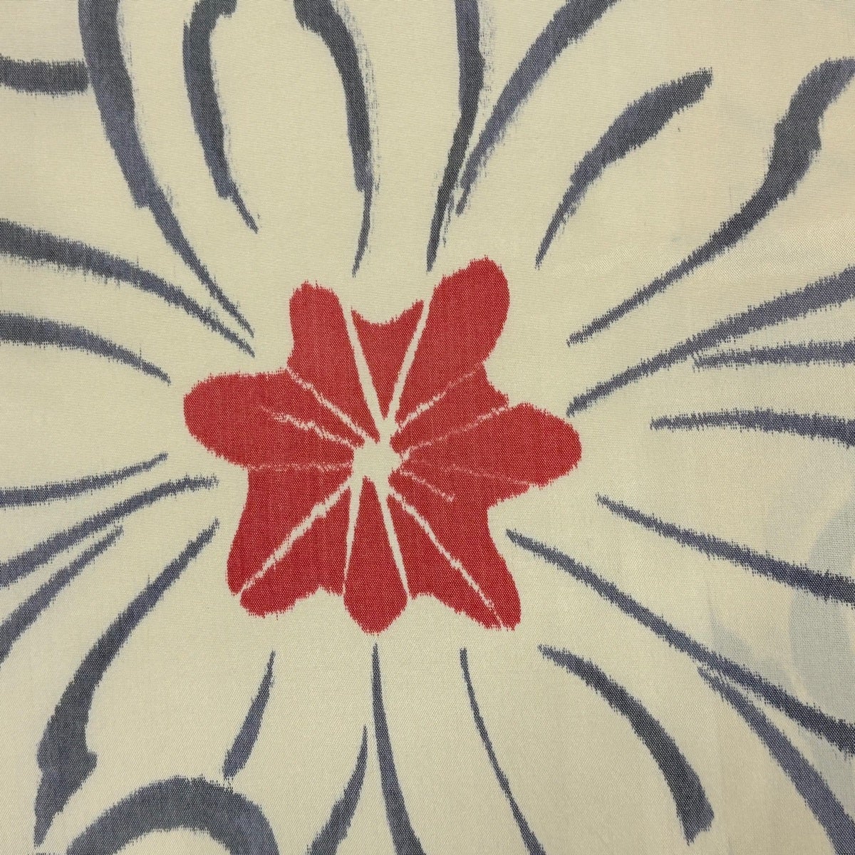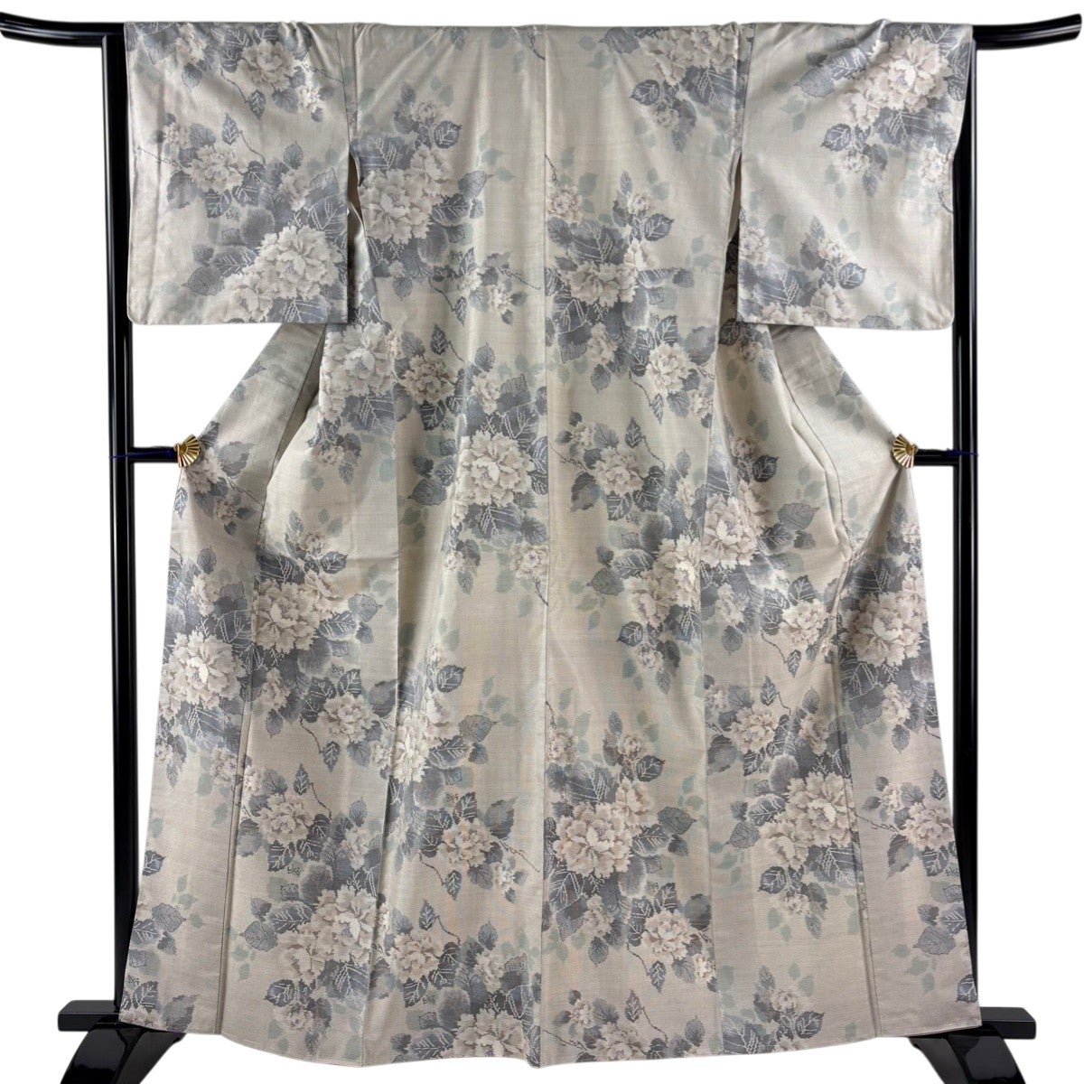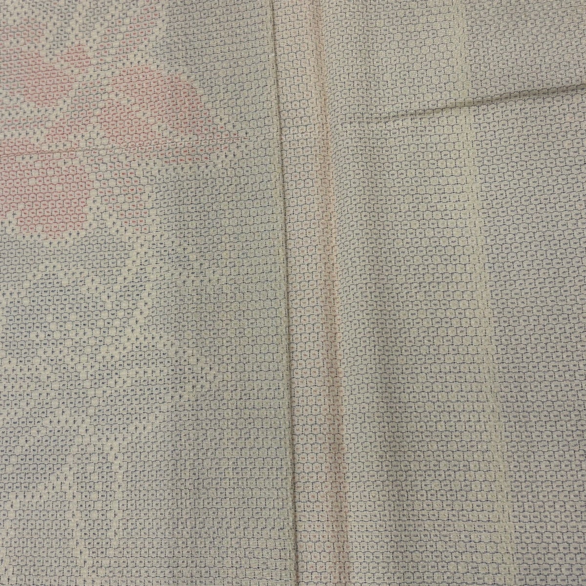 紬 身丈165cm 裄丈68.5cm L 単衣 草花 亀甲絣 灰白 正絹 秀品