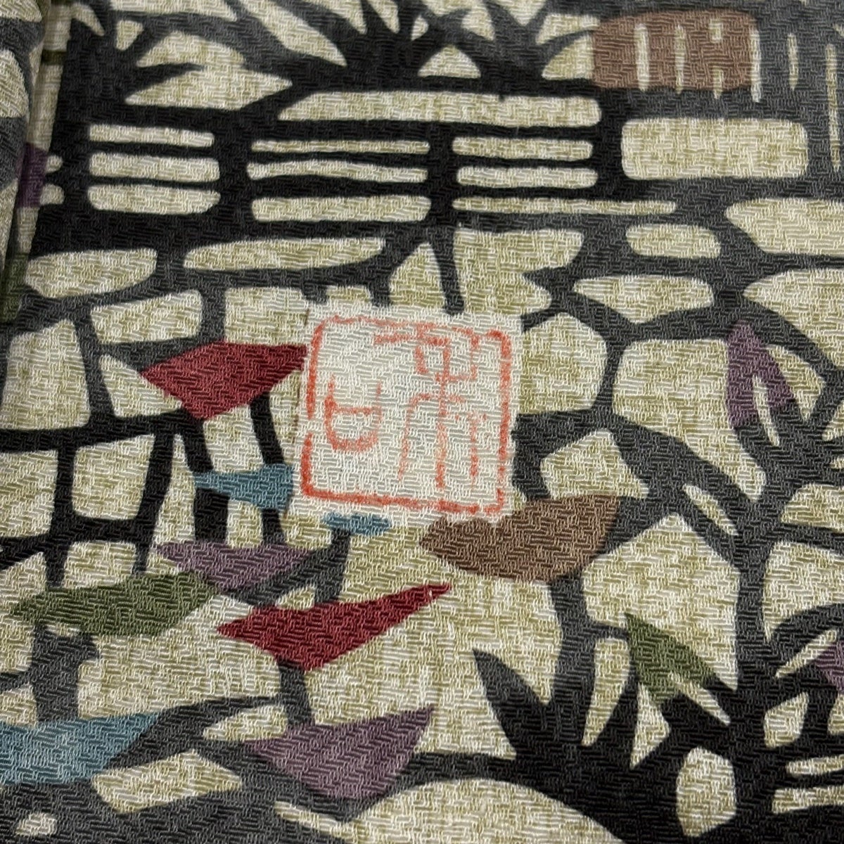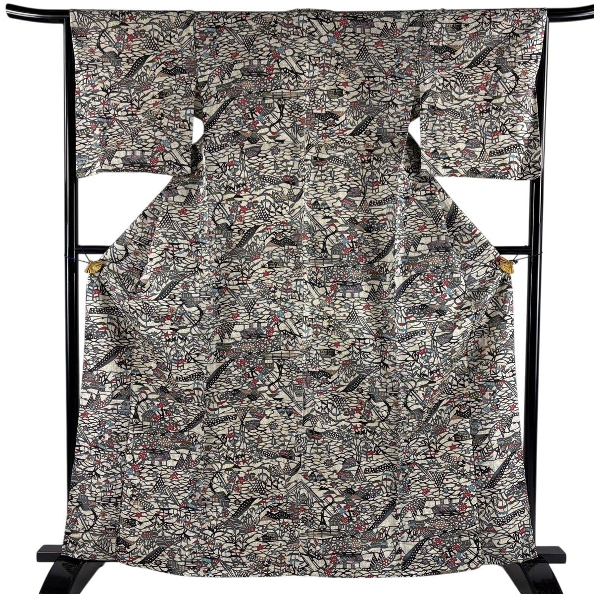 【美品】 小紋 身丈156cm 裄丈63cm S 袷 洛楽人工房 木目 墨色 正絹 逸品