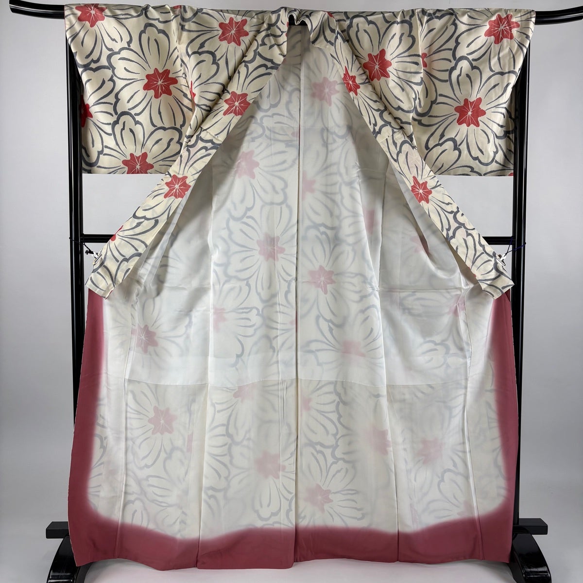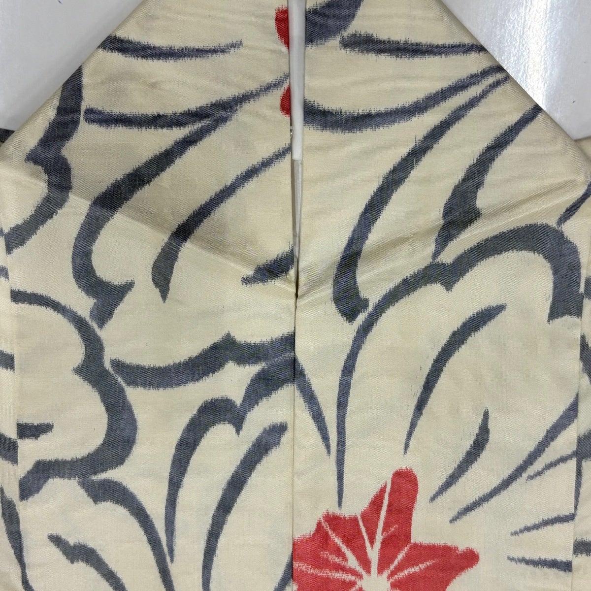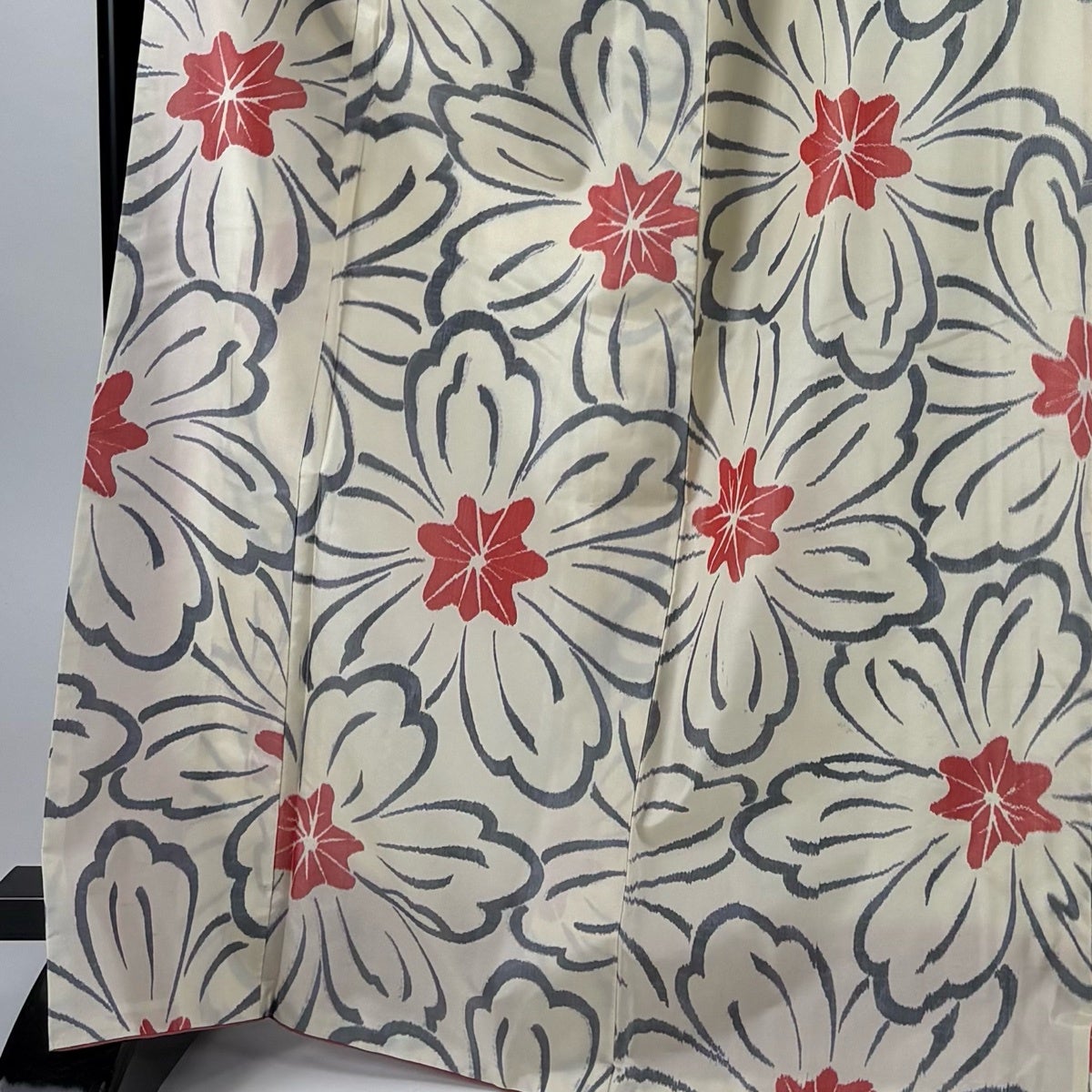 【美品】 紬 身丈170cm 裄丈69.5cm L 袷 やまと 花 クリーム 正絹 秀品
