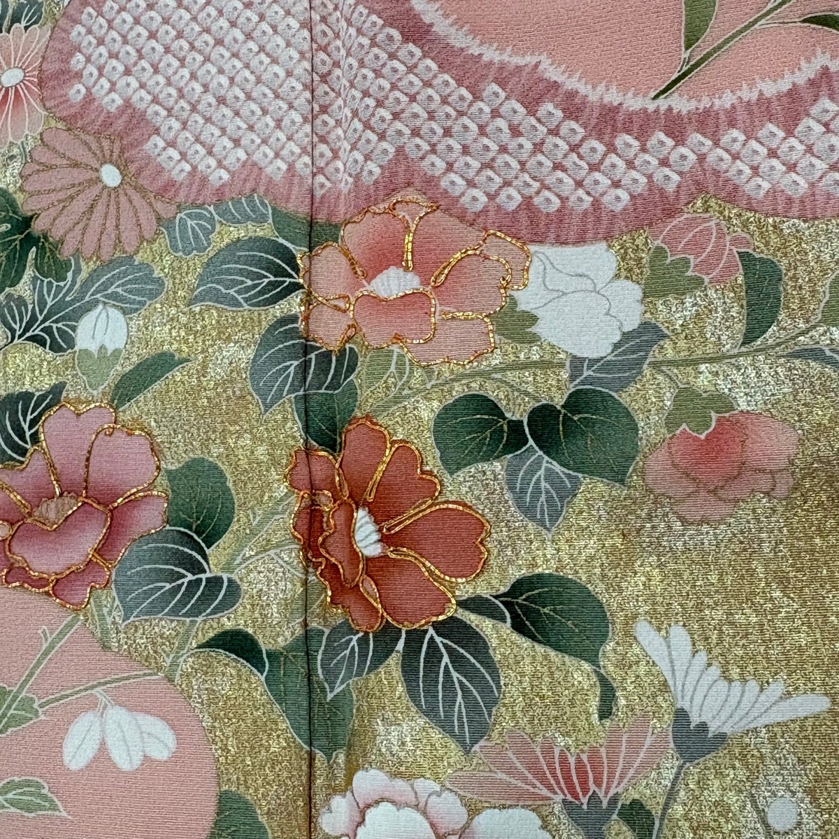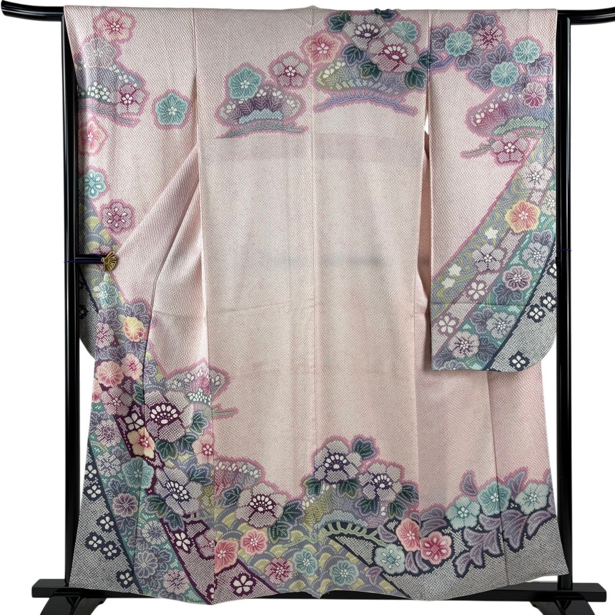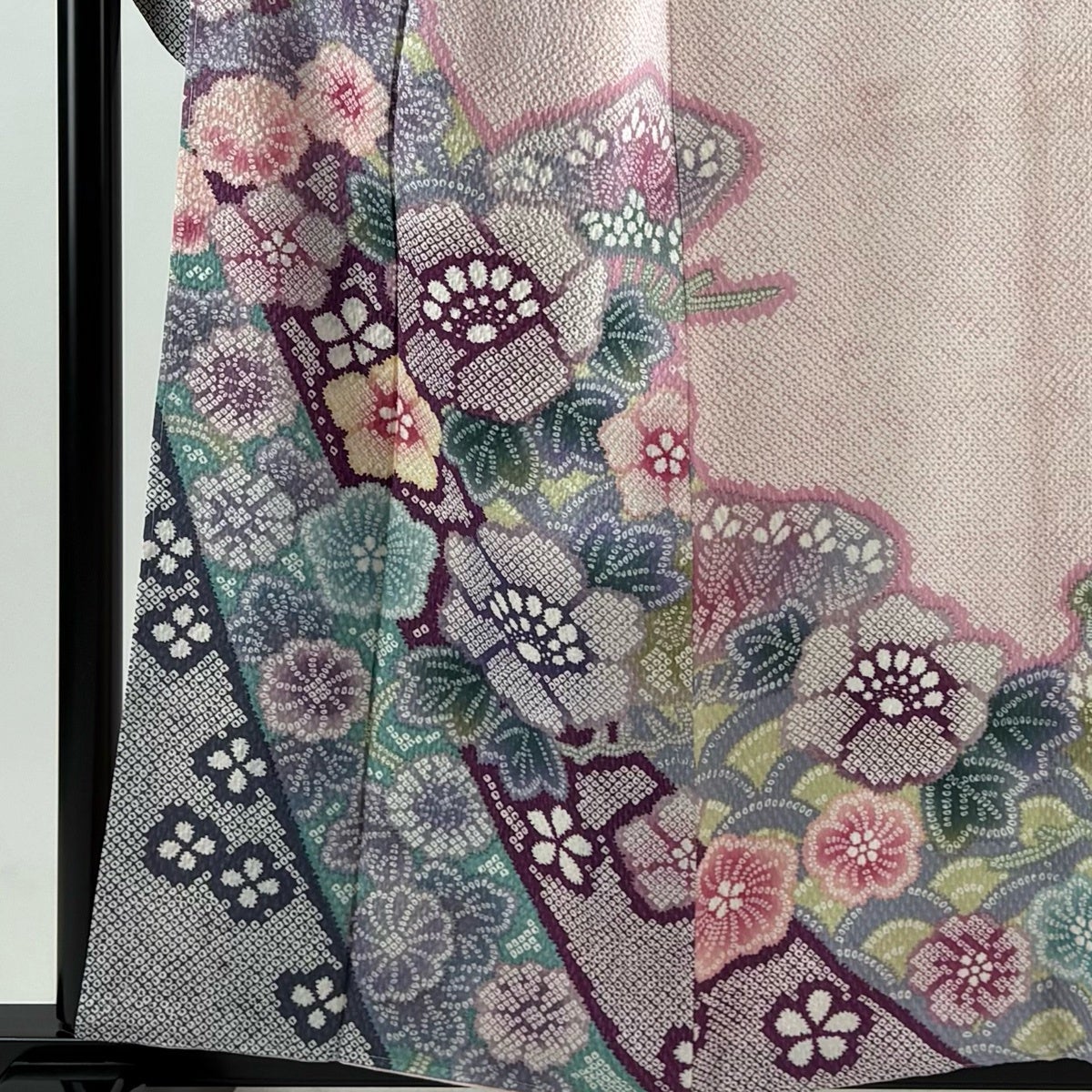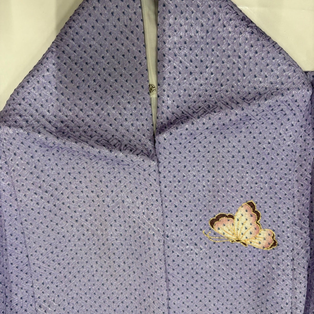 振袖 身丈164.5cm 裄丈65.5cm M 袷 蝶 草花 金糸 総絞り 薄紫 正絹 名品