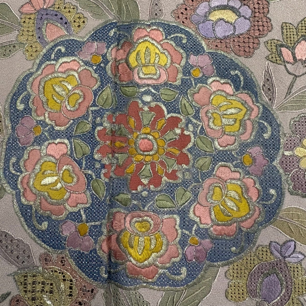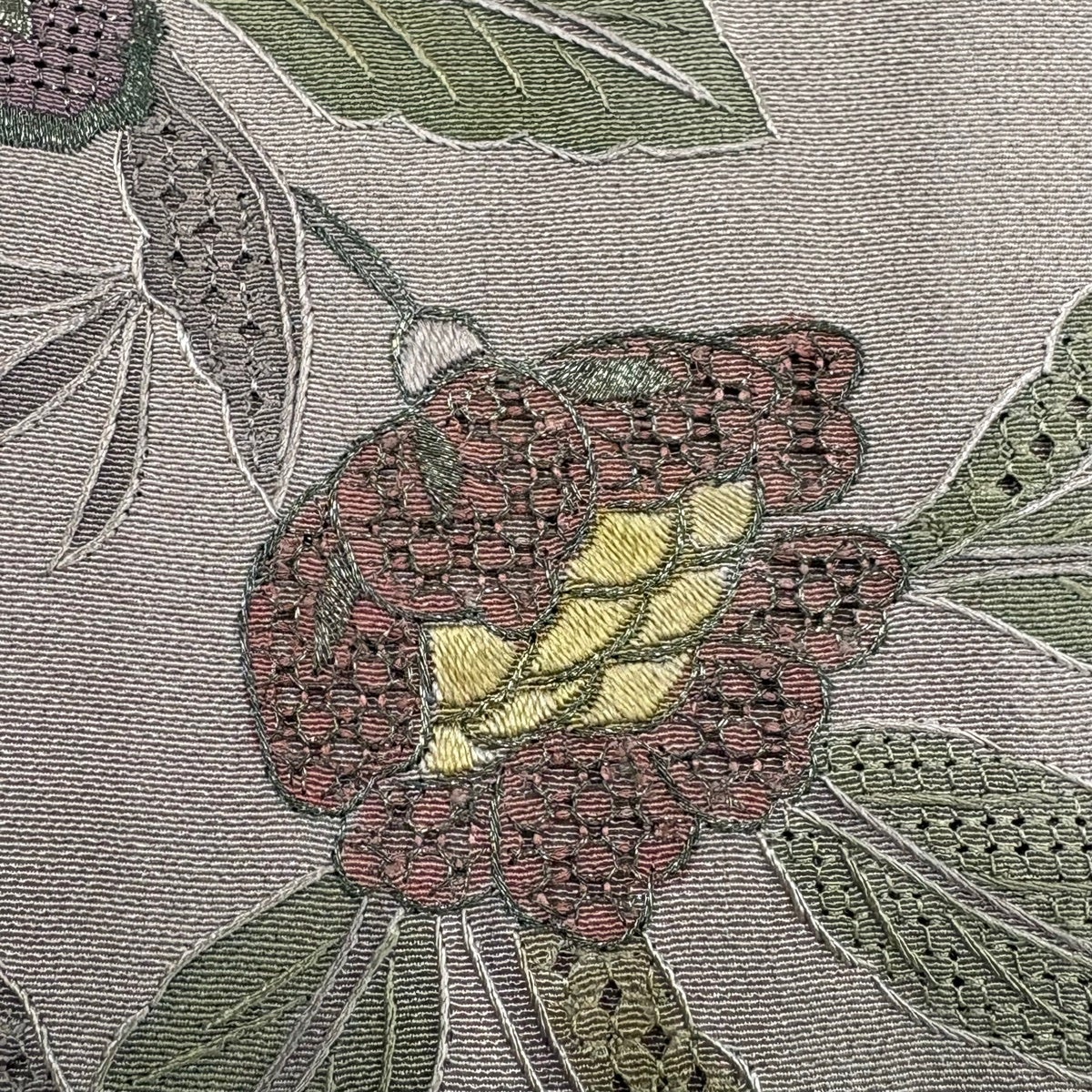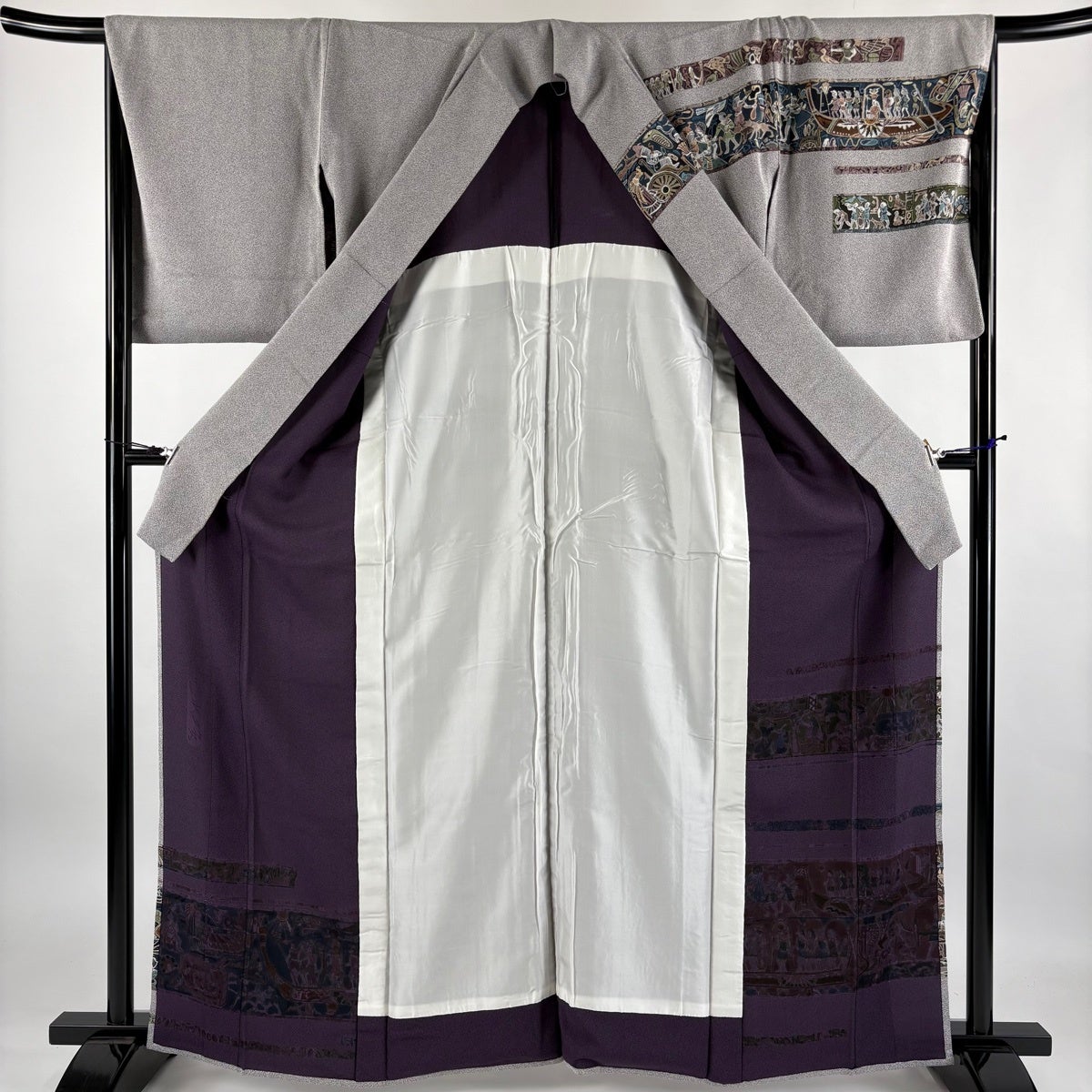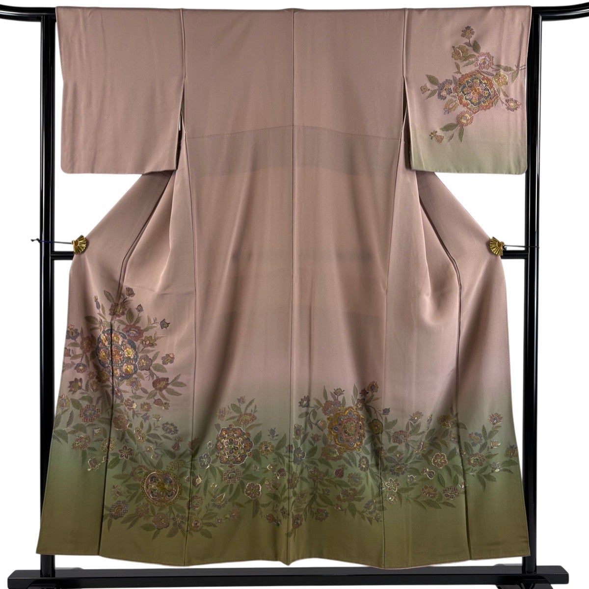訪問着 身丈154cm 裄丈64cm M 袷 華文 草花 金糸 刺繍 薄小豆 正絹 名品