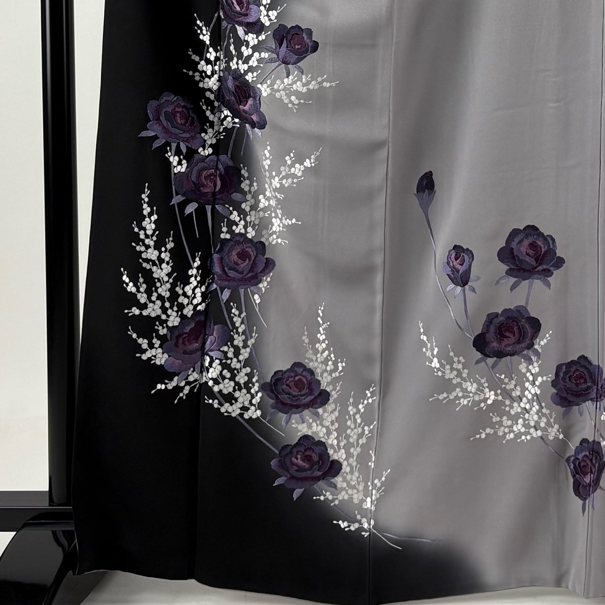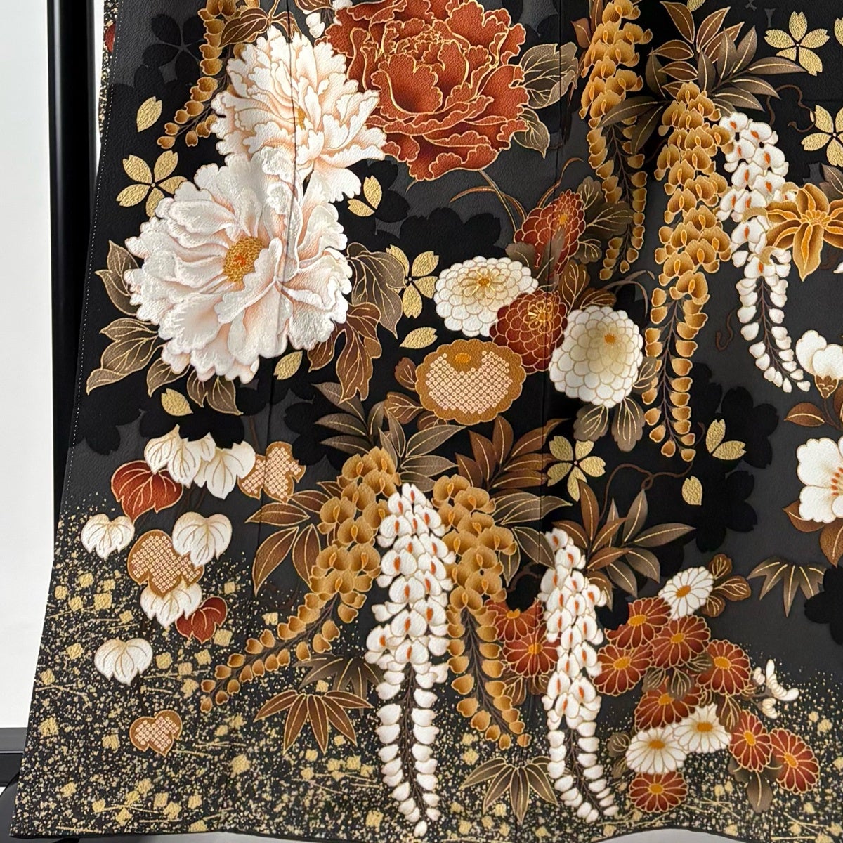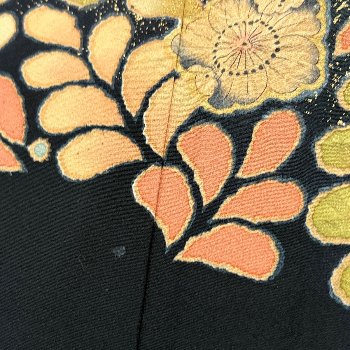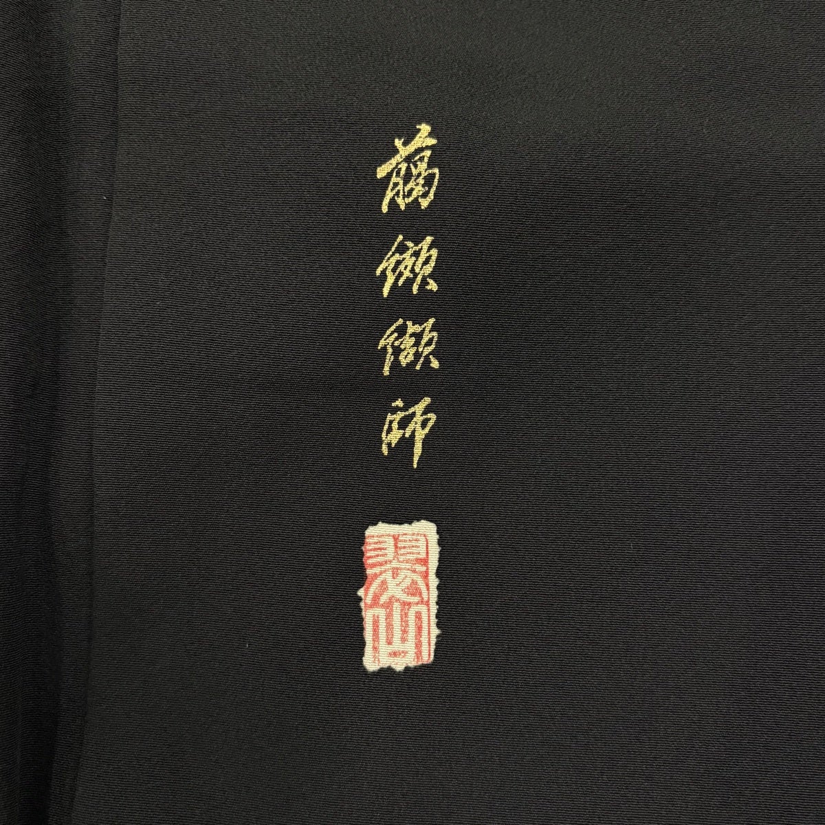 黒留袖 身丈158cm 裄丈64cm M 袷 落款あり 草花 黒 正絹 名品