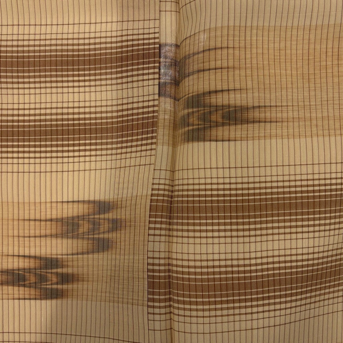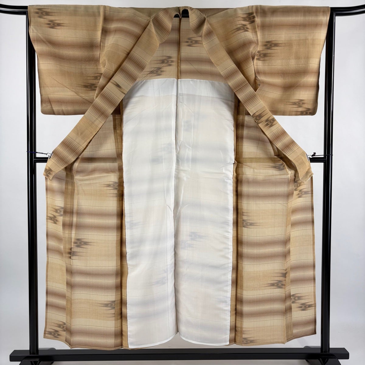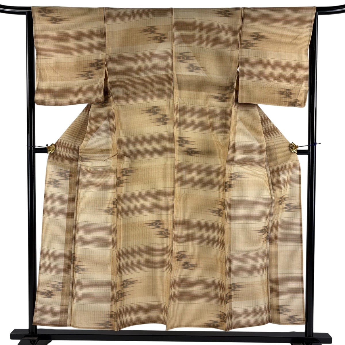 【美品】 紬 身丈161cm 裄丈64.5cm M 薄物 紗 縦縞 薄茶色 正絹 秀品
