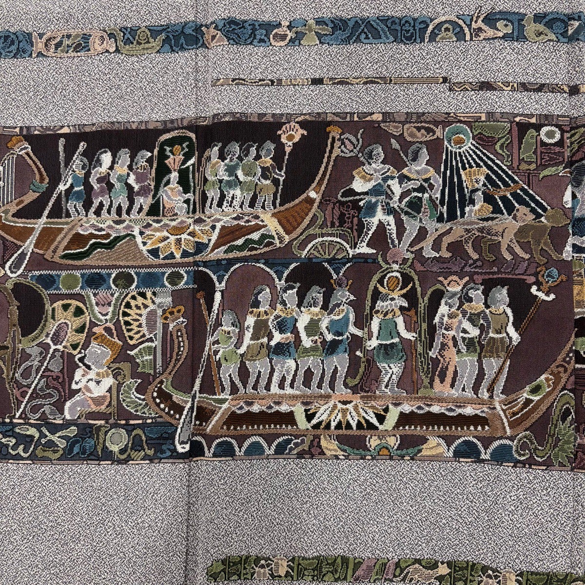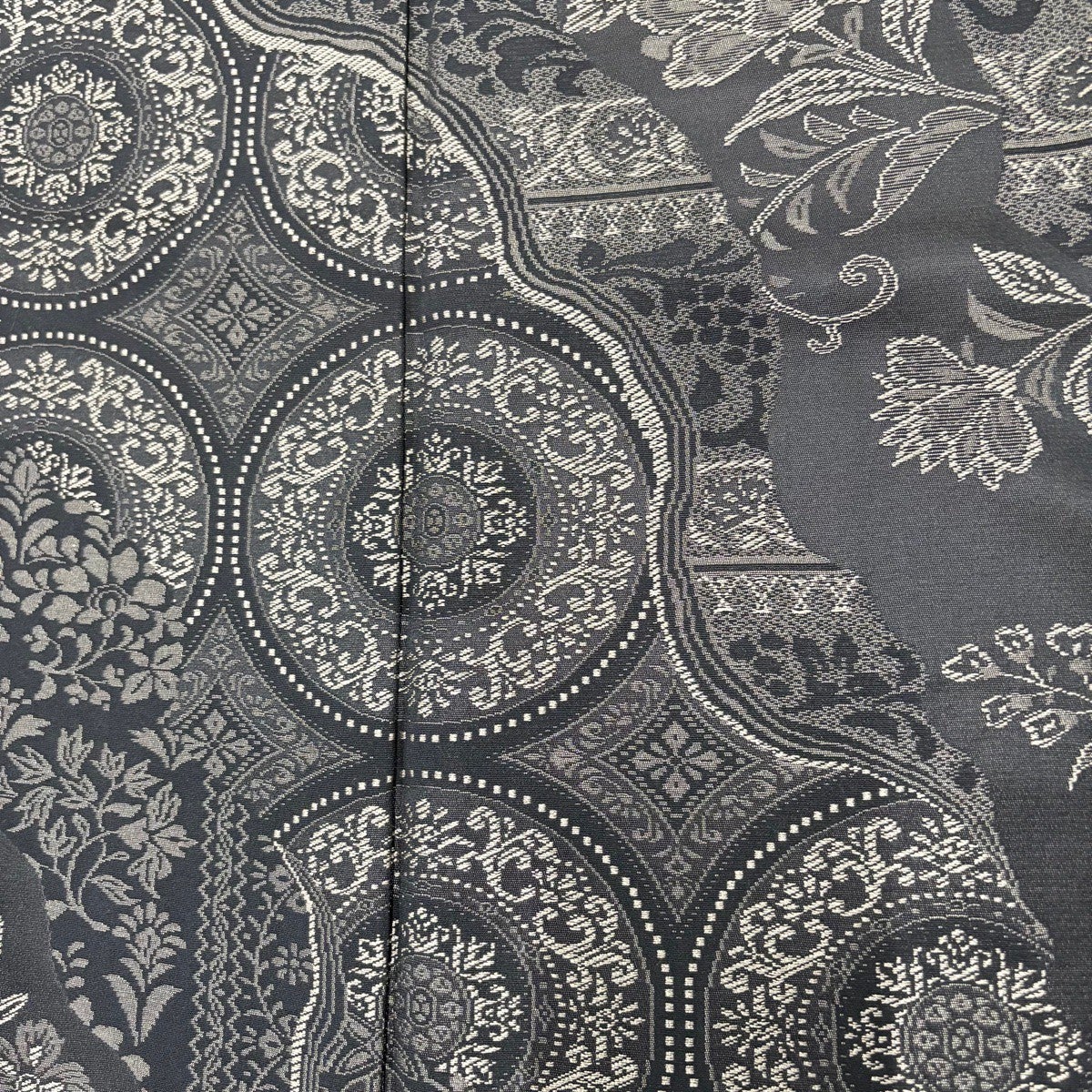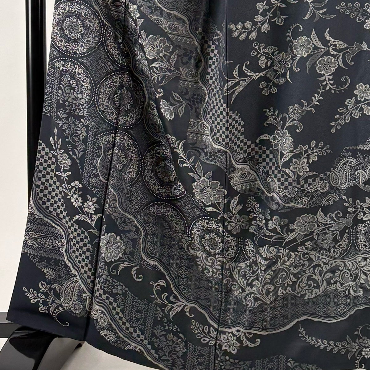 【美品】 道中着 身丈122cm 裄丈70cm L 和装コート 幾何学模様 銀通し ぼかし 墨色 正絹 逸品