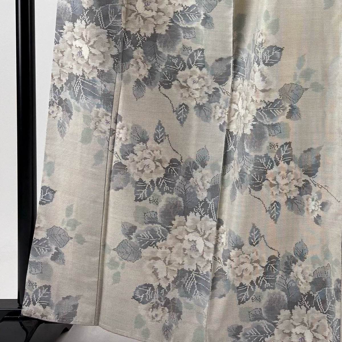 【美品】 羽織 身丈99cm 裄丈67cm M 雪の結晶 ぼかし 灰緑 正絹 逸品