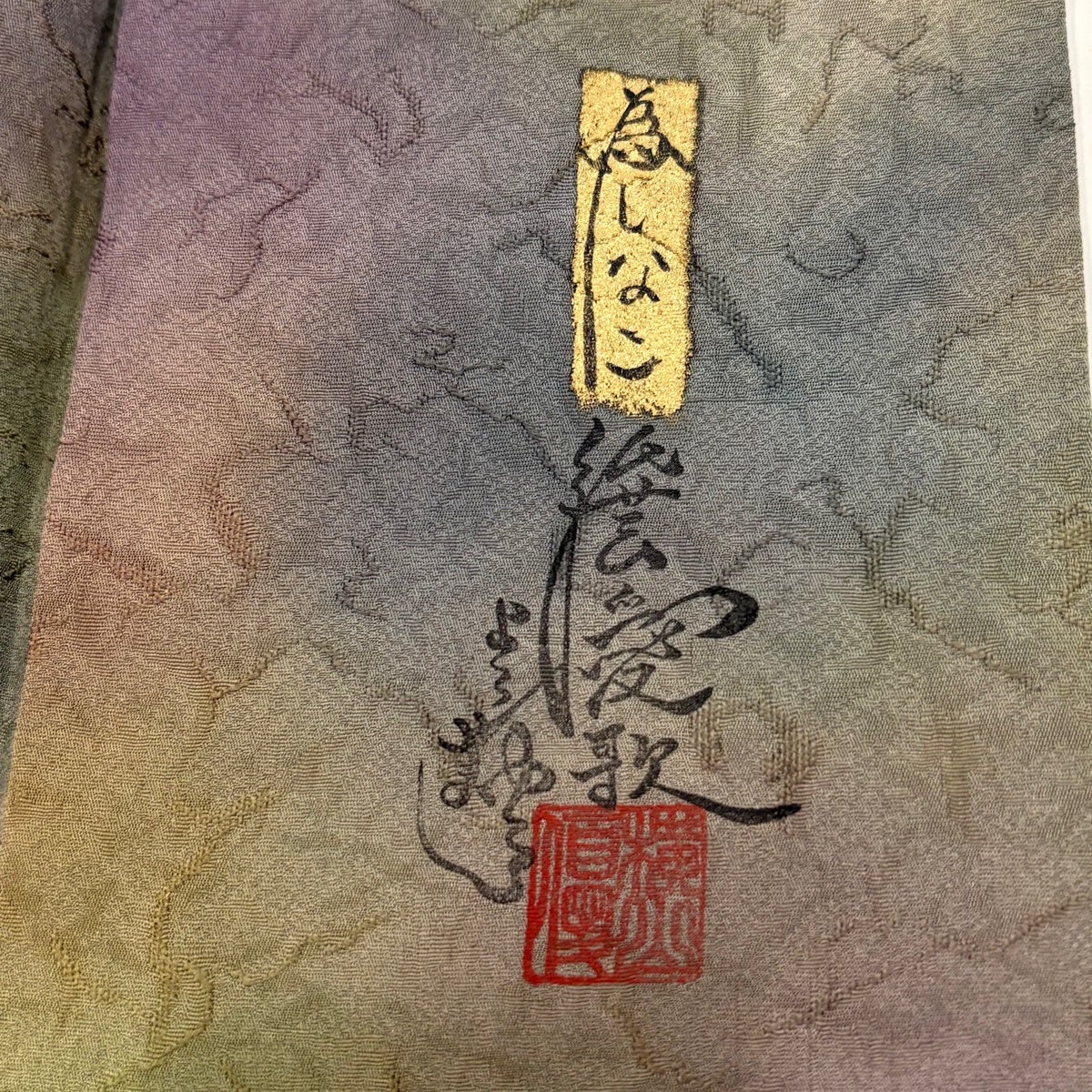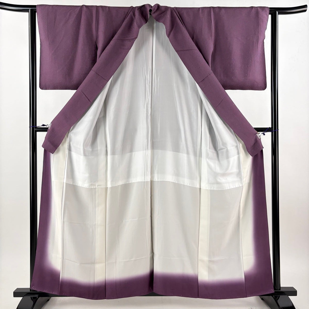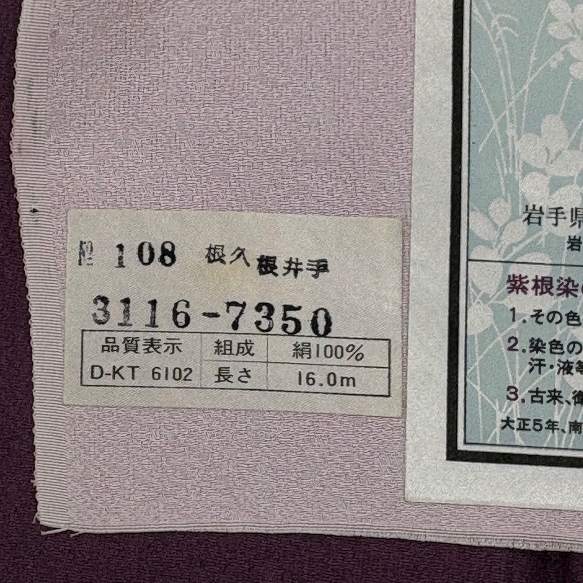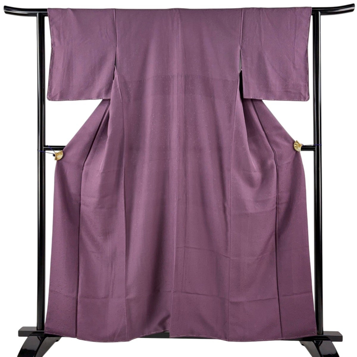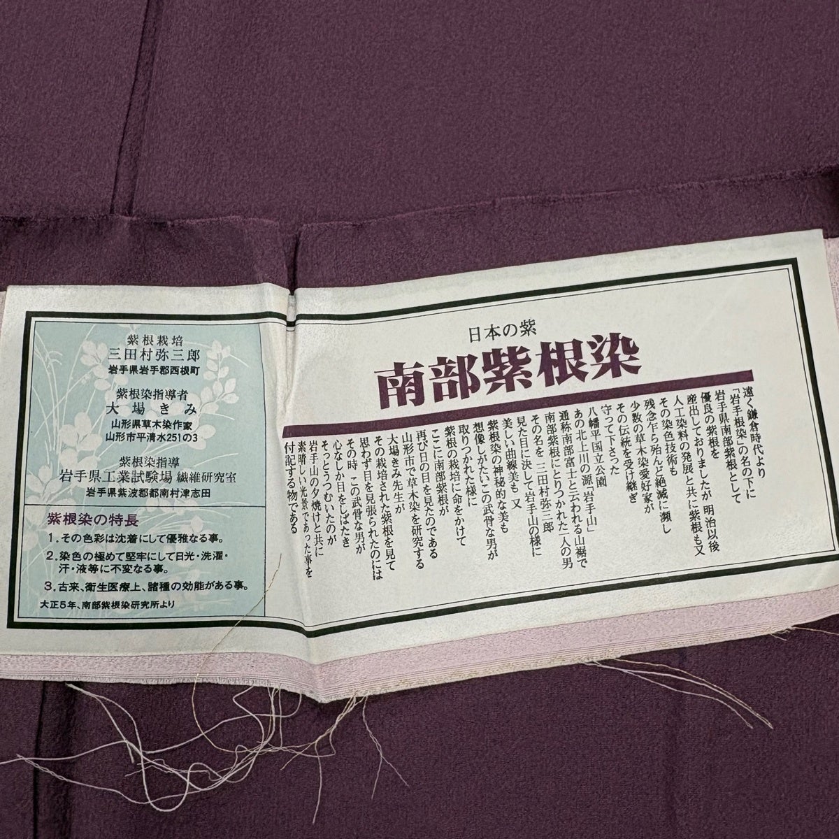【美品】 色無地 身丈159cm 裄丈63cm S 袷 証紙あり 地紋 南部紫根染 紫 正絹 秀品