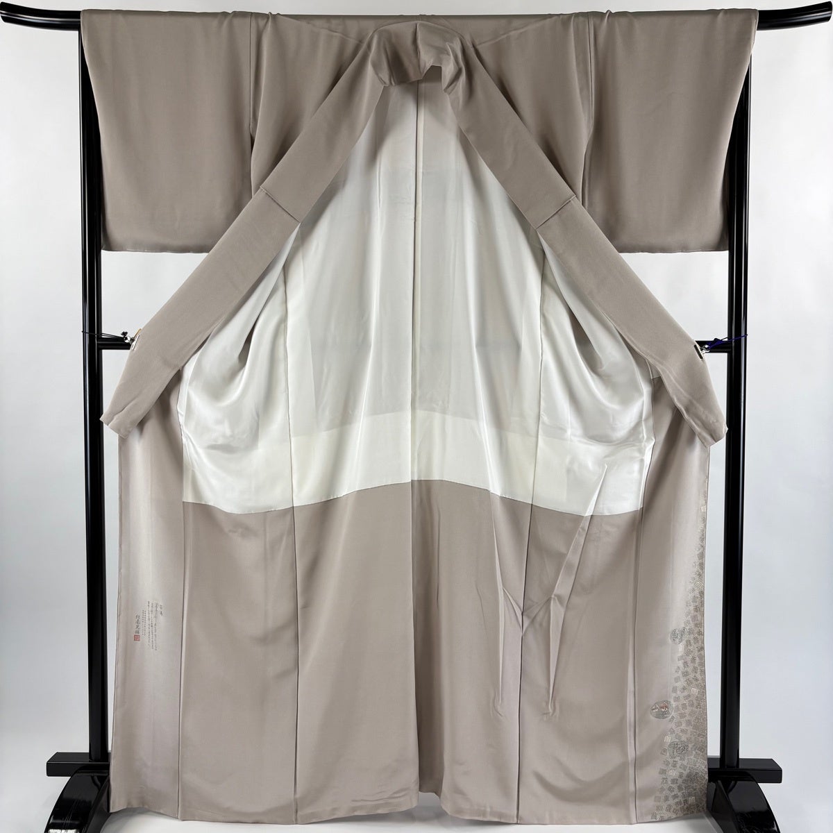 【美品】 色留袖 身丈158.5cm 裄丈64.5cm M 袷 落款あり 笹 ぼかし 灰色 正絹 名品 一つ紋