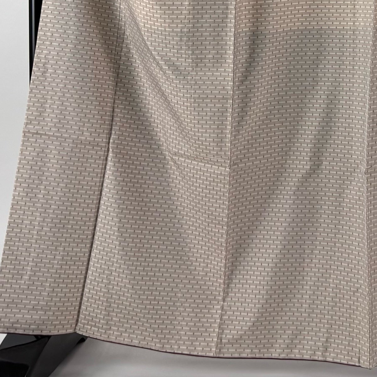 【美品】 紬 身丈161.5cm 裄丈66cm M 袷 名古屋帯セット 縞 幾何学模様 薄茶色 正絹 秀品