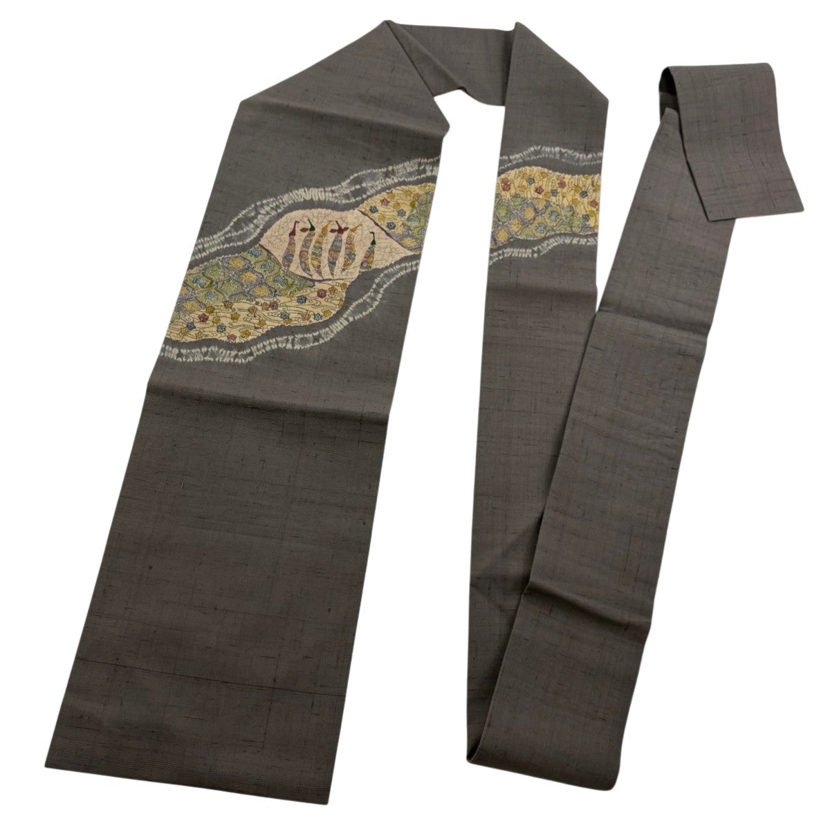 訪問着 身丈157.5cm 裄丈63cm S 袷 辻が花柄 染め分け ぼかし 灰色 正絹 名品
