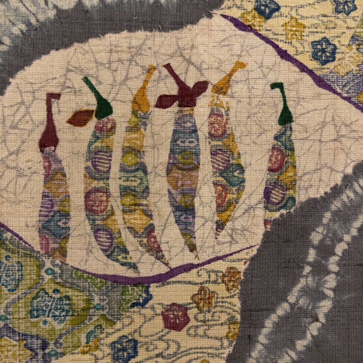 訪問着 身丈164cm 裄丈64cm M 袷 草花 七宝 金彩 絞り 灰紫 正絹 名品