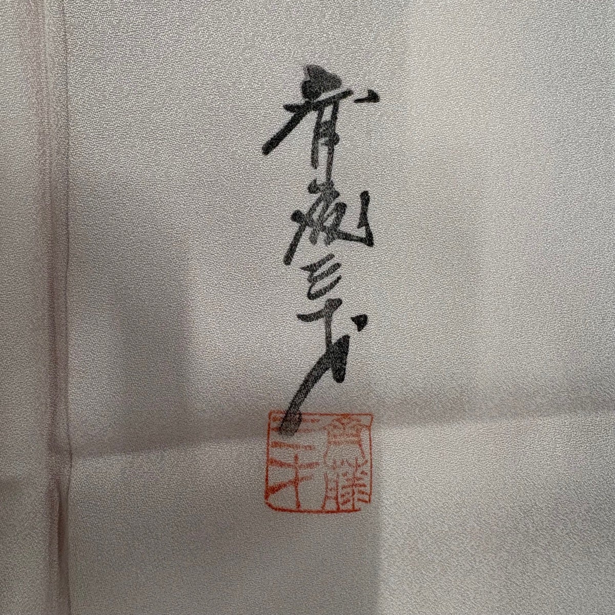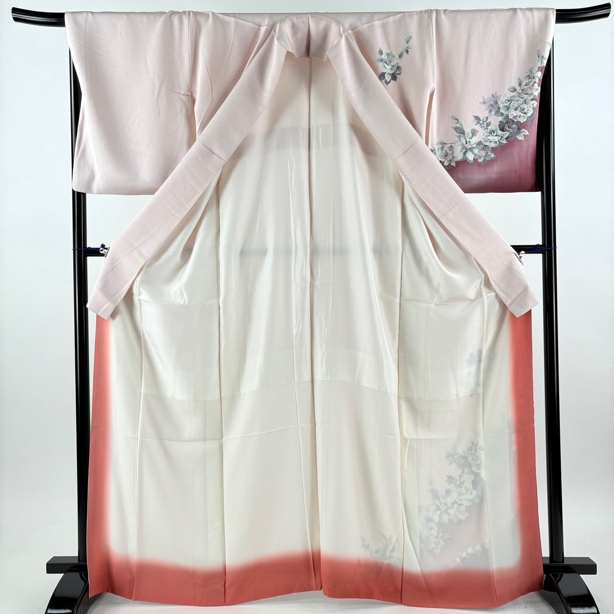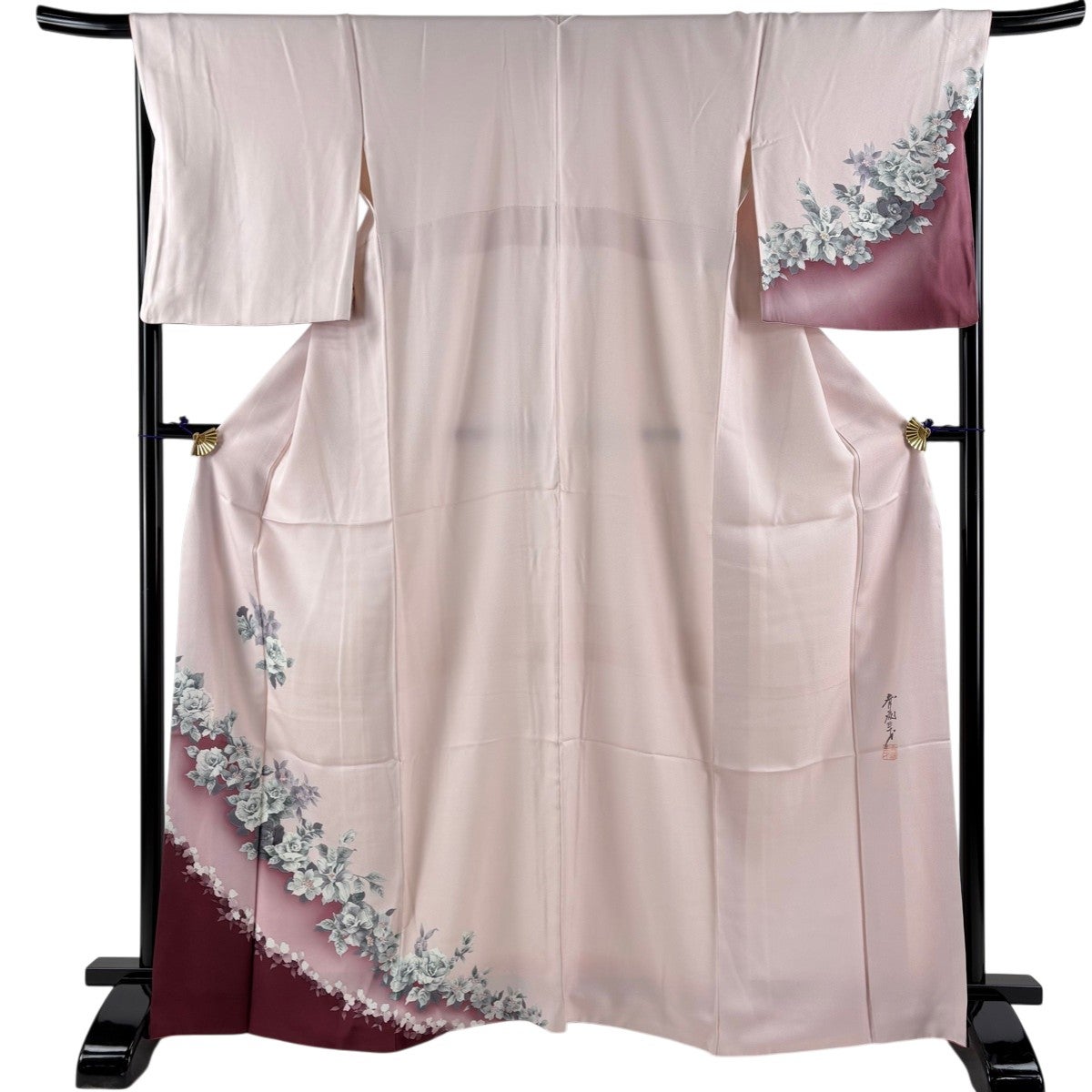 付下げ 身丈166cm 裄丈67.5cm L 袷 斉藤三才 落款あり 草花 ぼかし 薄ピンク 正絹 名品
