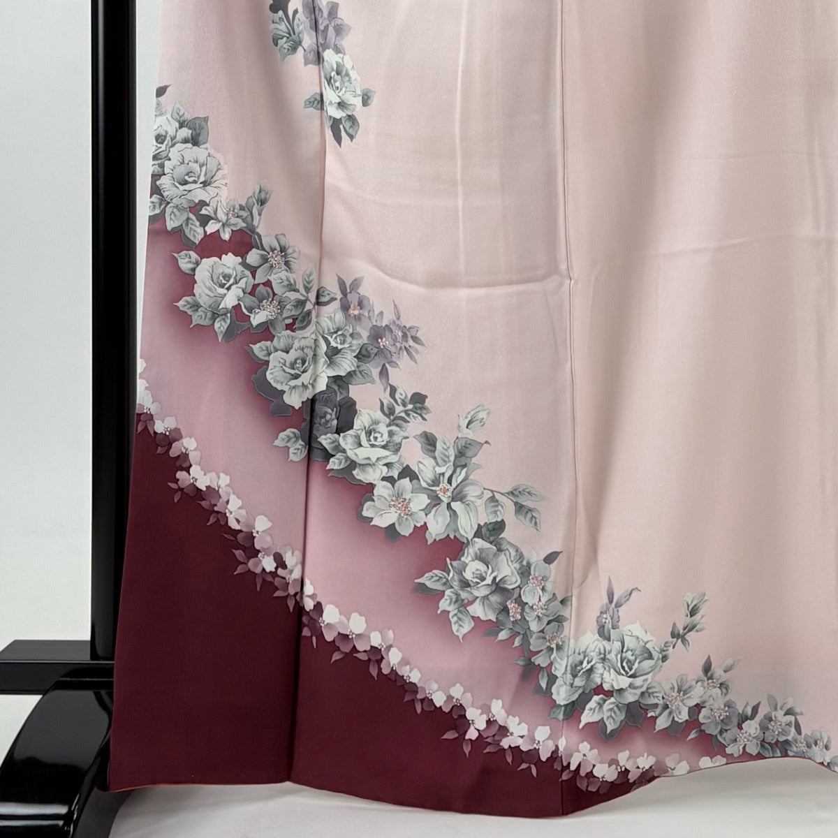 【美品】 振袖 身丈157cm 裄丈65cm M 袷 草花 花びら 銀通し 金彩 ピンク 正絹 名品