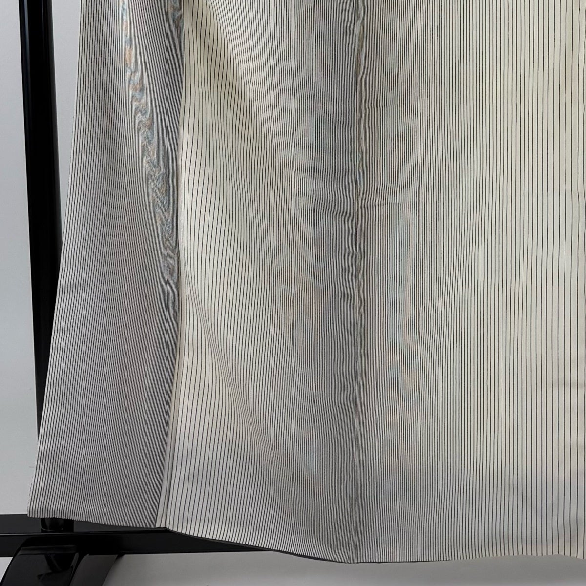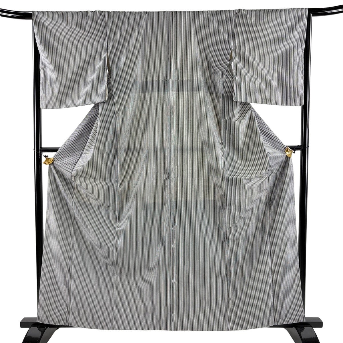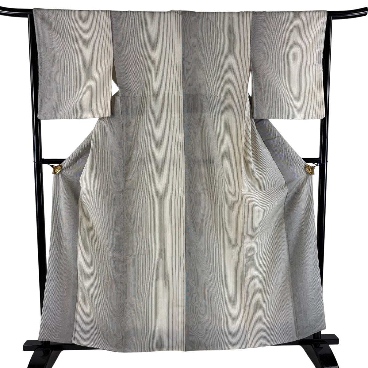 お召 身丈159cm 裄丈65cm M 袷 縦縞 灰白 正絹 名品