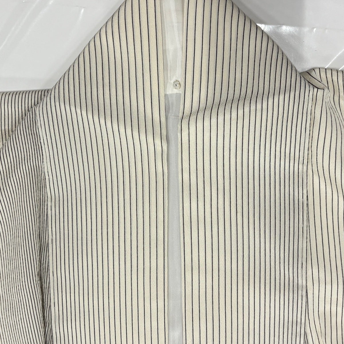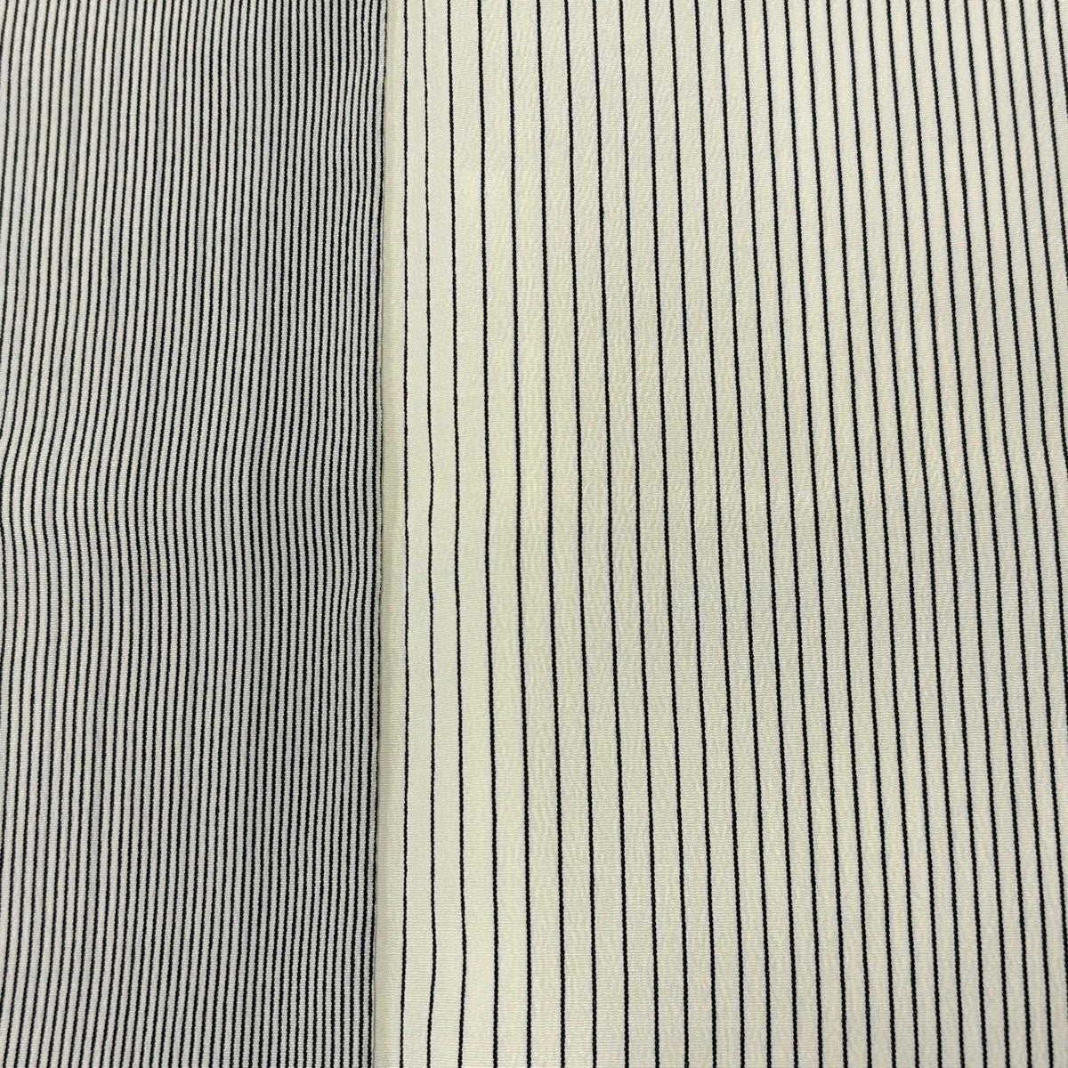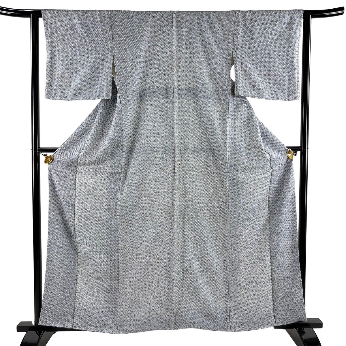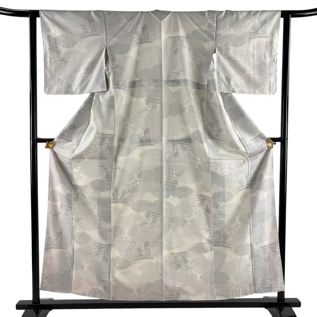 お召 身丈159cm 裄丈65cm M 袷 縦縞 灰白 正絹 名品
