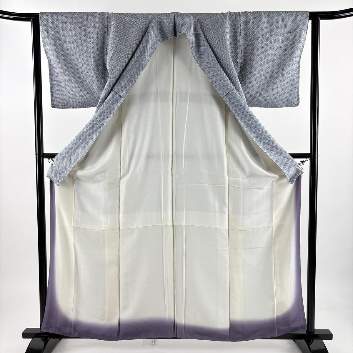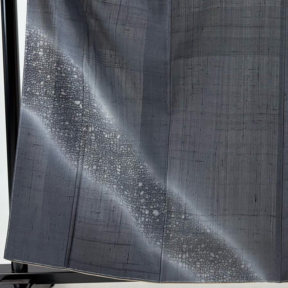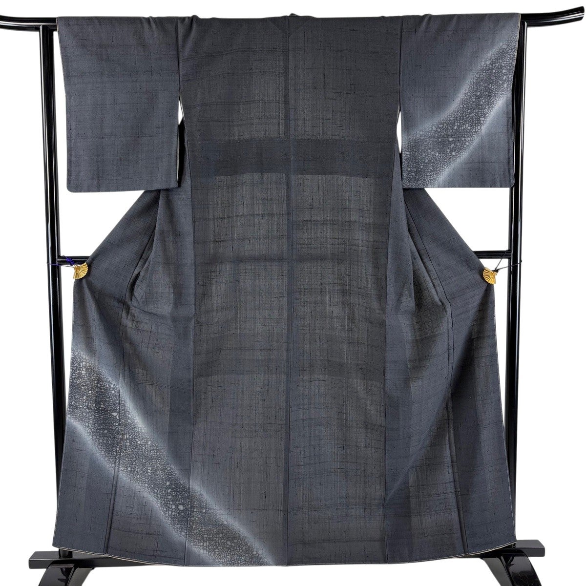 付下げ 身丈158cm 裄丈63.5cm S 袷 紬地 幾何学 ぼかし 黒灰 正絹 名品