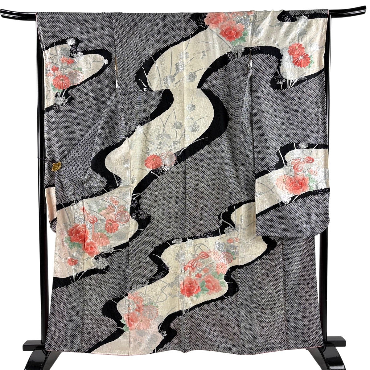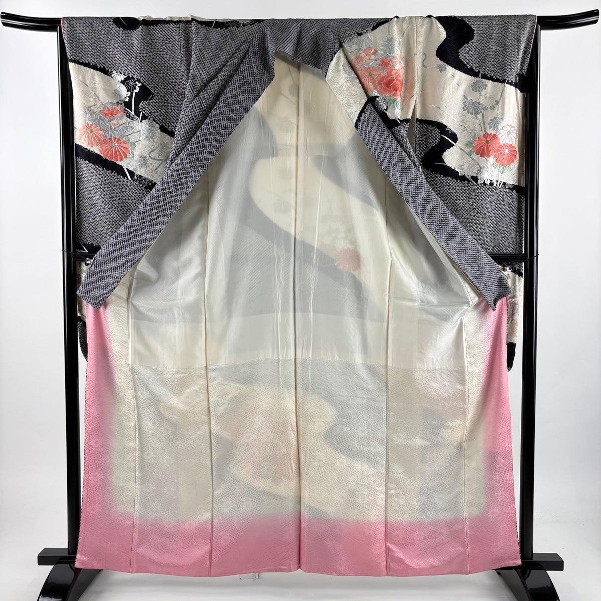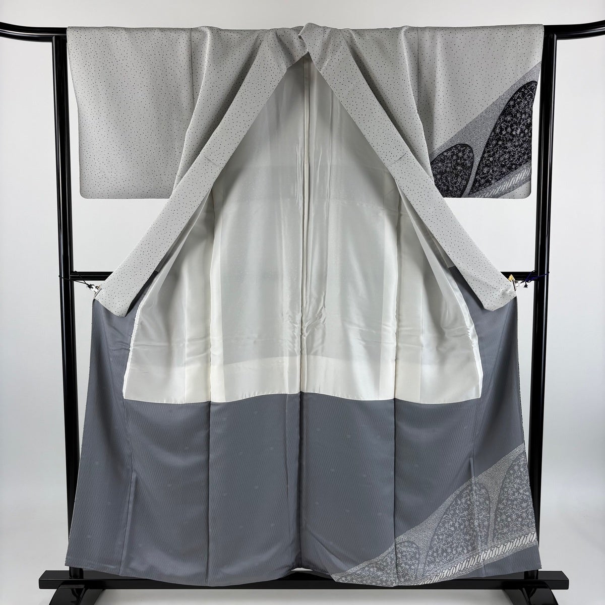 付下げ 身丈158cm 裄丈63.5cm S 袷 紬地 幾何学 ぼかし 黒灰 正絹 名品