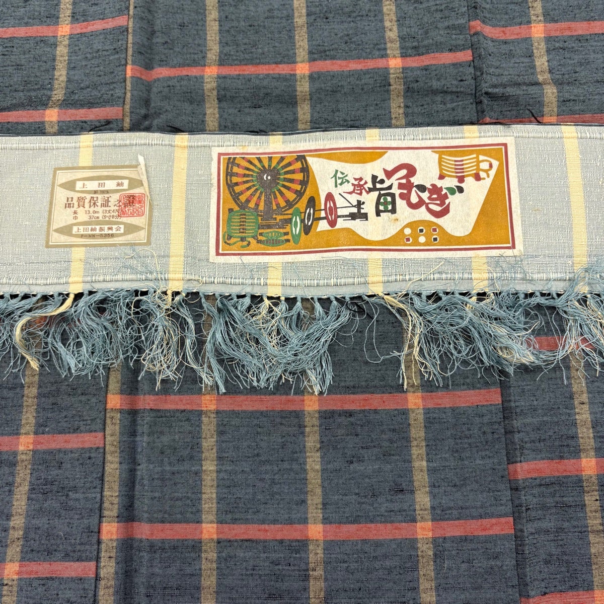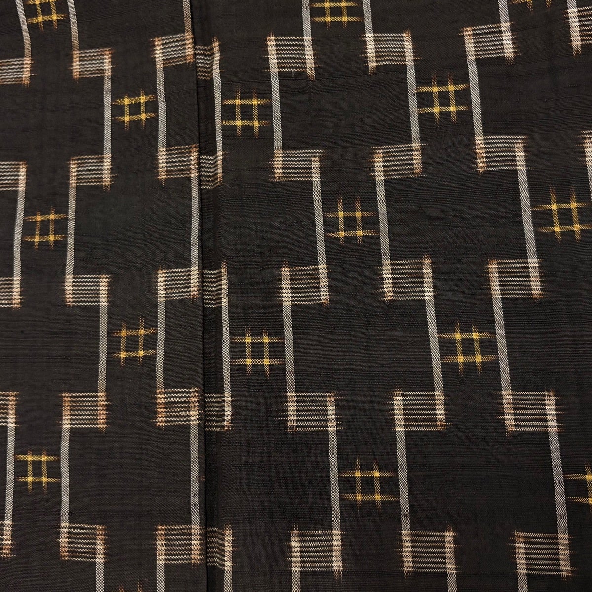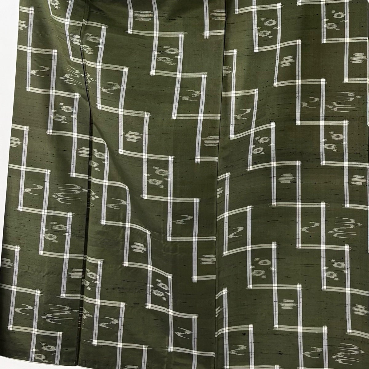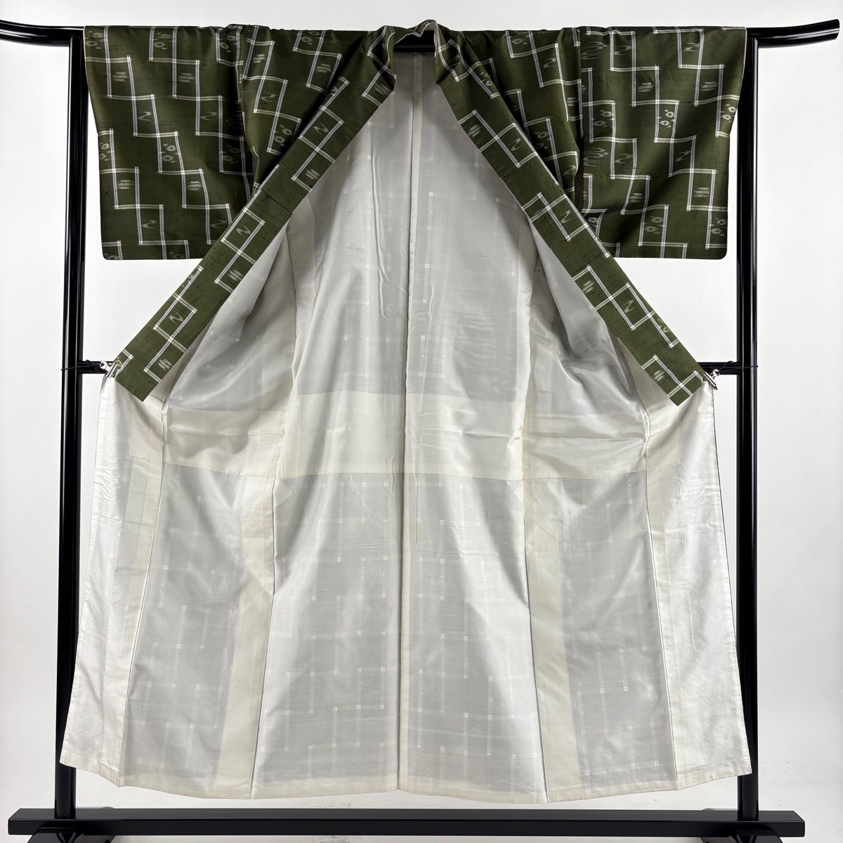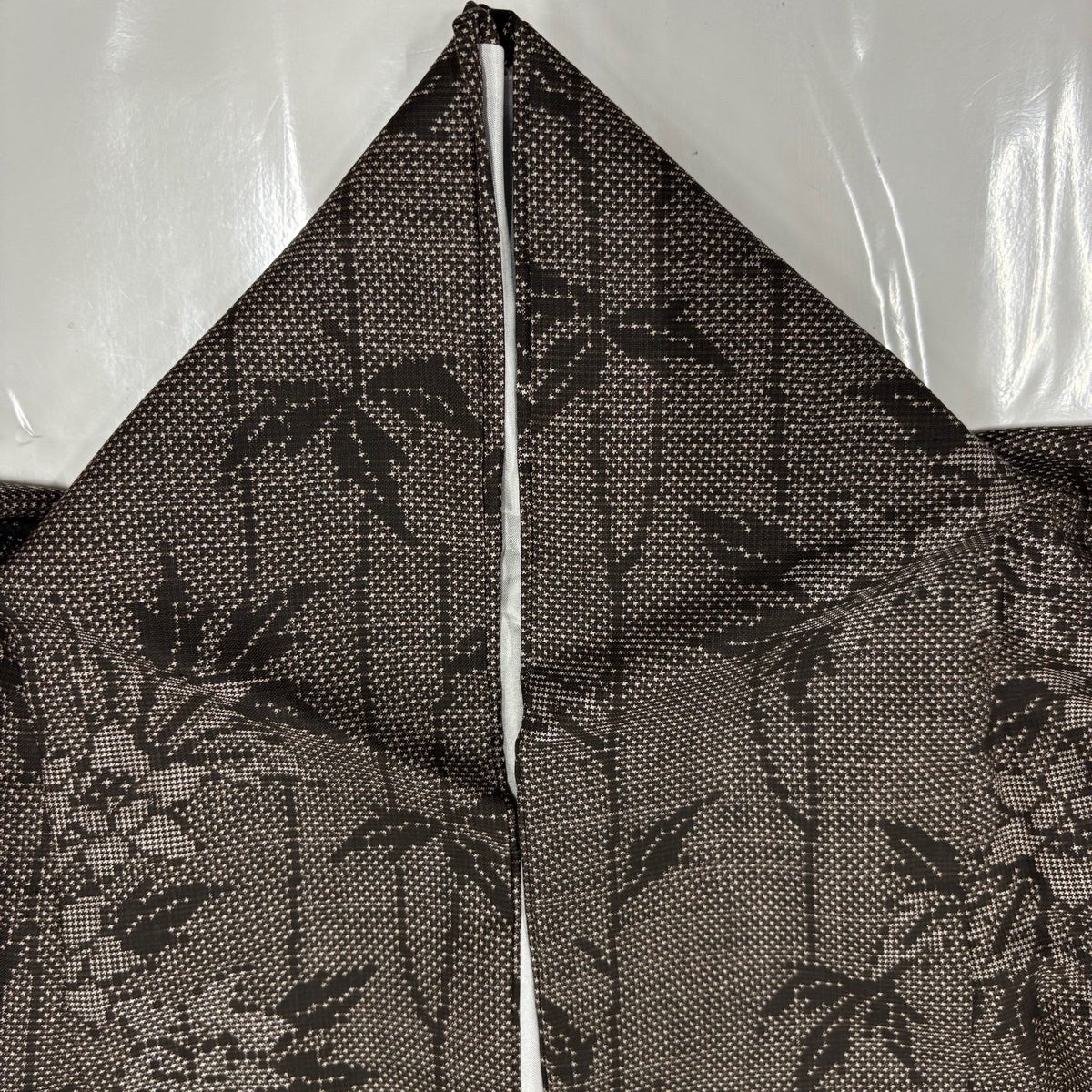 【美品】 紬 身丈154cm 裄丈63cm S 袷 井桁絣 幾何学 焦茶色 正絹 名品