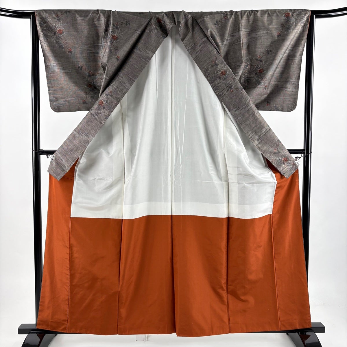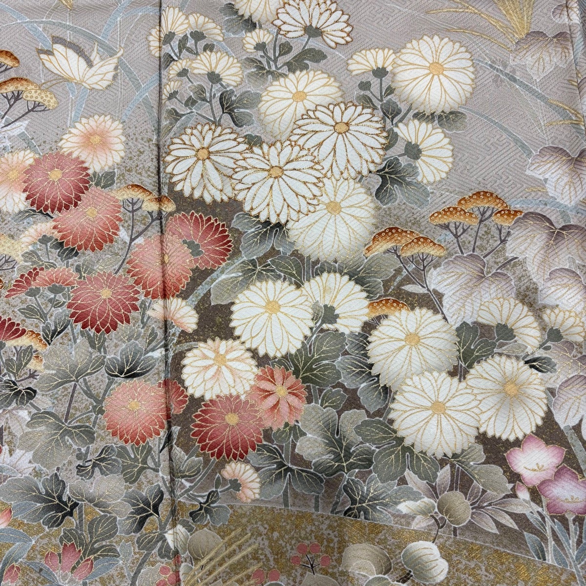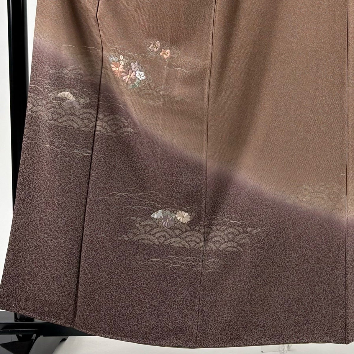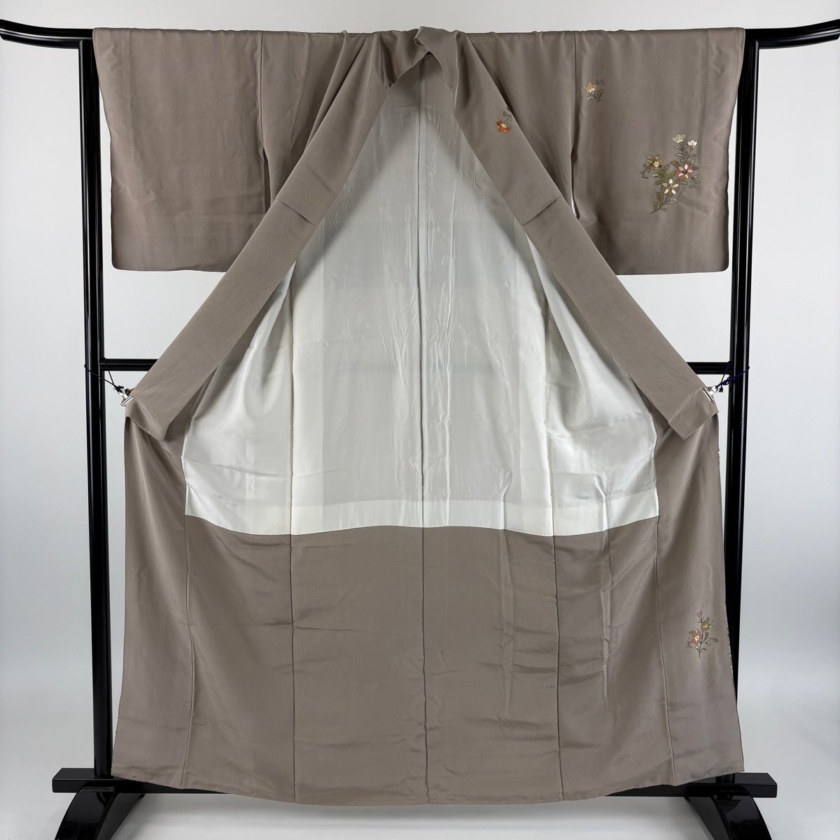 訪問着 身丈156cm 裄丈62.5cm S 袷 草花 蝶 金彩 ぼかし 灰茶 正絹 秀品