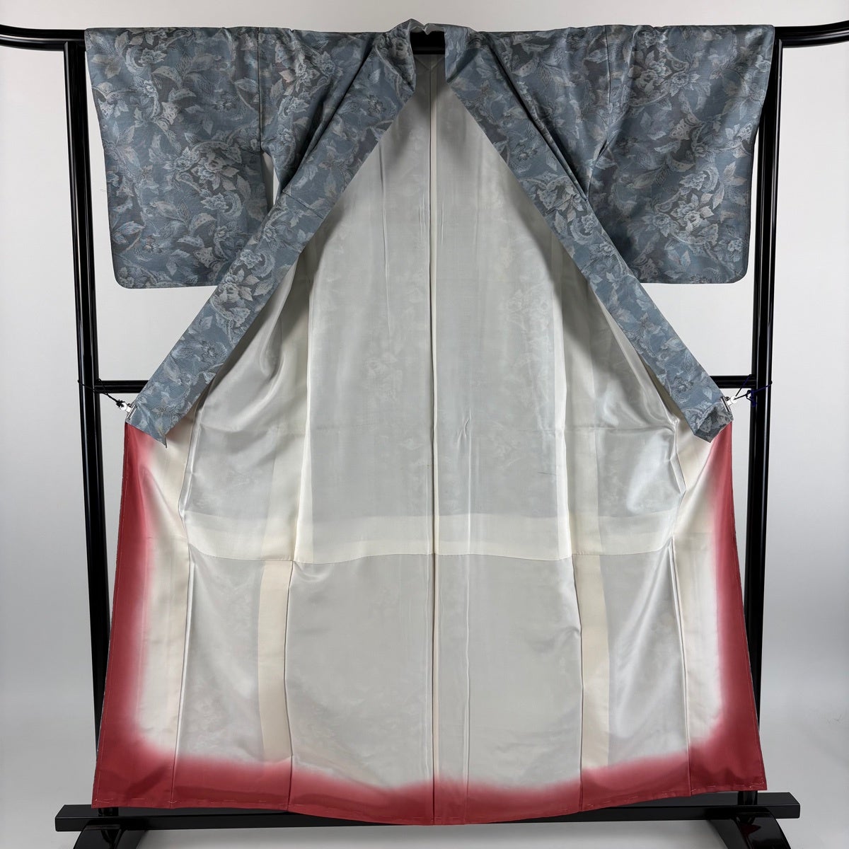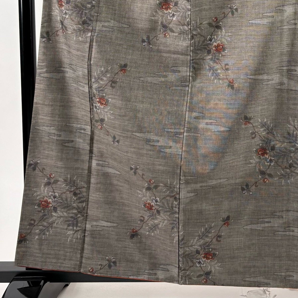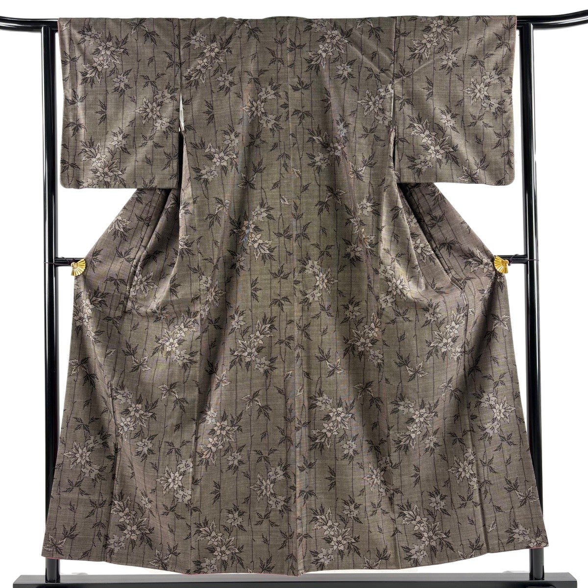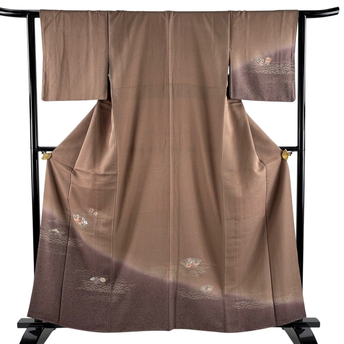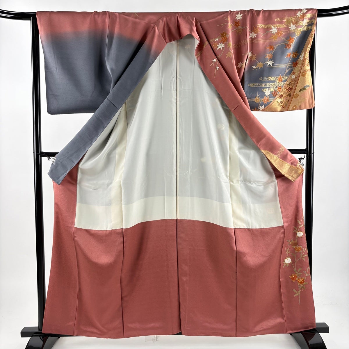 訪問着 身丈156cm 裄丈62.5cm S 袷 草花 蝶 金彩 ぼかし 灰茶 正絹 秀品