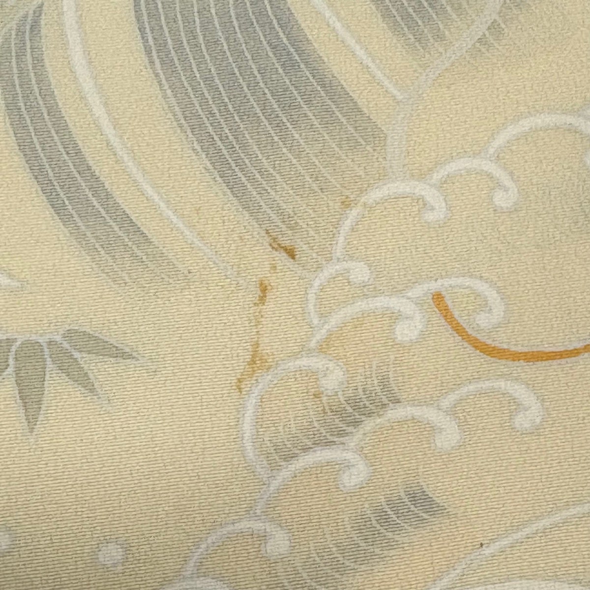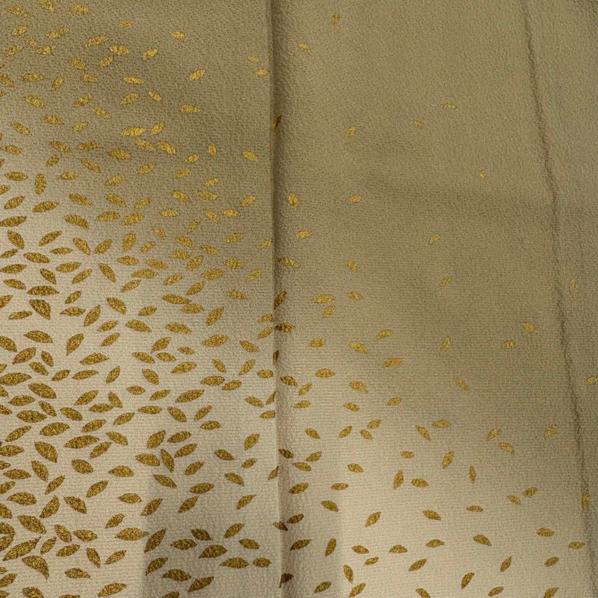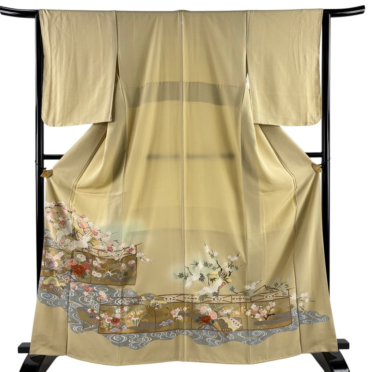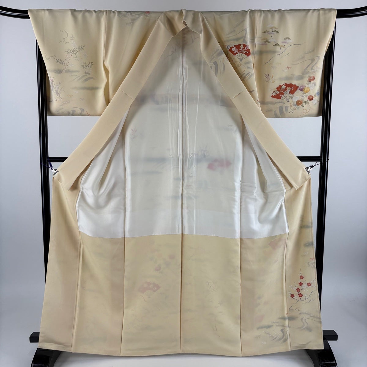訪問着 身丈165cm 裄丈70cm L 袷 扇 草花 金彩 薄黄 正絹 名品