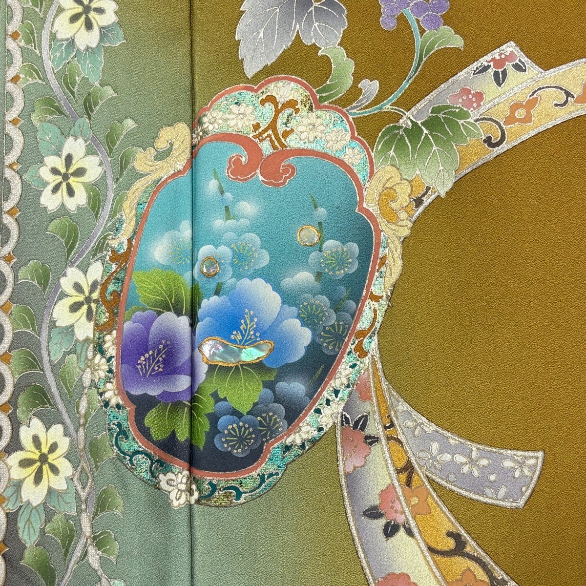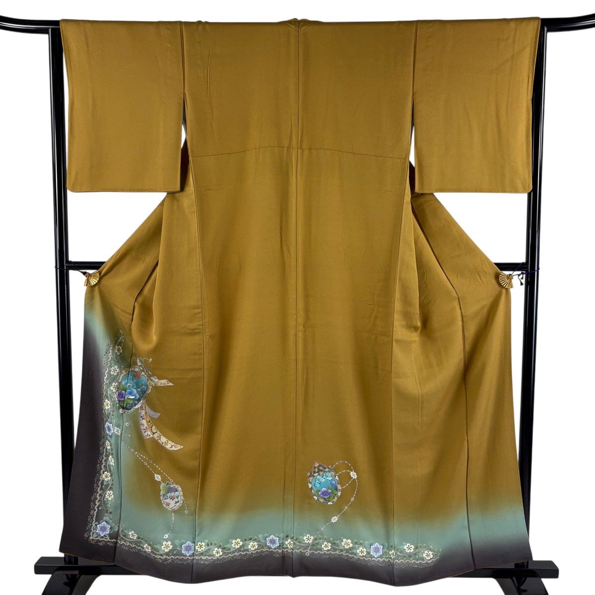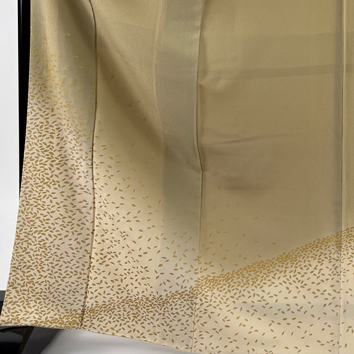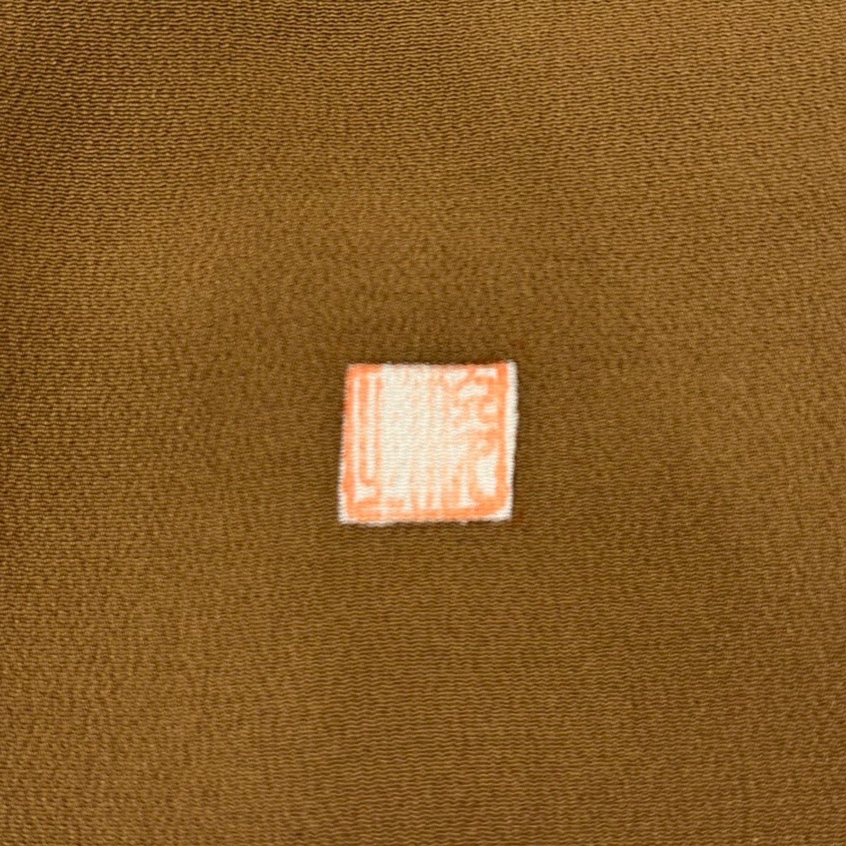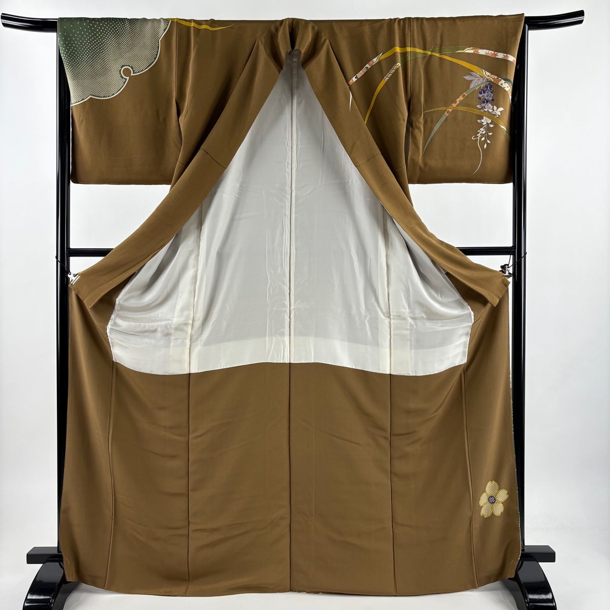 付下げ 身丈158cm 裄丈64.5cm M 袷 草花 熨斗 金銀彩 螺鈿 山吹茶色 正絹 名品