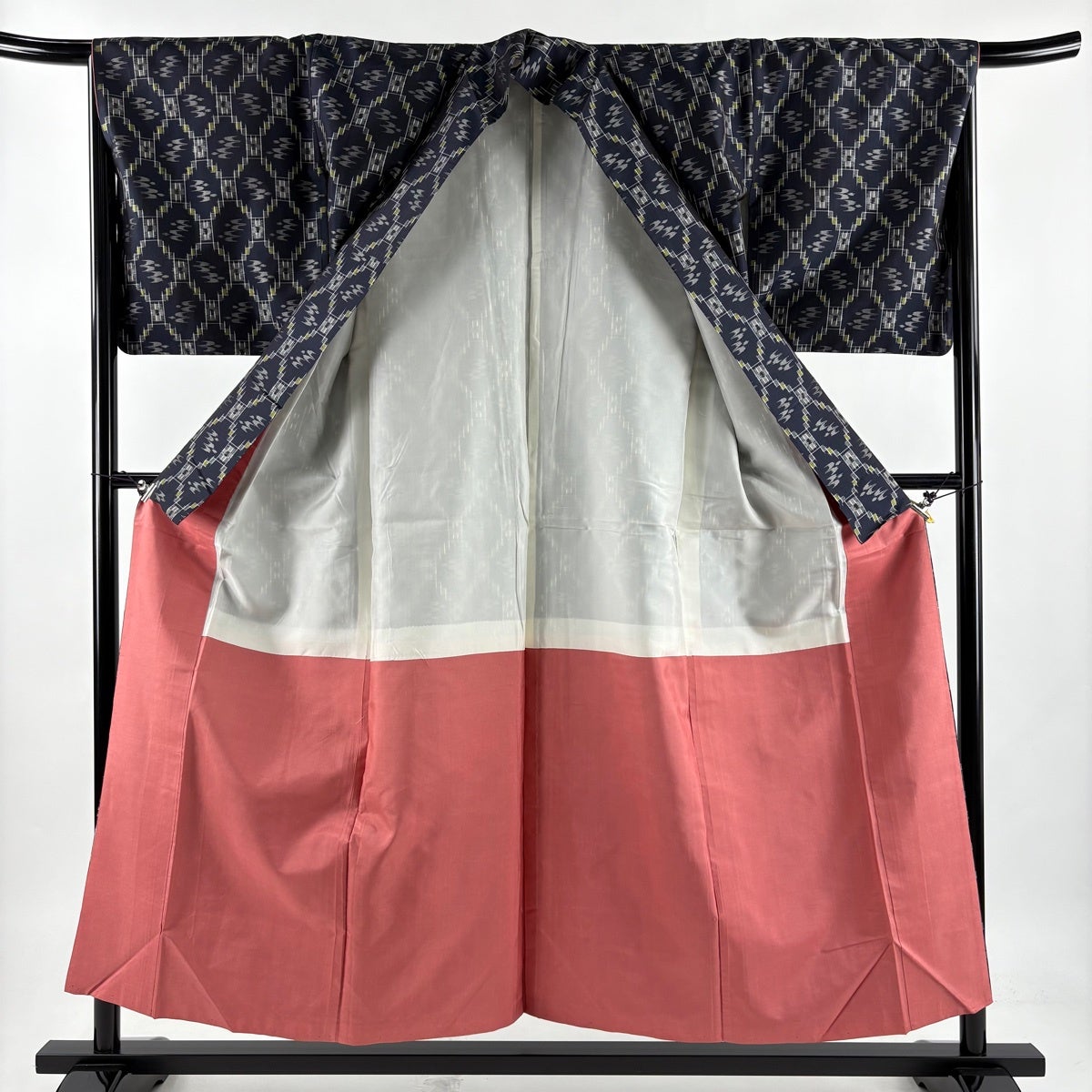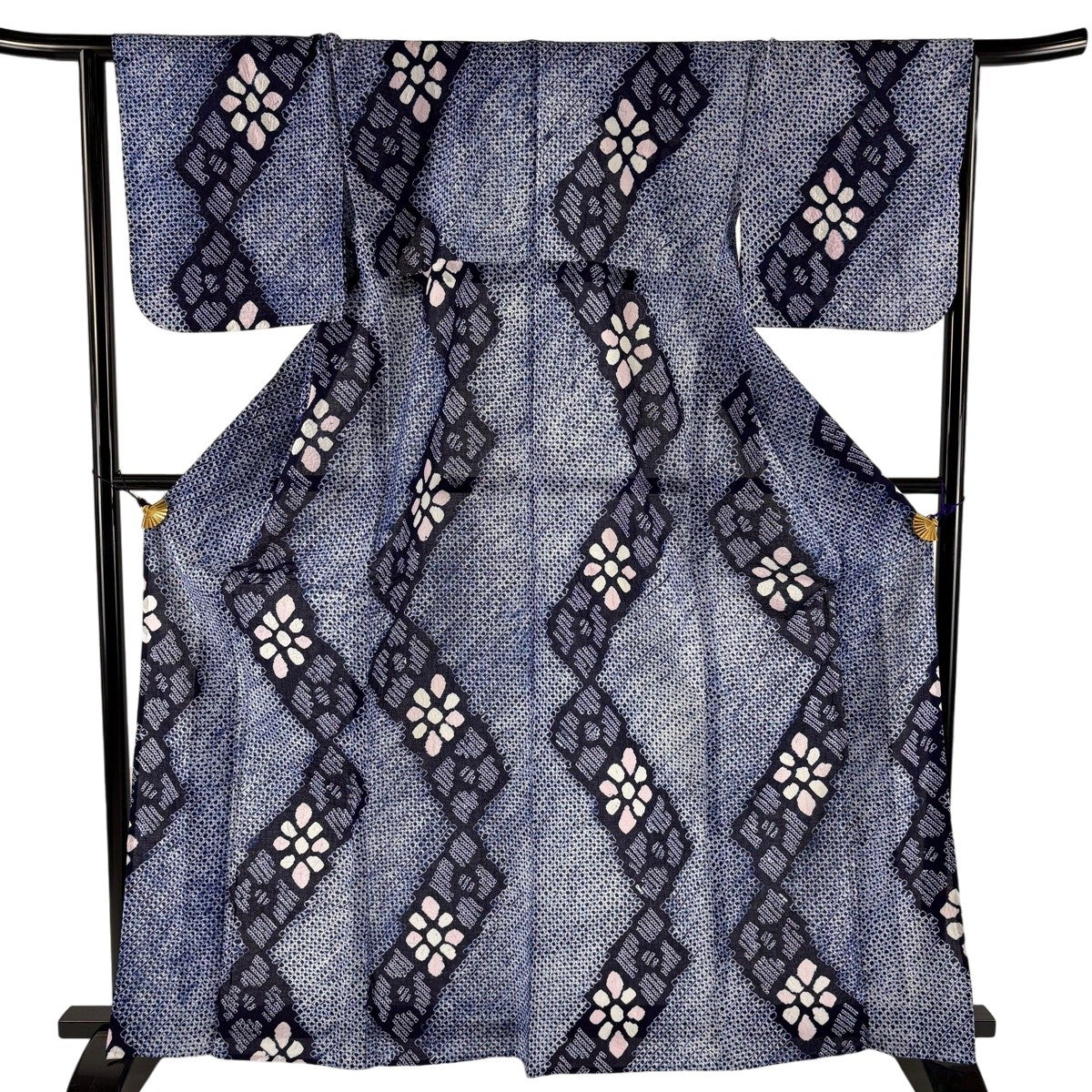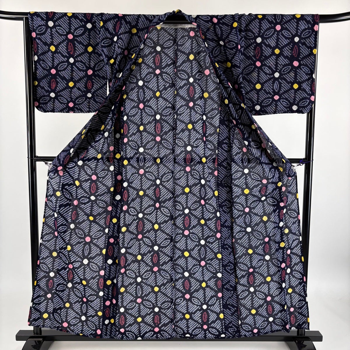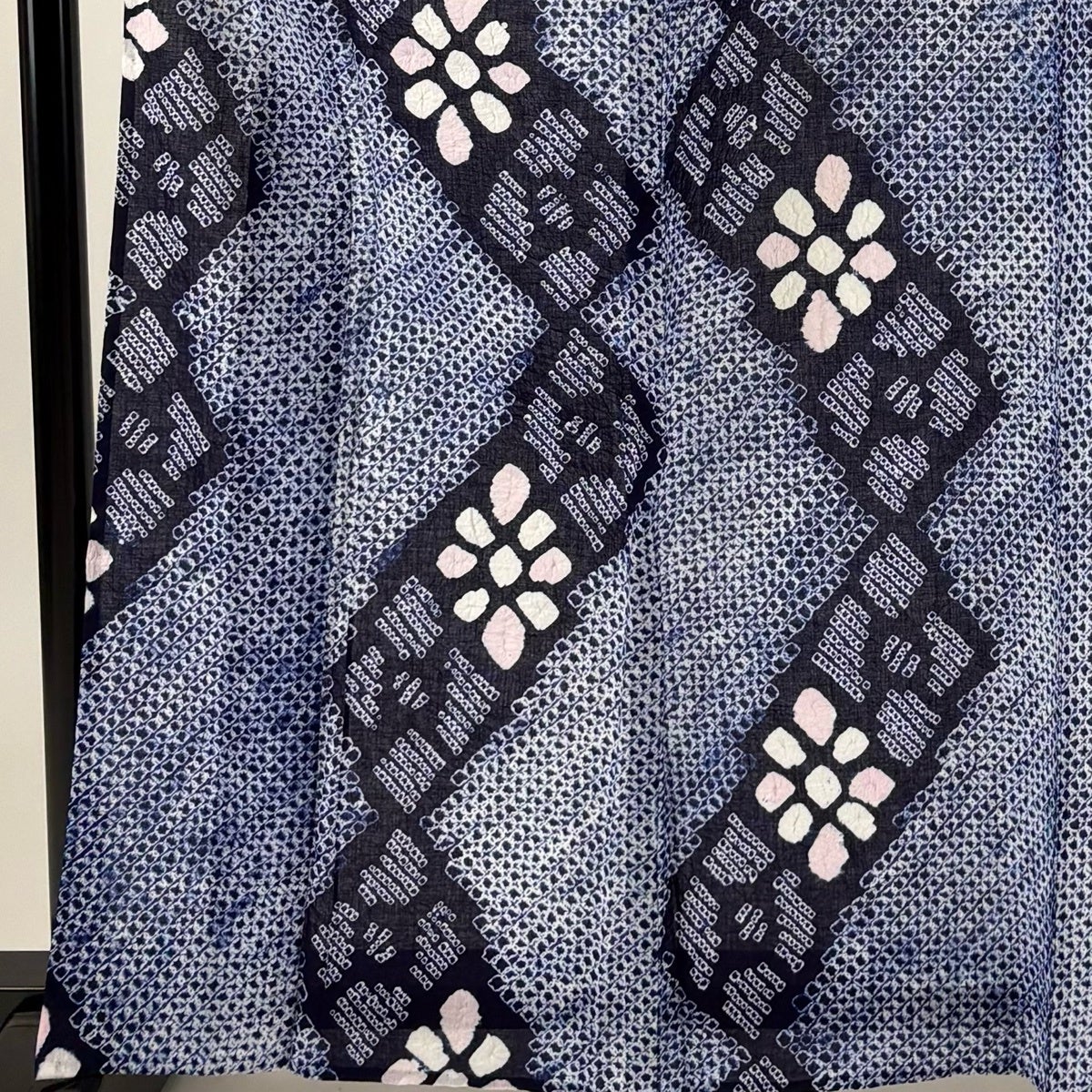【美品】 浴衣 身丈142.5cm 裄丈62cm S 絞り浴衣 幾何学模様 紺色 綿 名品