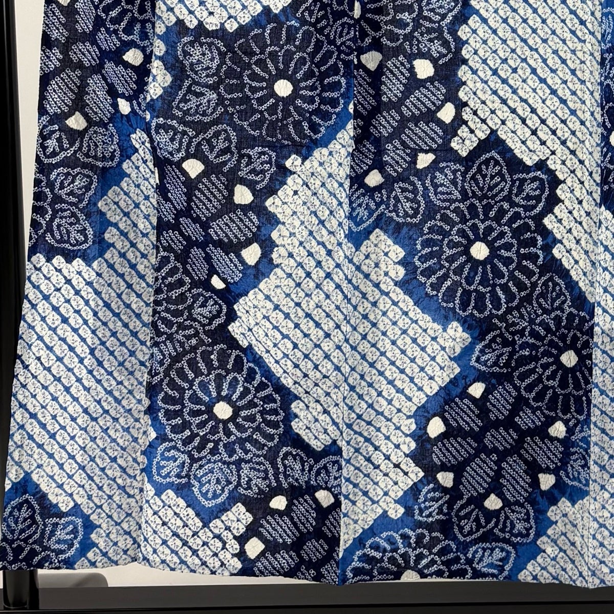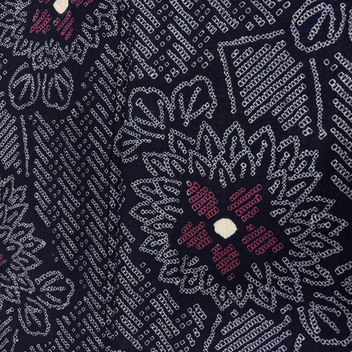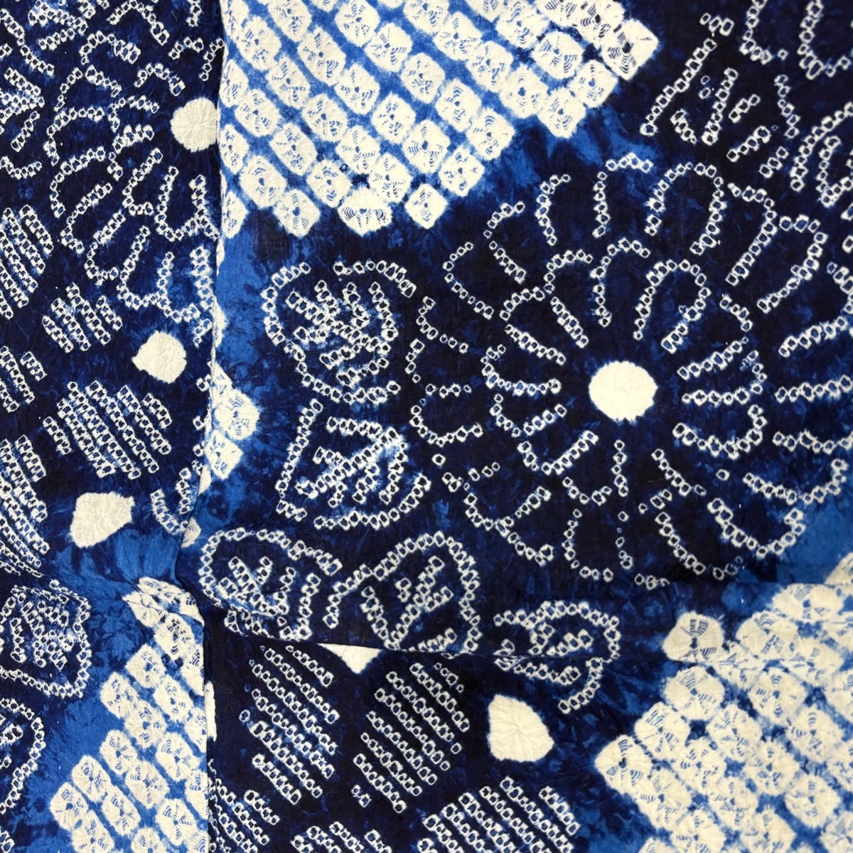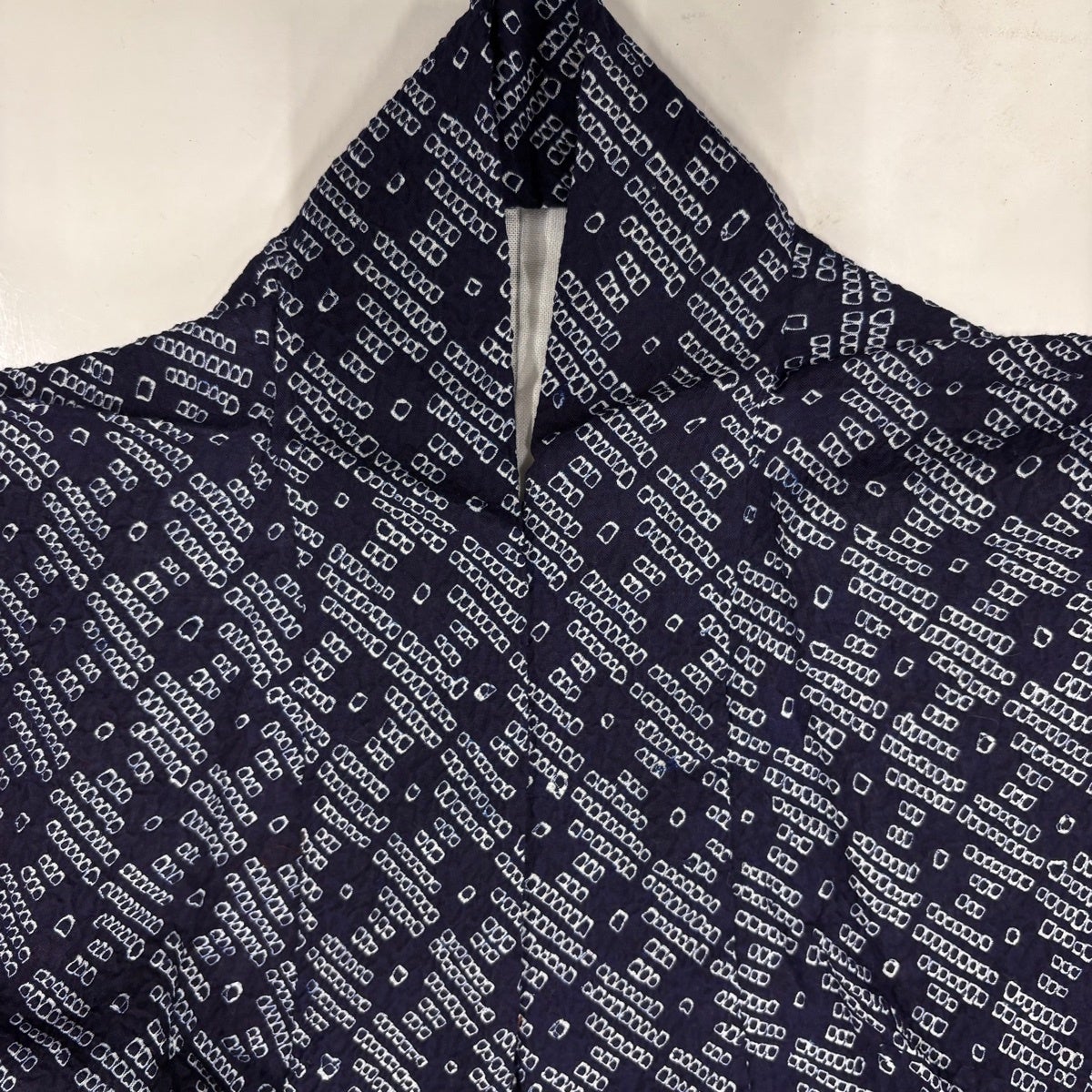 【美品】 浴衣 身丈145.5cm 裄丈61cm S 絞り浴衣 幾何学模様 濃紺 綿 名品