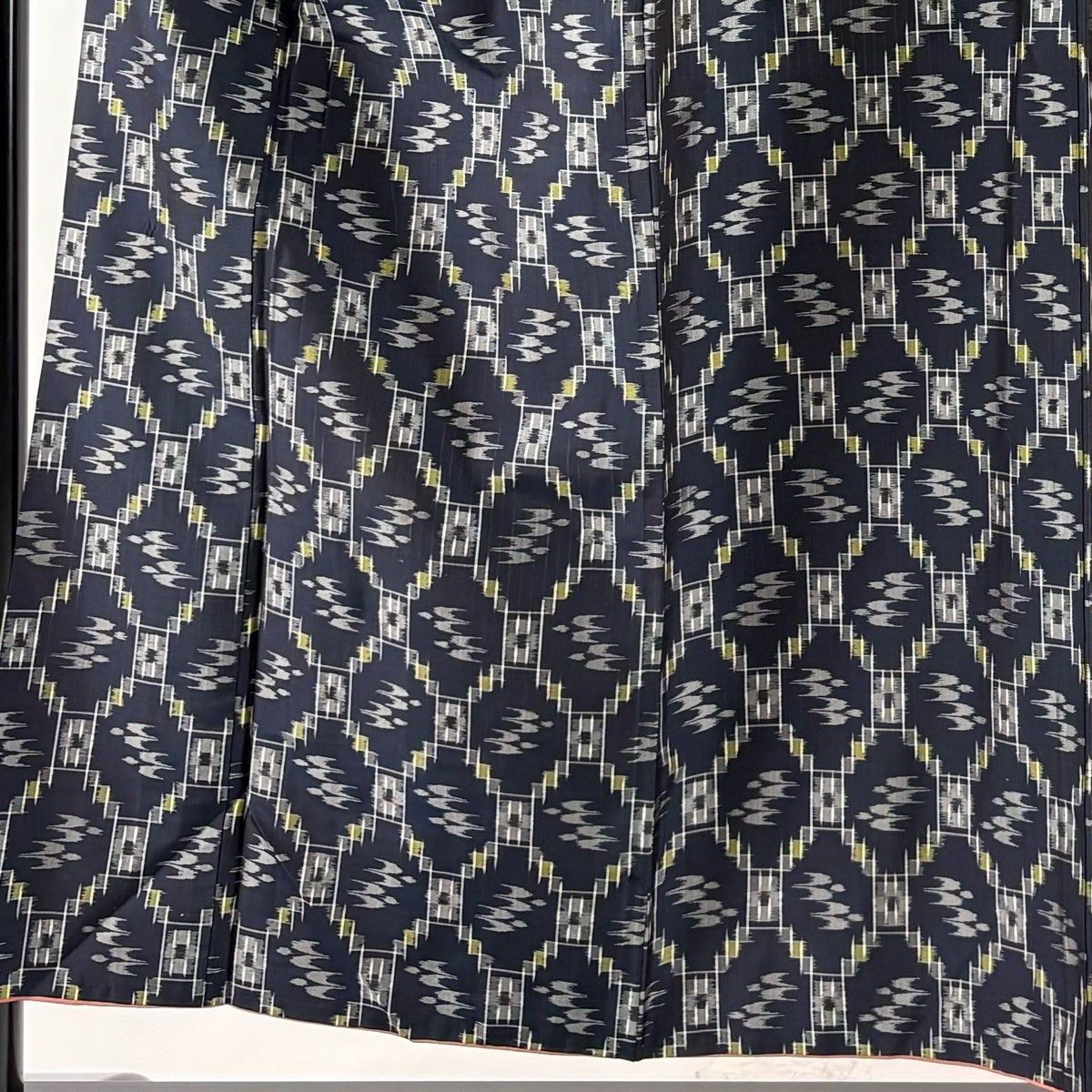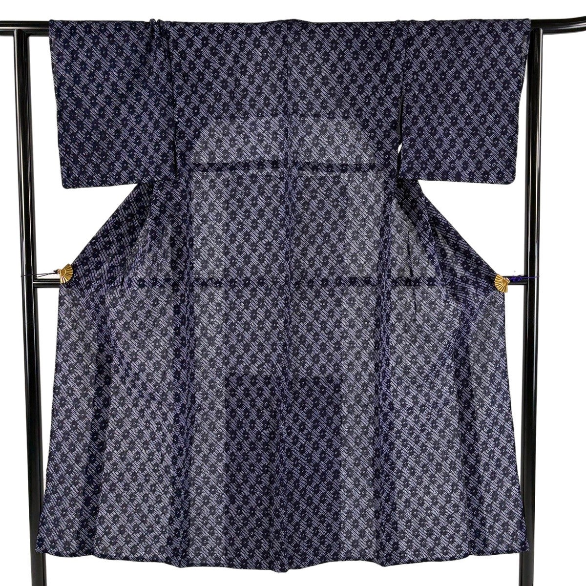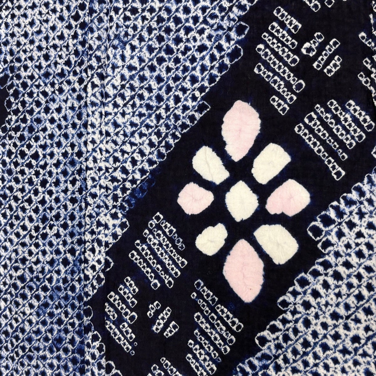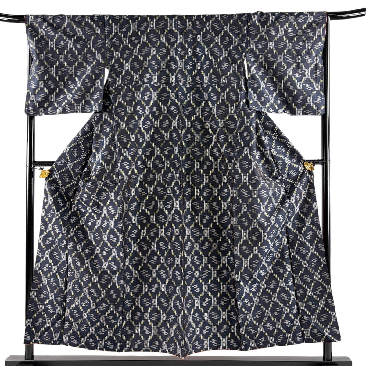 【美品】 浴衣 身丈145.5cm 裄丈61cm S 絞り浴衣 幾何学模様 濃紺 綿 名品