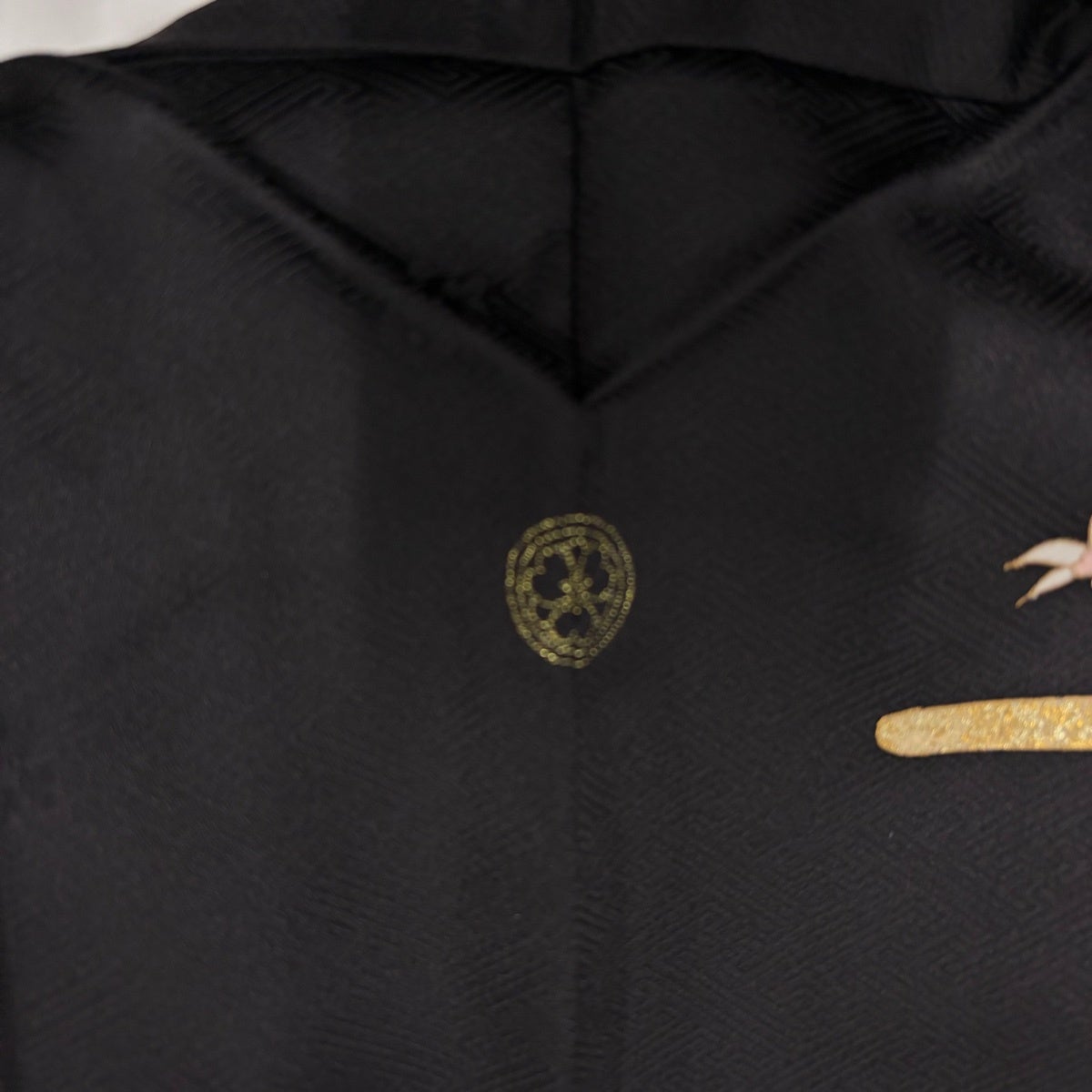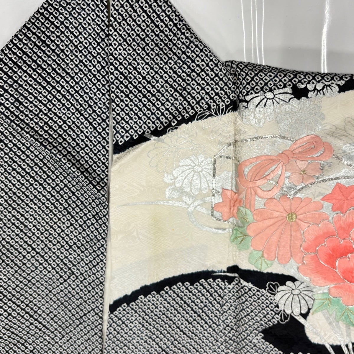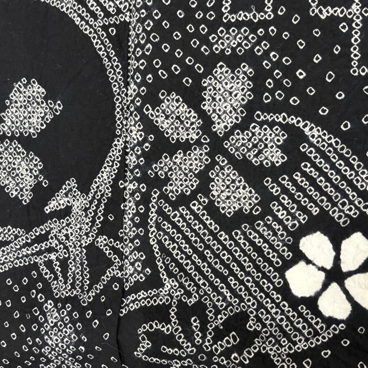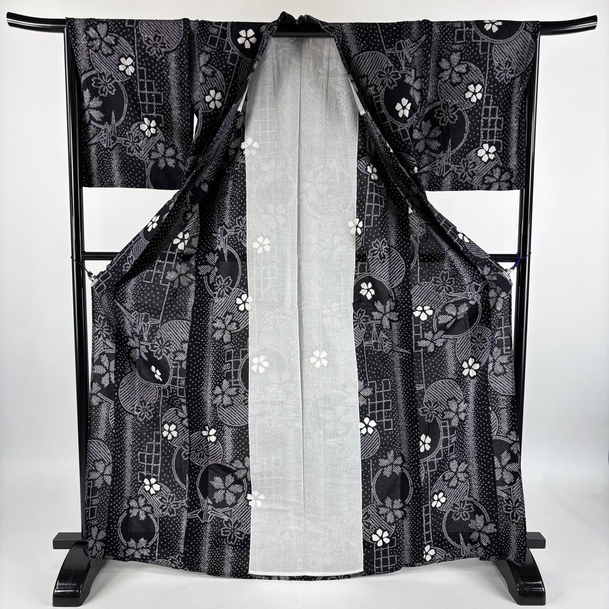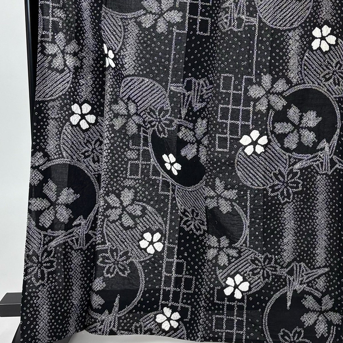 【美品】 浴衣 身丈169cm 裄丈68.5cm L 絞り浴衣 桜 折鶴 黒 綿 名品