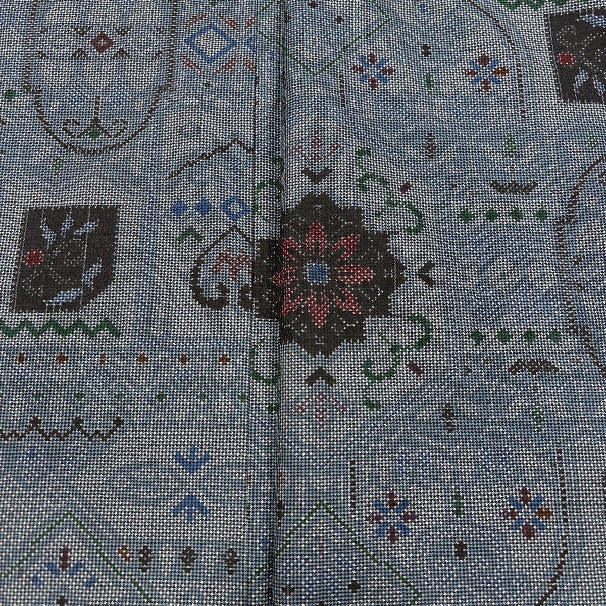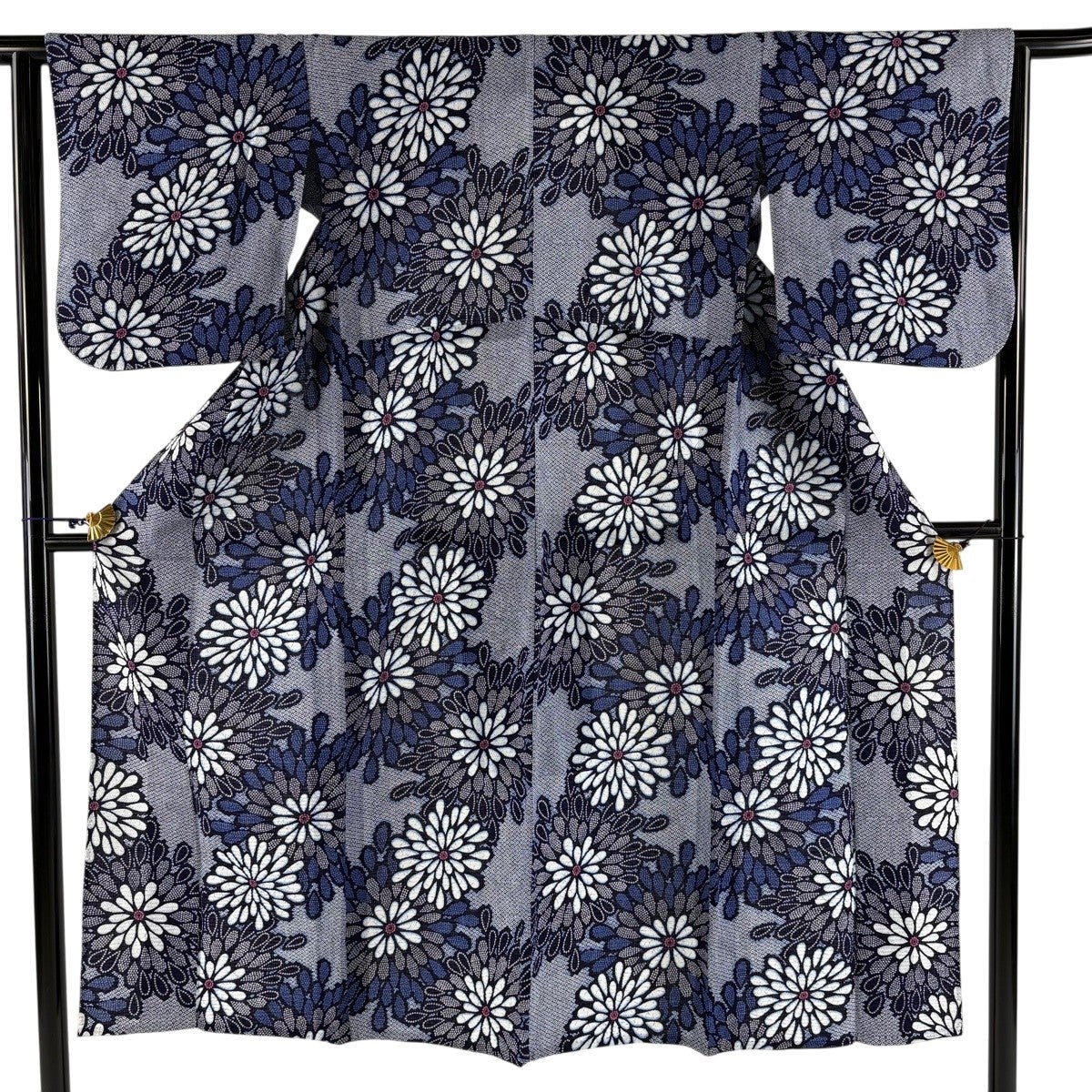 【美品】 浴衣 身丈141cm 裄丈63cm S 菊 青灰色 綿 名品