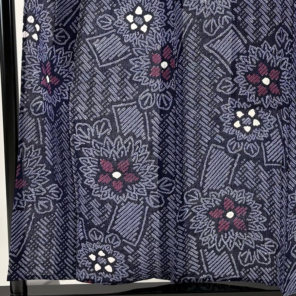 【美品】 浴衣 身丈165cm 裄丈65.5cm M 絞り浴衣 花 紺色 綿 名品