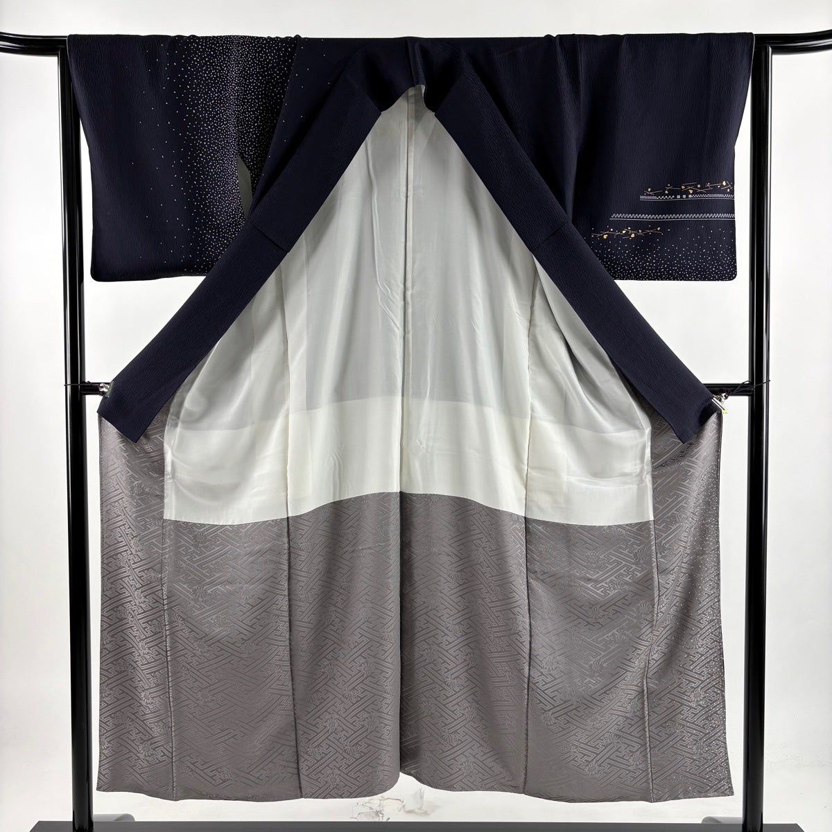 付下げ 身丈150cm 裄丈63.5cm S 袷 箔散らし 幾何学 金彩 濃紺 正絹 秀品