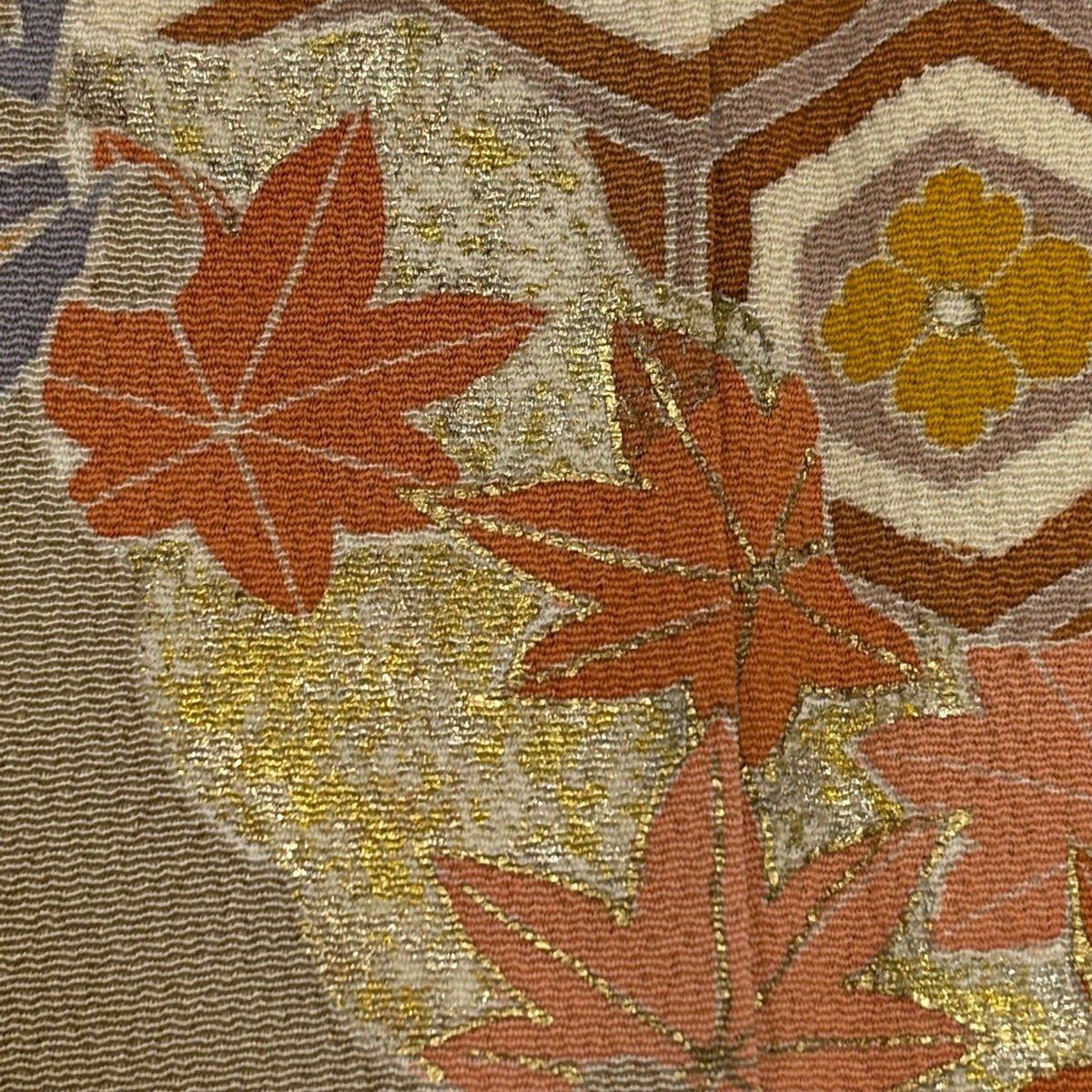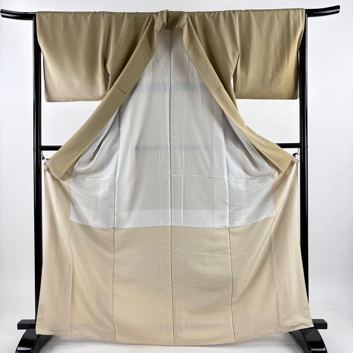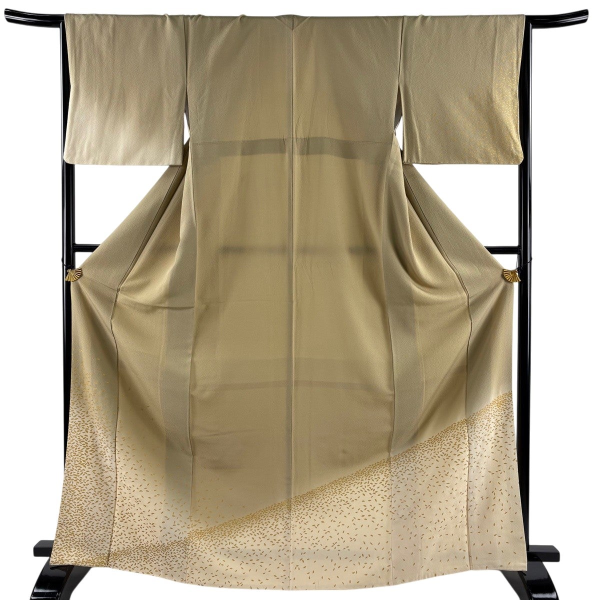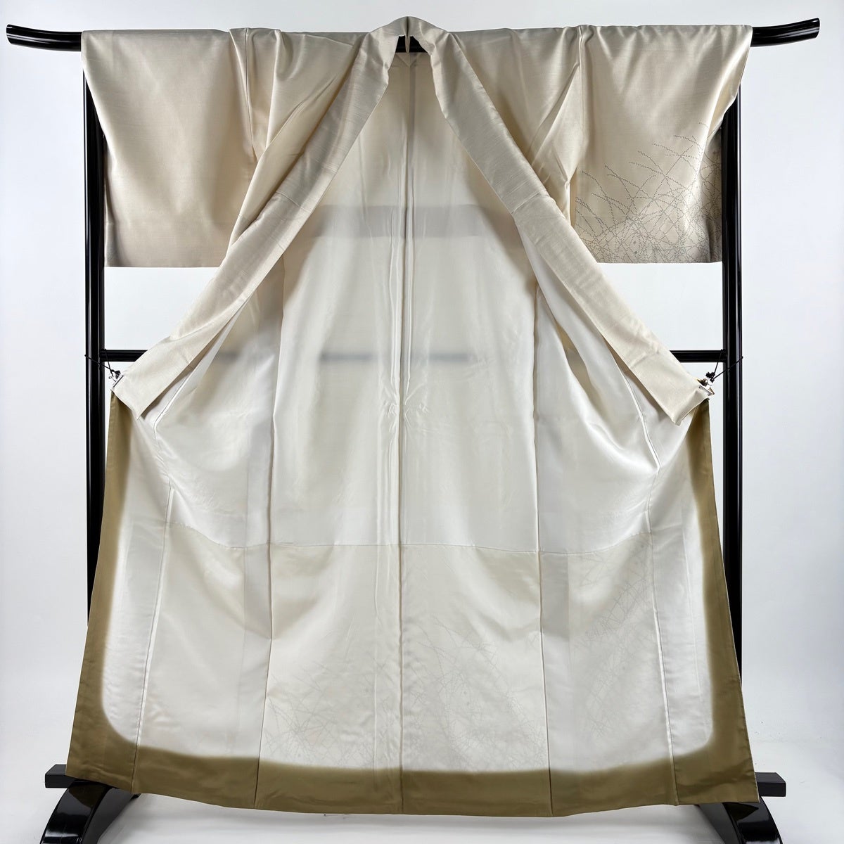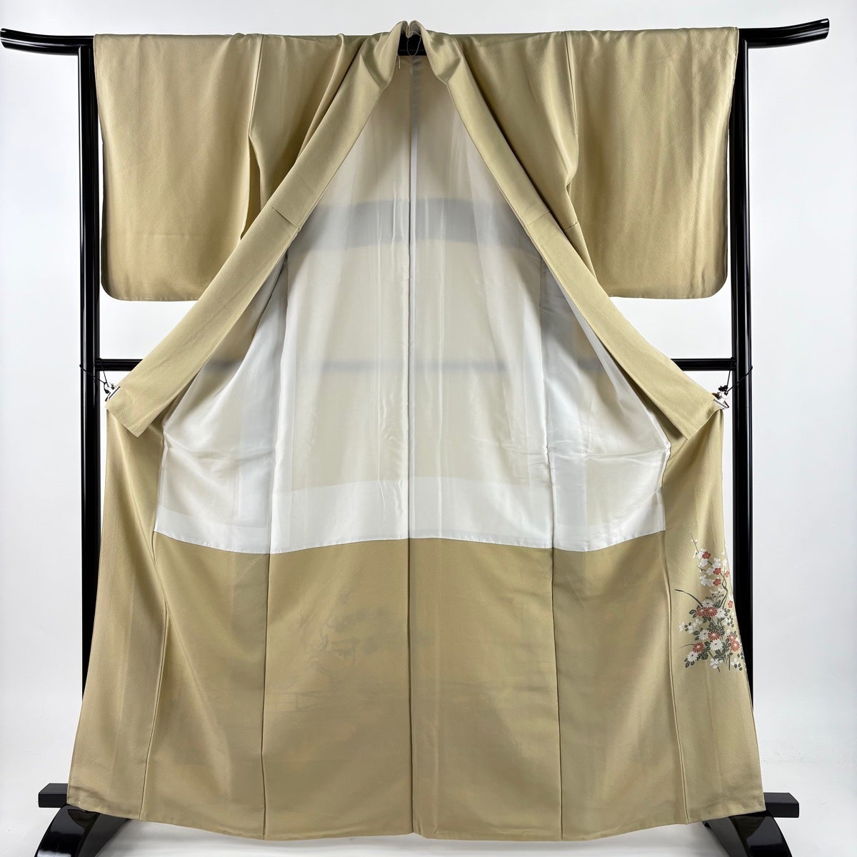 訪問着 身丈167.5cm 裄丈71cm L 袷 雪輪 草花 金糸 金彩 ベージュ 正絹 名品 一つ紋