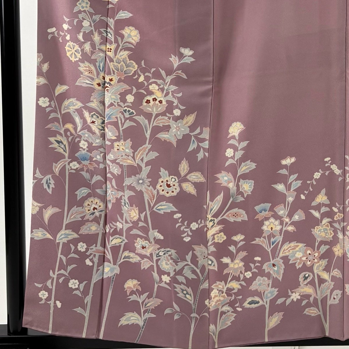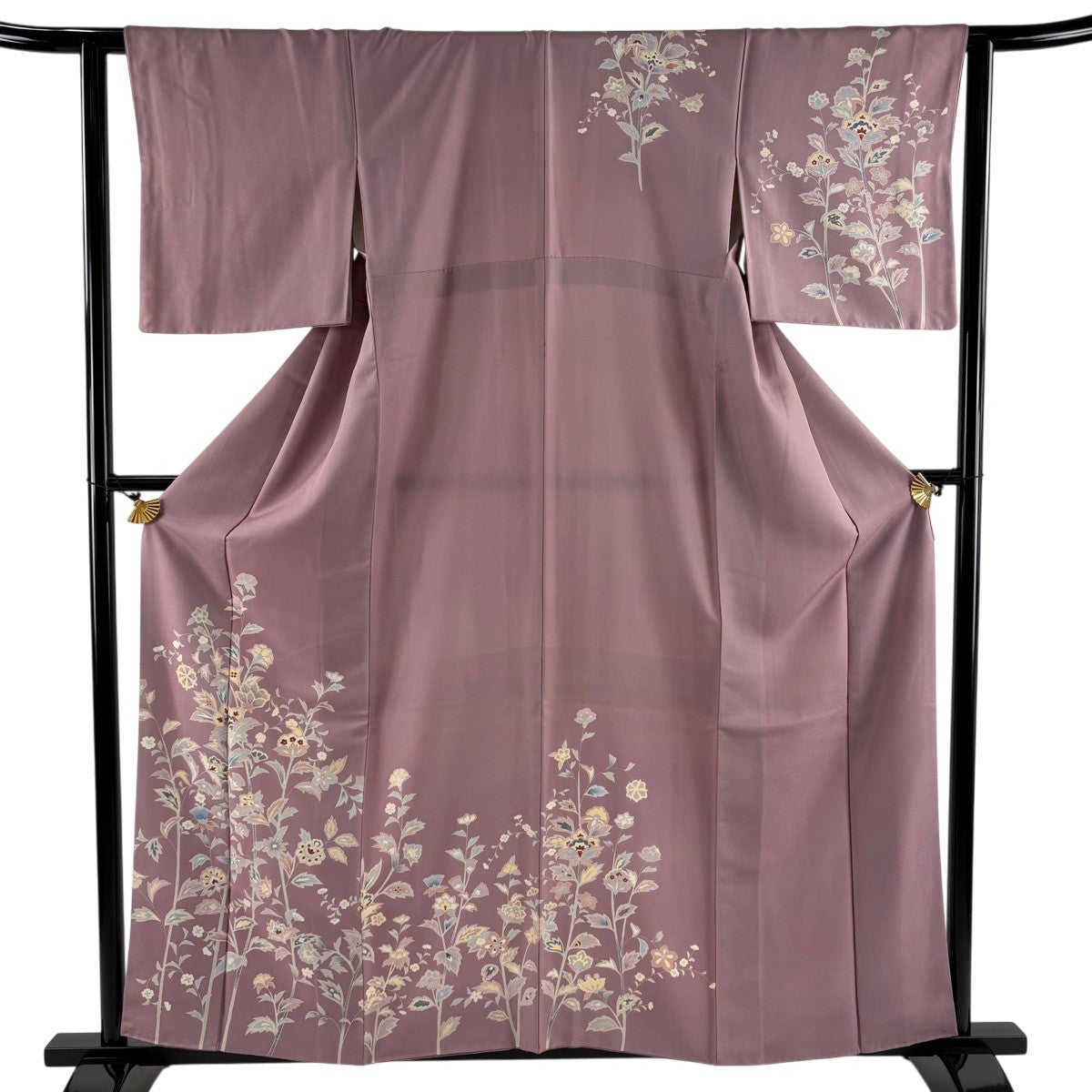 訪問着 身丈156.5cm 裄丈66cm M 袷 落款あり 草花 流水 金彩 ぼかし 灰紫 正絹 名品