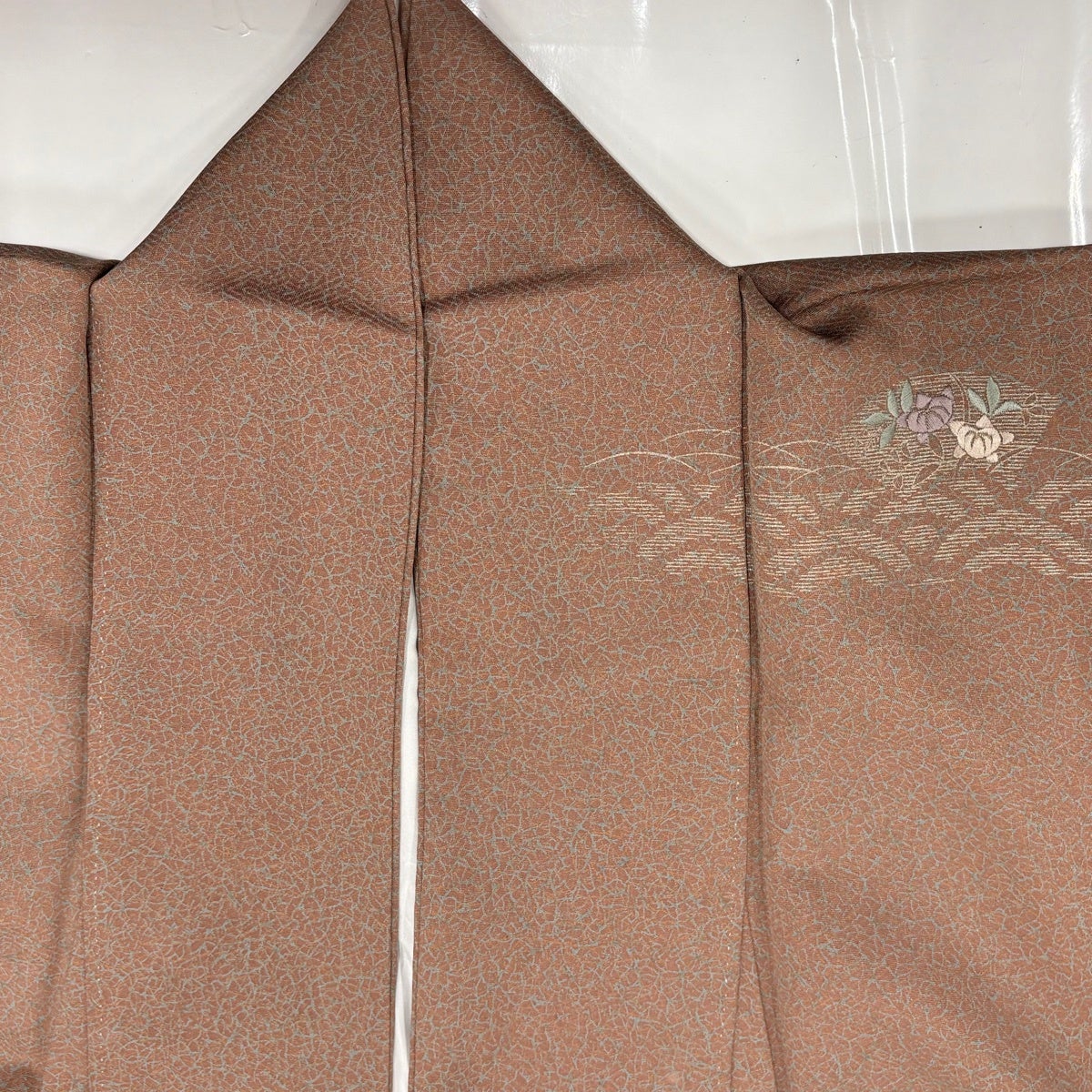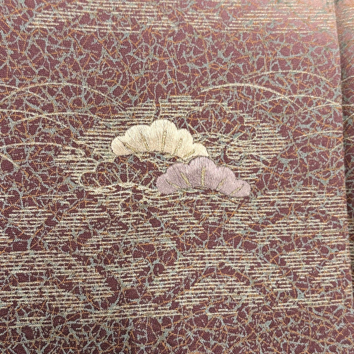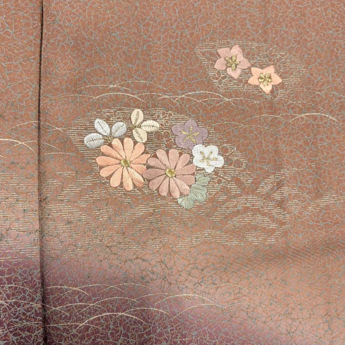 訪問着 身丈159.5cm 裄丈65cm M 袷 向かい鳥 花唐草 金糸 刺繍 薄小豆 正絹 名品
