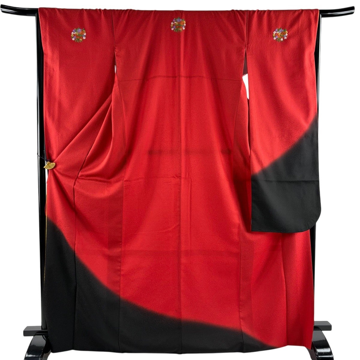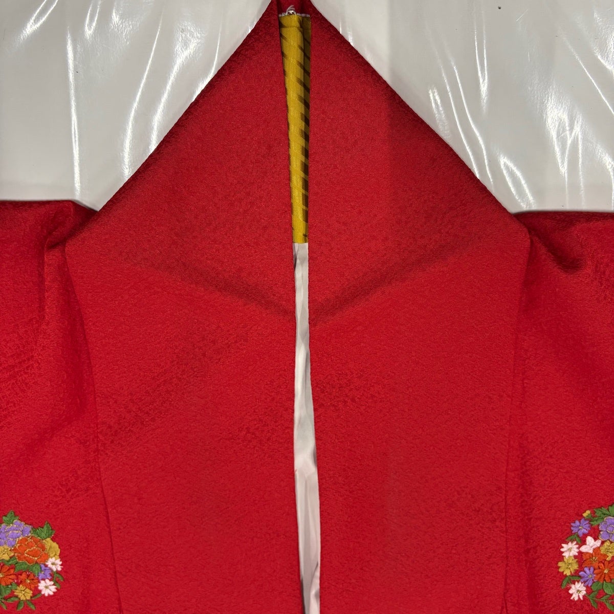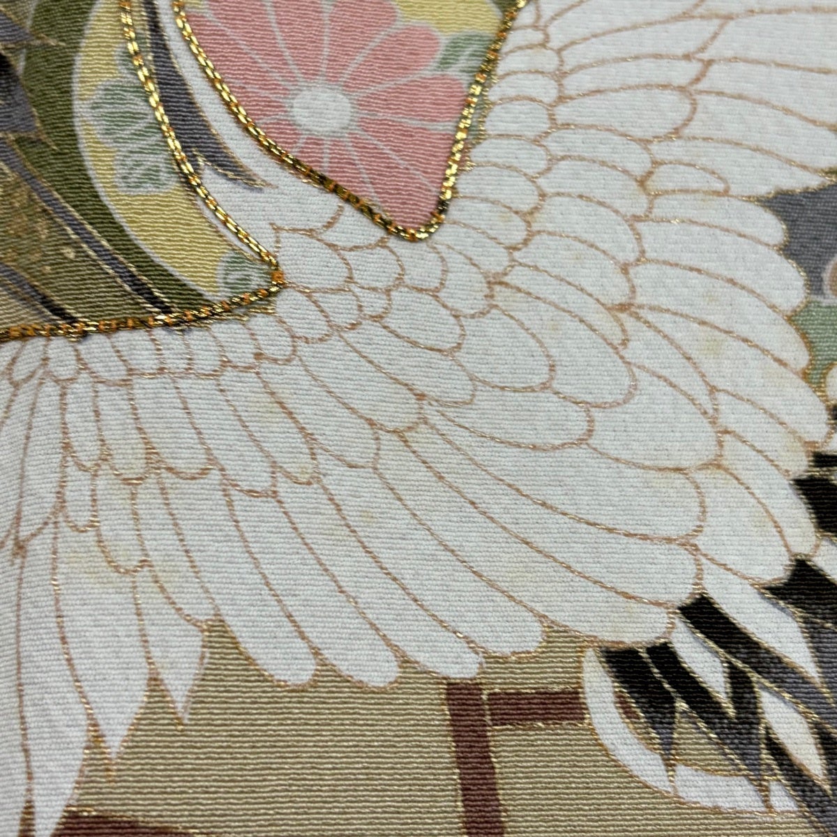 訪問着 身丈159.5cm 裄丈65cm M 袷 向かい鳥 花唐草 金糸 刺繍 薄小豆 正絹 名品