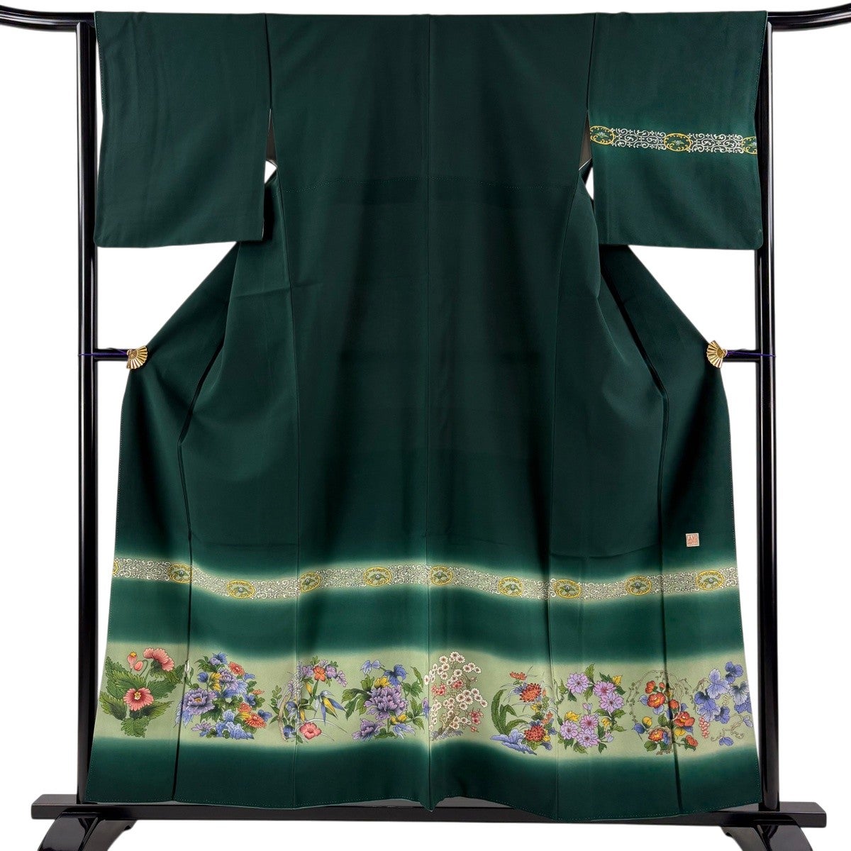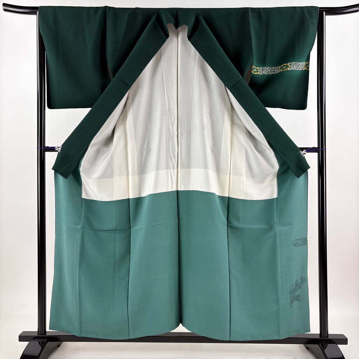 付下げ 身丈156.5cm 裄丈64.5cm M 袷 落款あり 草花 ぼかし 深緑 正絹 優品