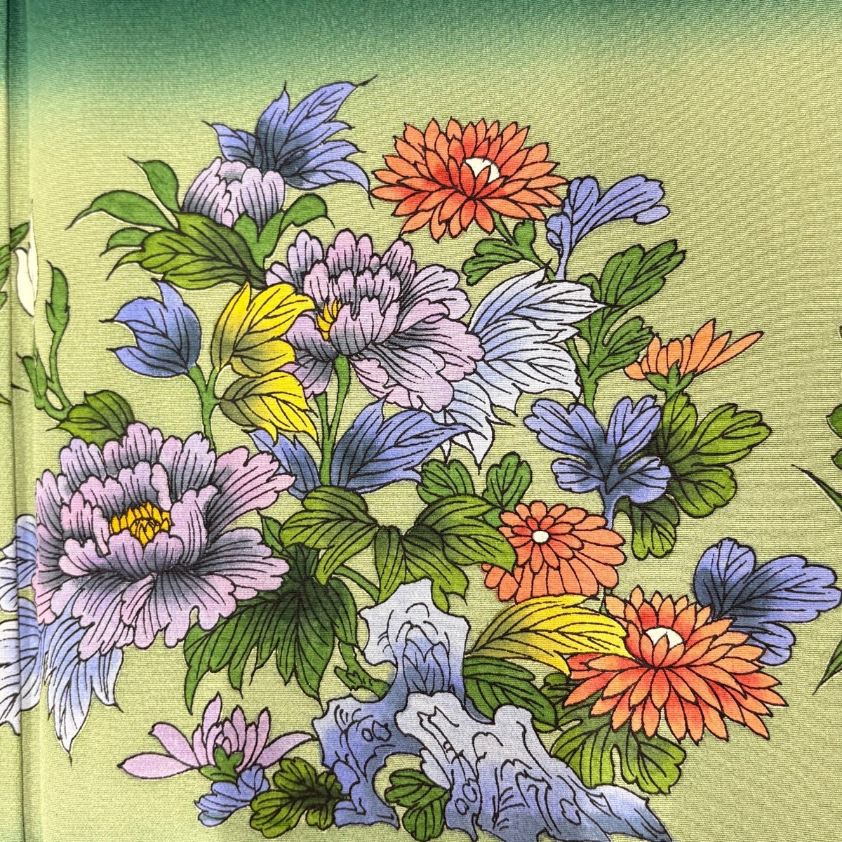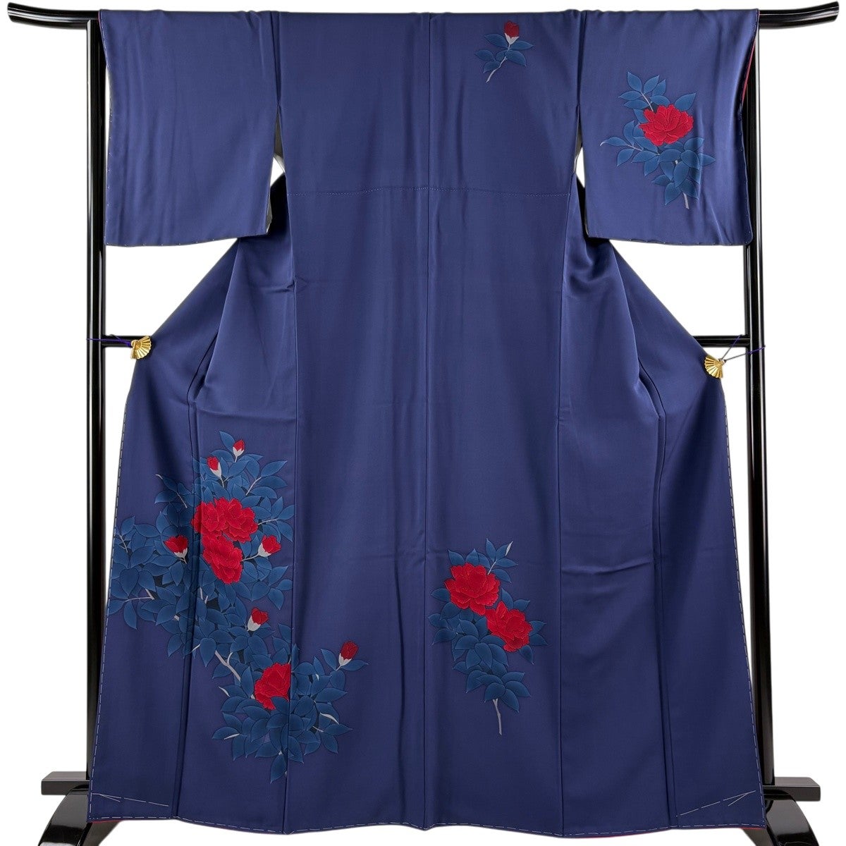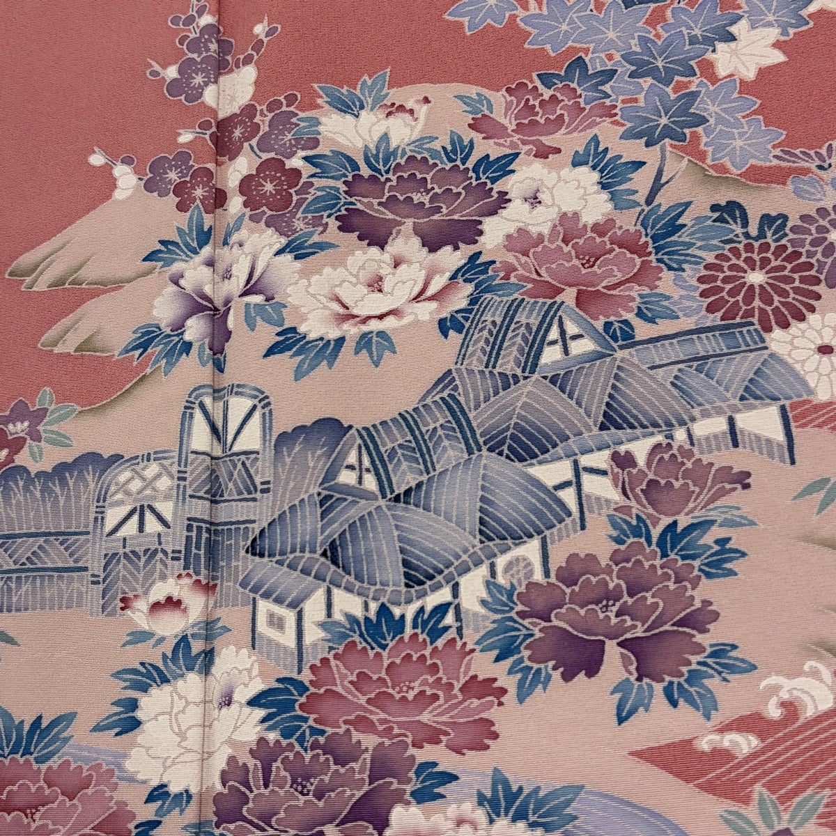 付下げ 身丈165cm 裄丈65.5cm M 袷 牡丹 青紫 正絹 優品