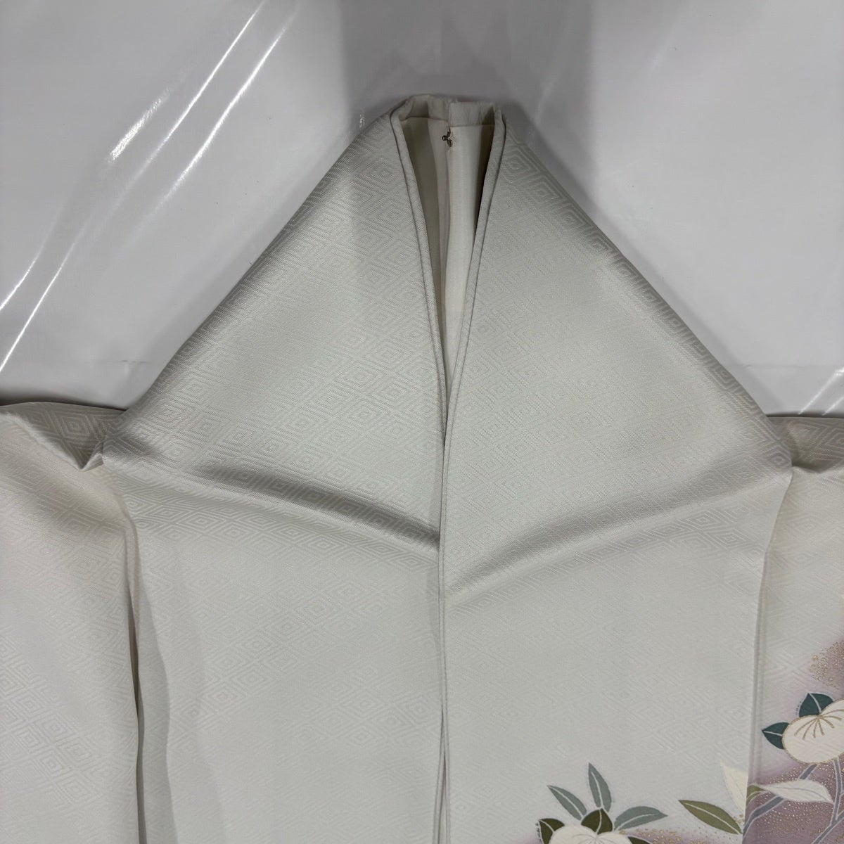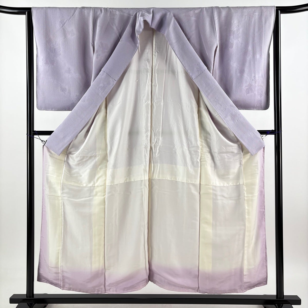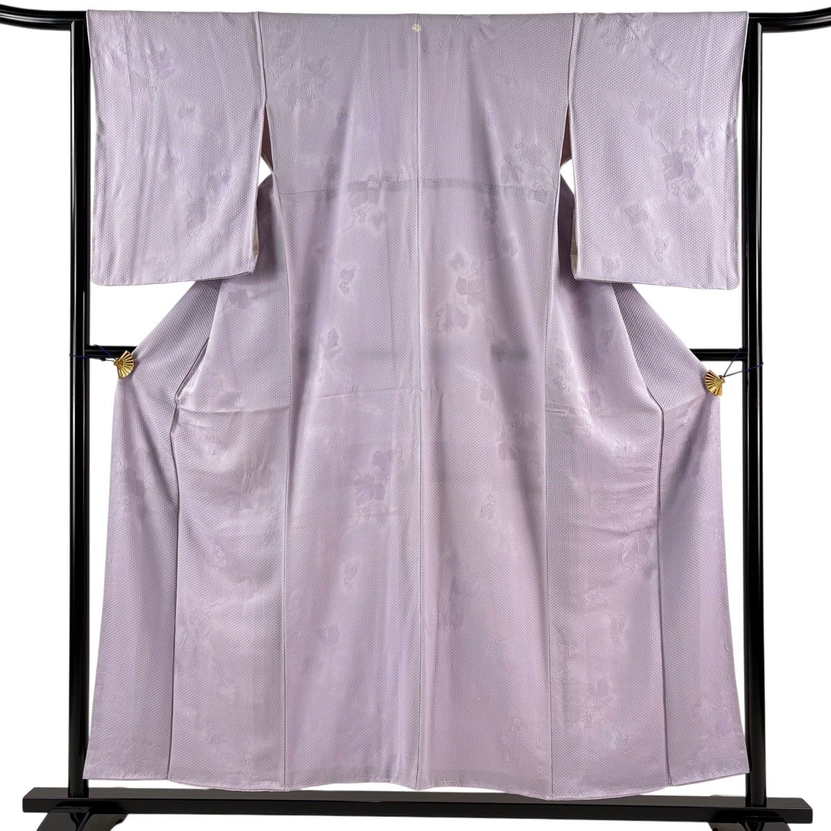 色無地 身丈155cm 裄丈63.5cm S 袷 地紋 薄紫 正絹 優品 一つ紋