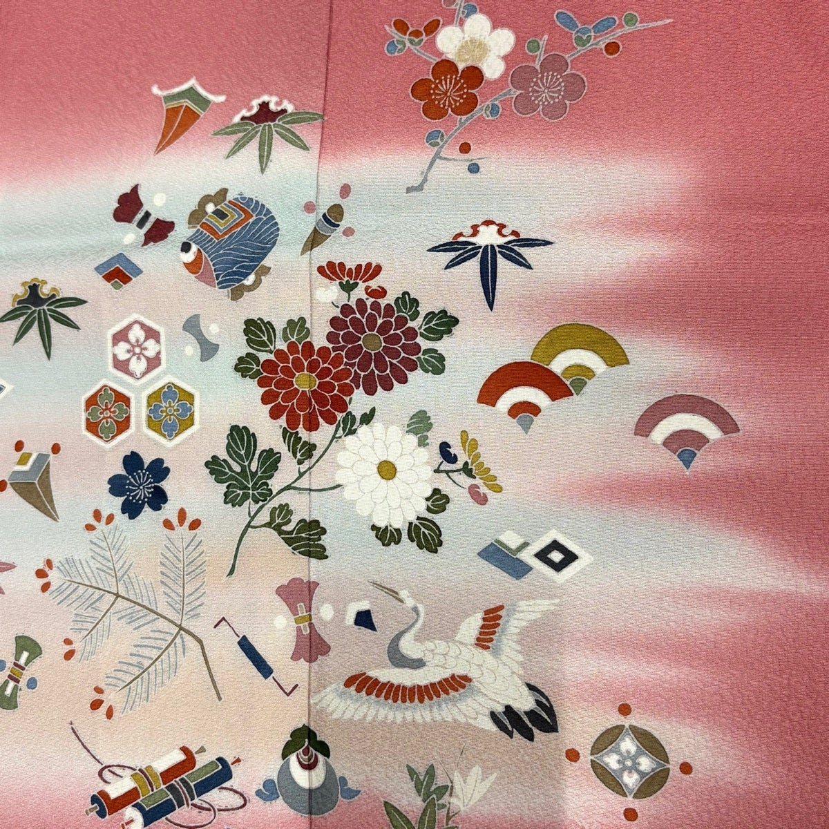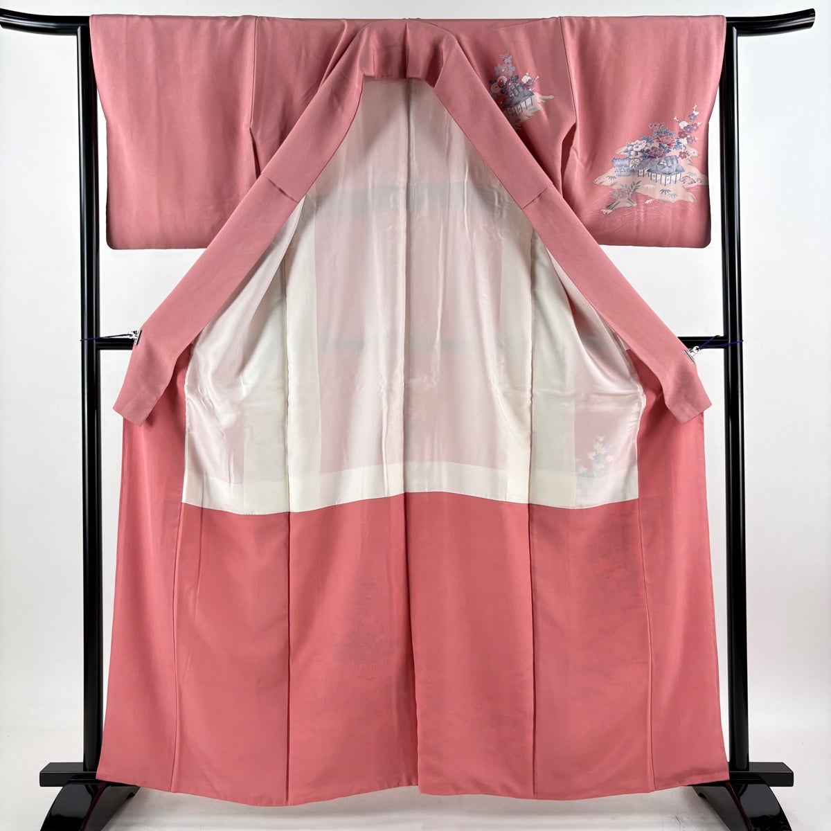 付下げ 身丈162.5cm 裄丈64.5cm M 袷 宝尽くし 松竹梅 ぼかし ピンク 正絹 優品