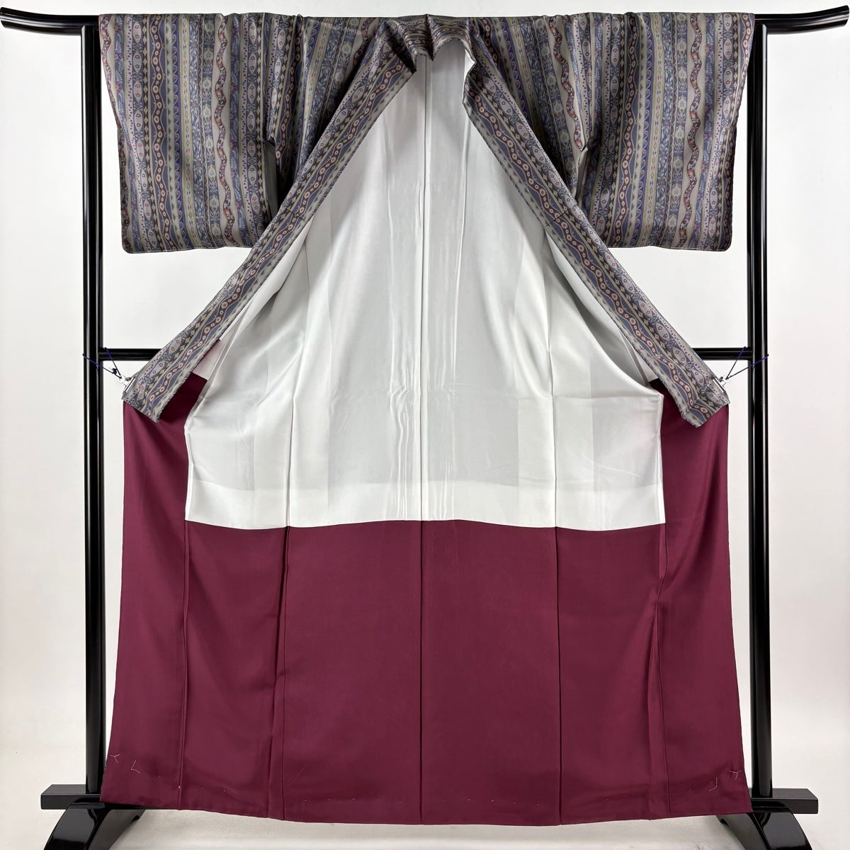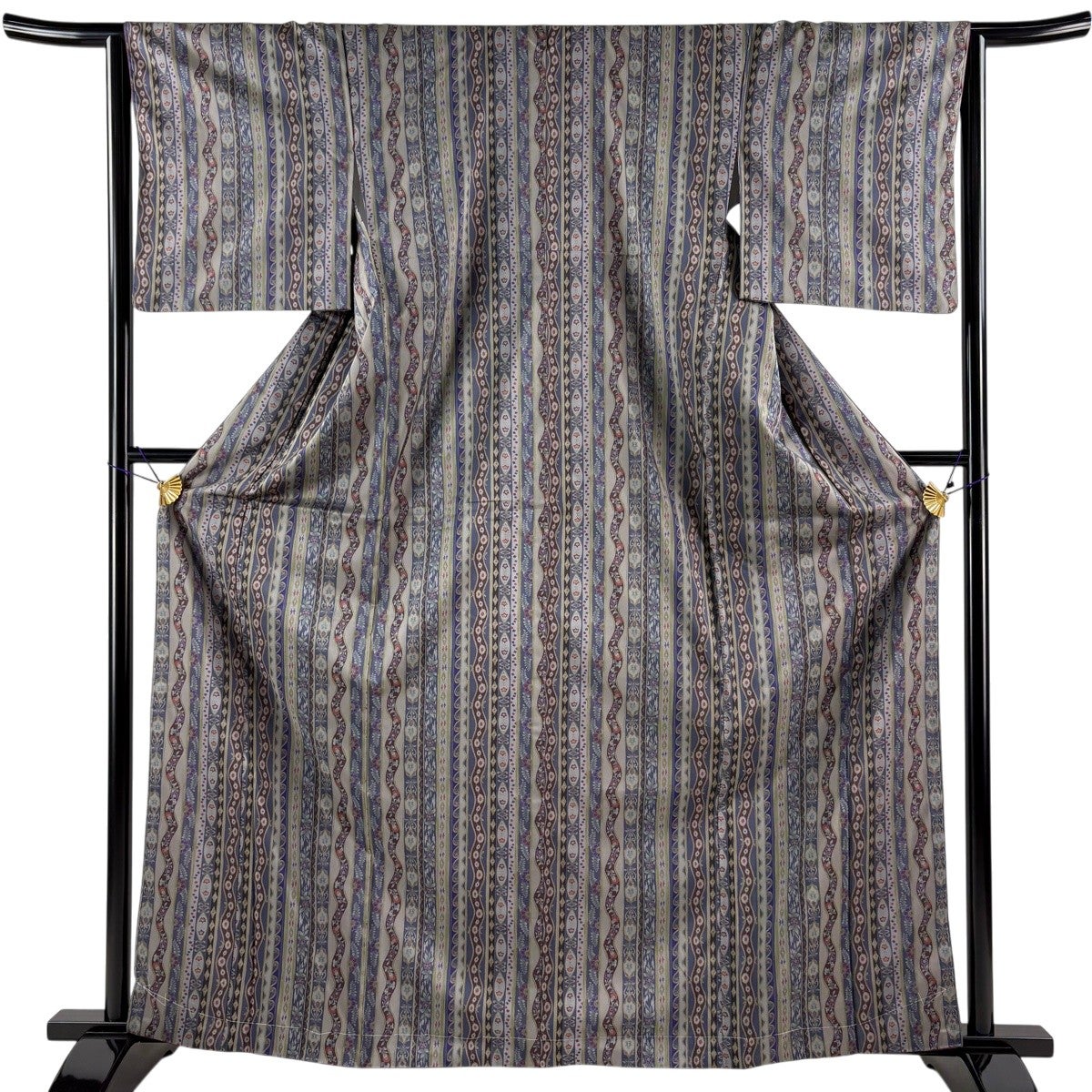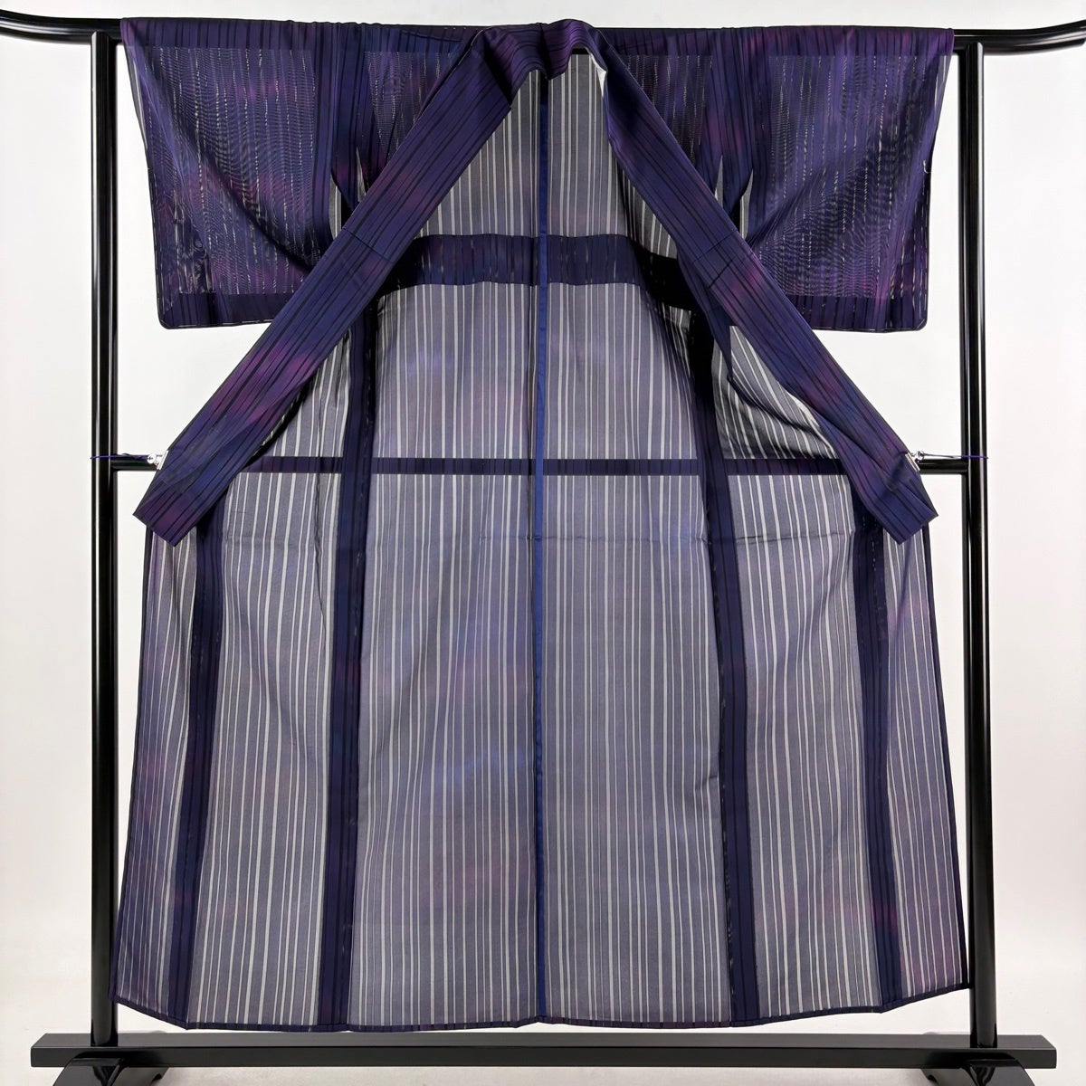 小紋 身丈155cm 裄丈61cm S 薄物 紗 縞 ぼかし 紫 正絹 優品