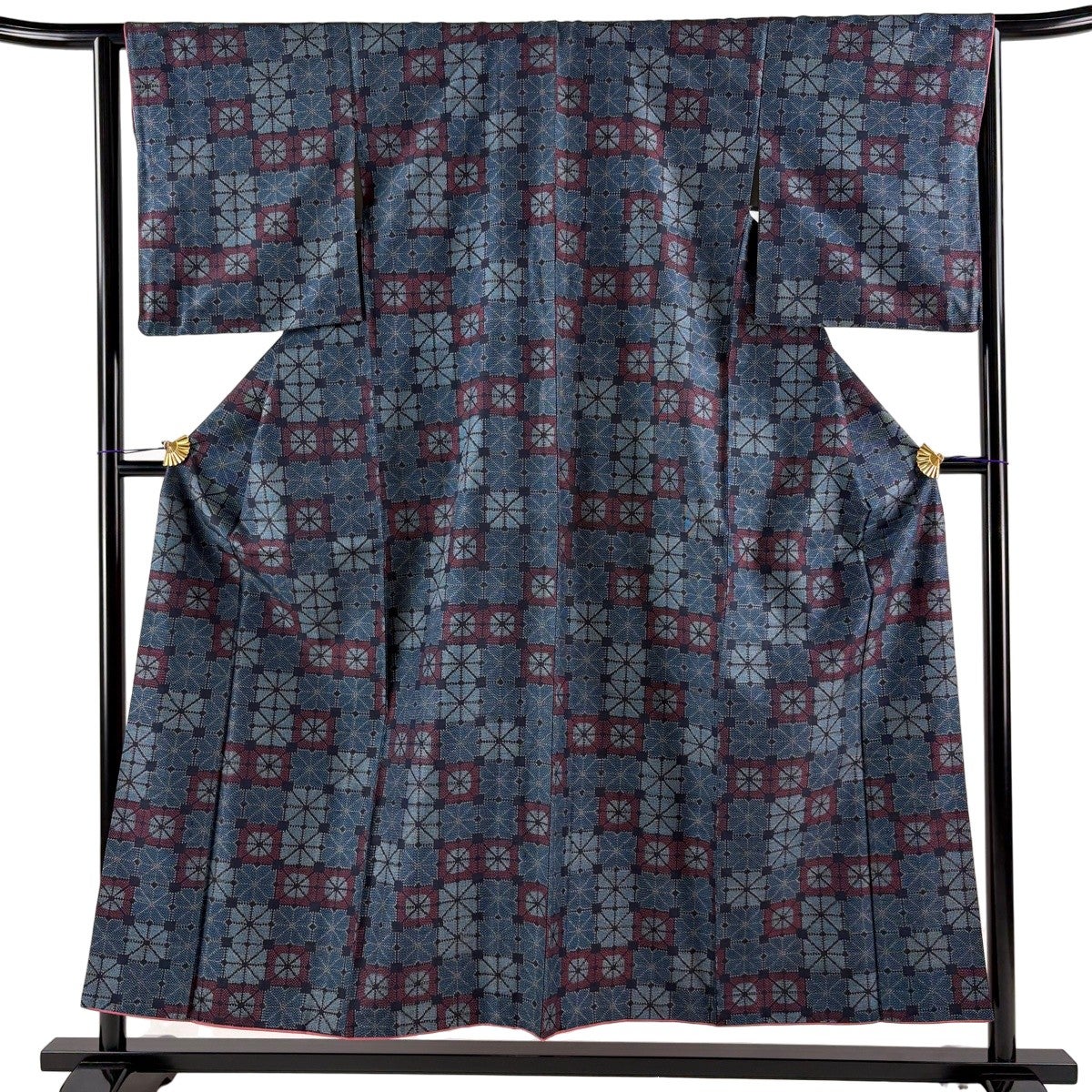 江戸小紋 身丈153cm 裄丈62.5cm S 袷 鮫 赤紫 正絹 優品 一つ紋