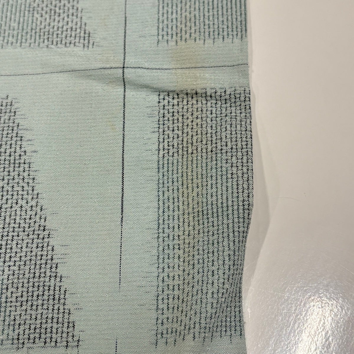 紬 身丈151.5cm 裄丈63cm S 単衣 幾何学模様 薄青緑 正絹 優品
