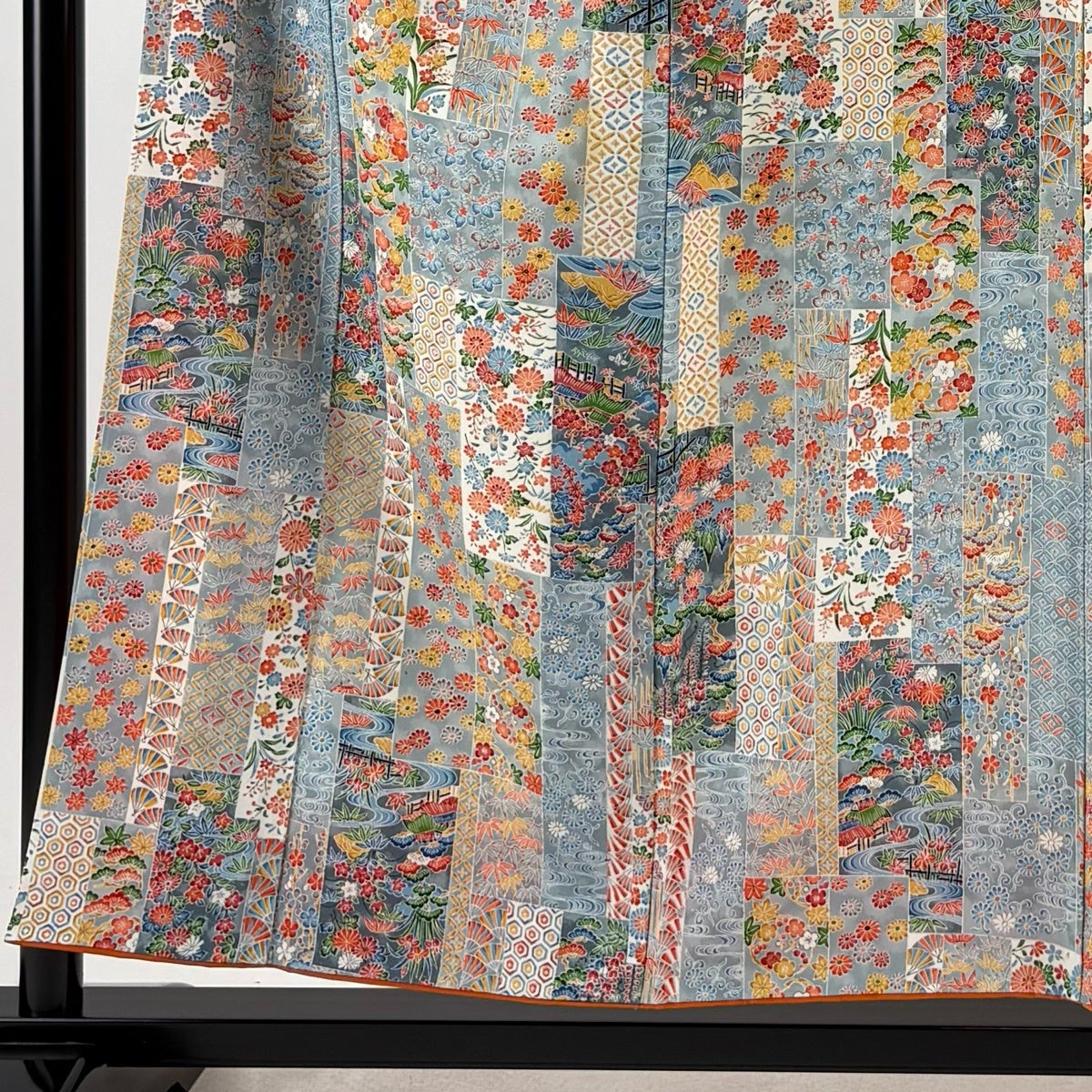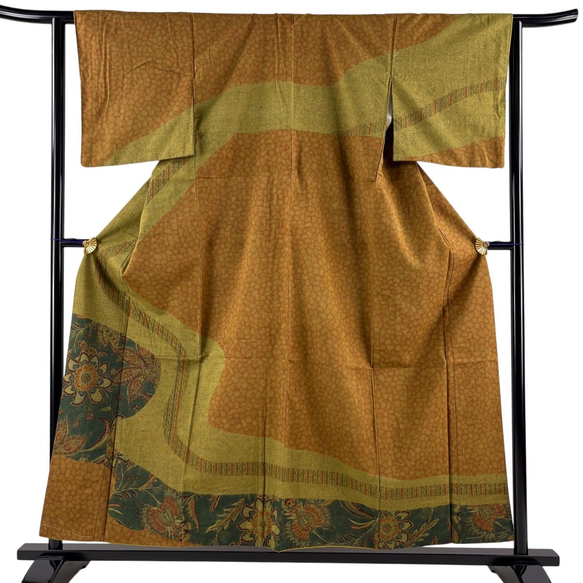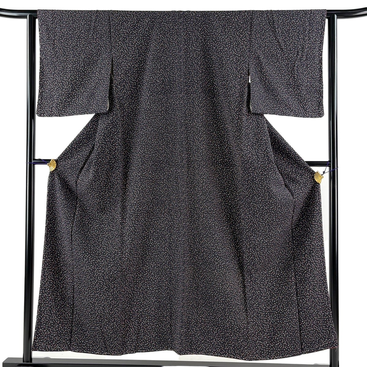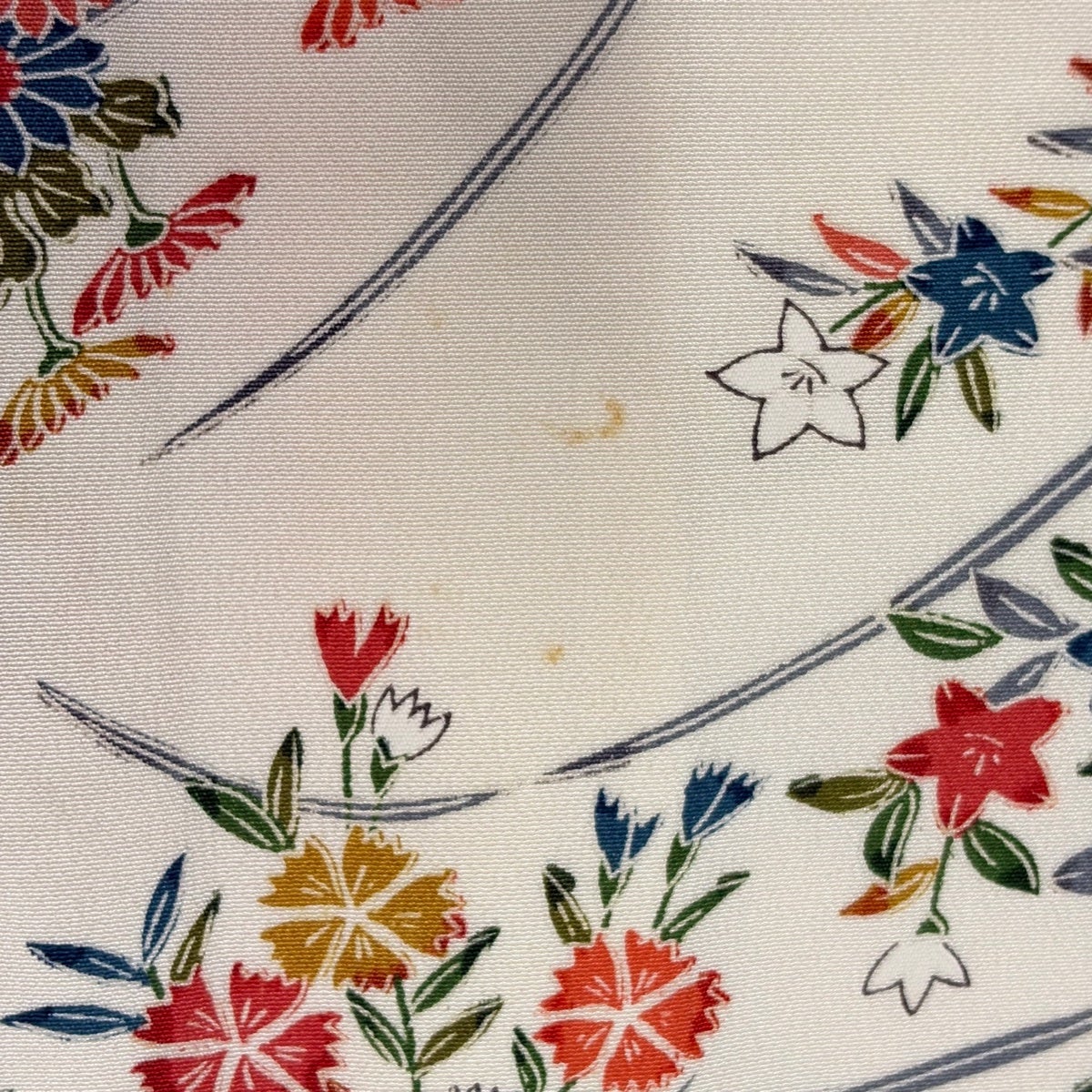 小紋 身丈155cm 裄丈64cm M 袷 扇 草花 クリーム 正絹 優品