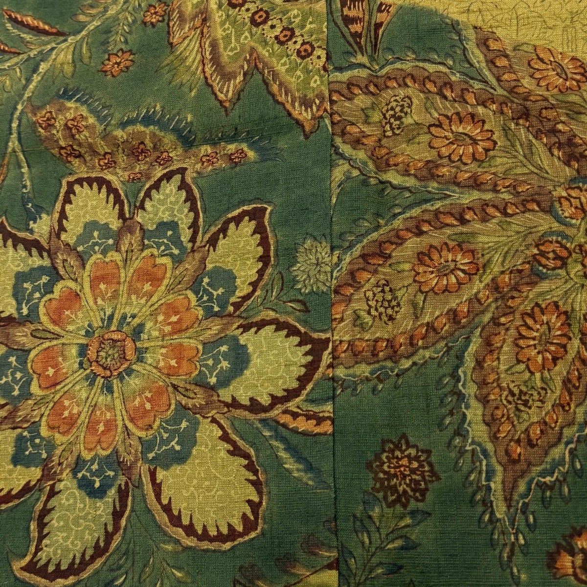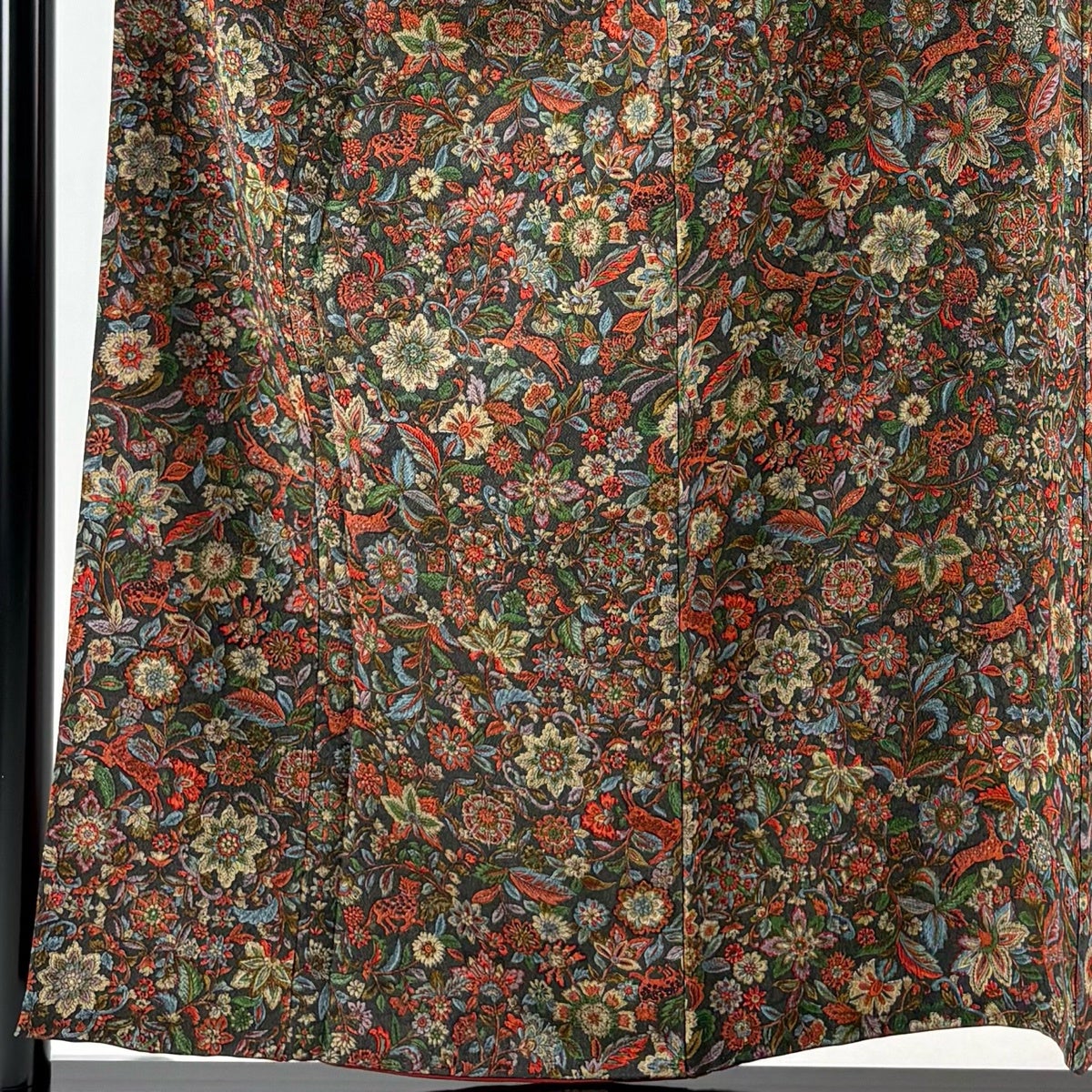 【美品】 小紋 身丈155cm 裄丈63cm S 袷 華文 鹿 縮緬 深緑 正絹 優品