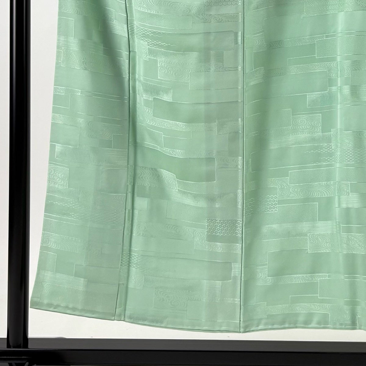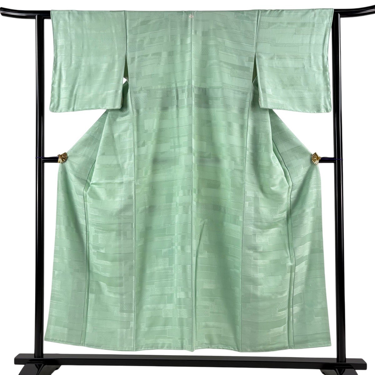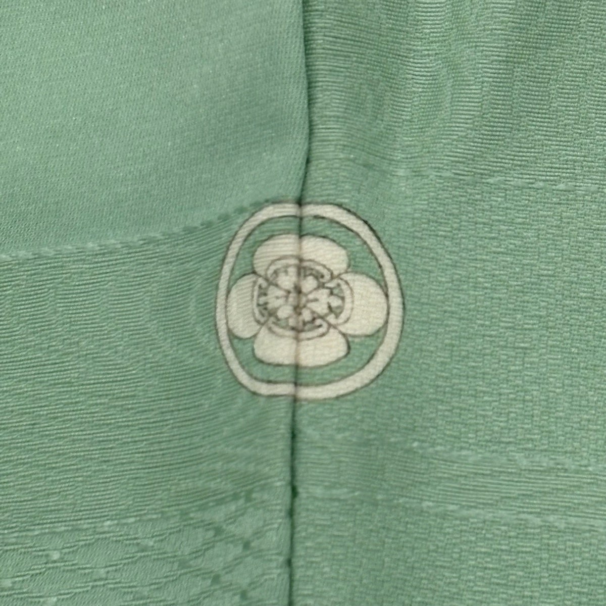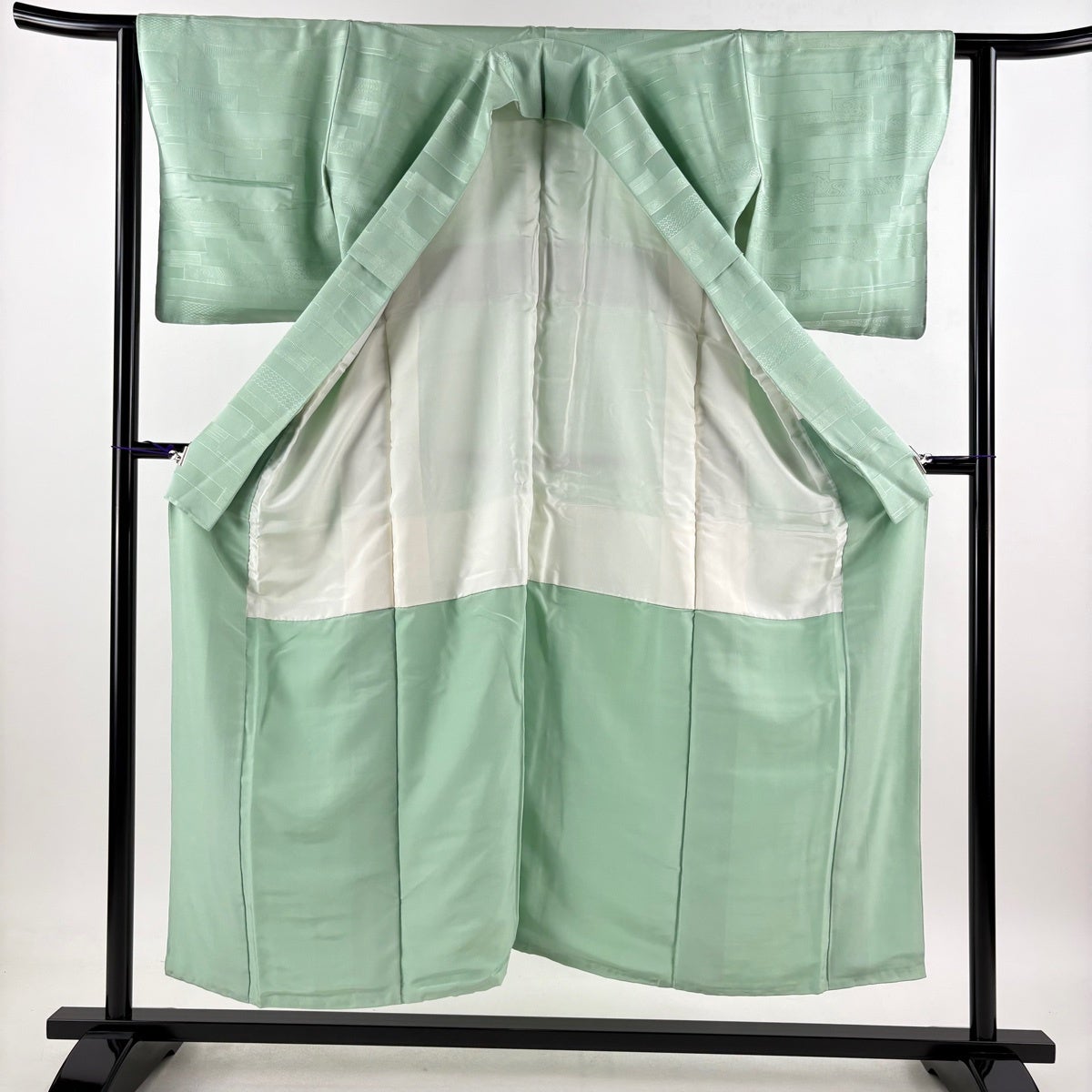 色無地 身丈151cm 裄丈61.5cm S 袷 地紋 薄緑 正絹 優品 一つ紋