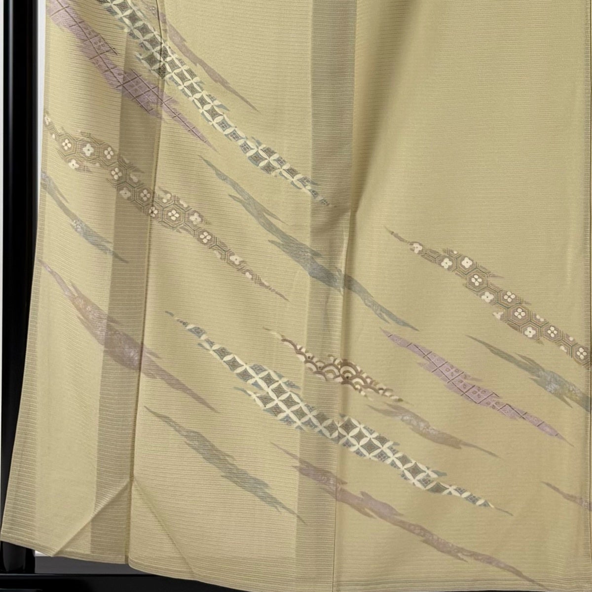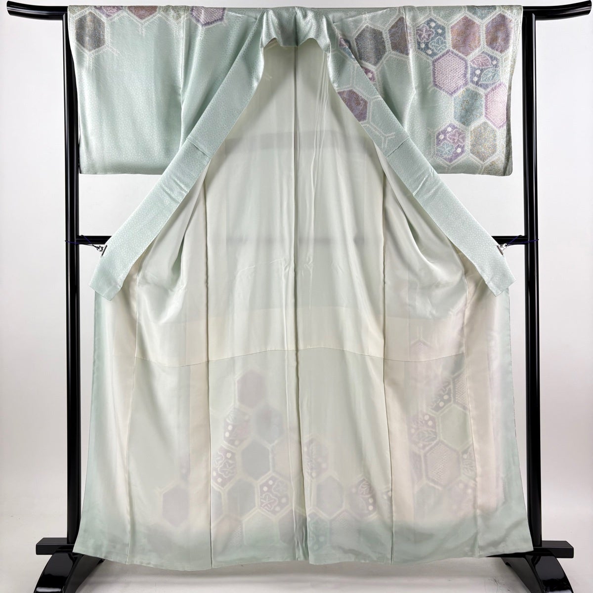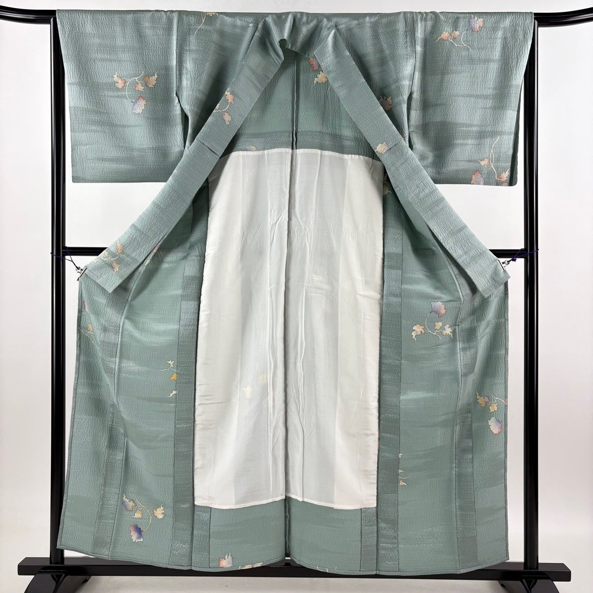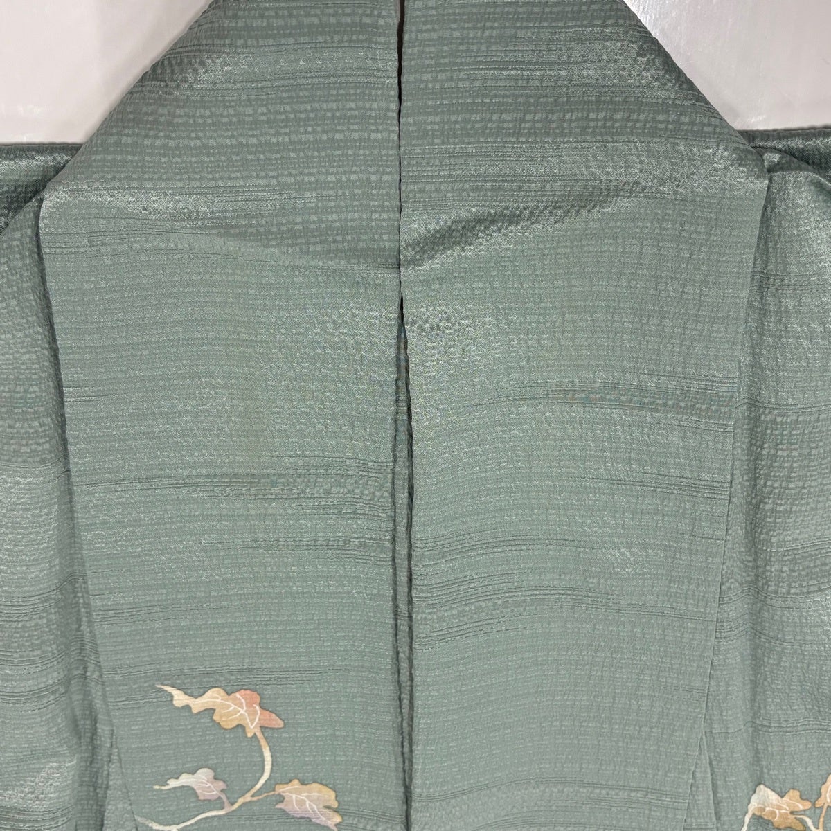 色無地 身丈151cm 裄丈61.5cm S 袷 地紋 薄緑 正絹 優品 一つ紋
