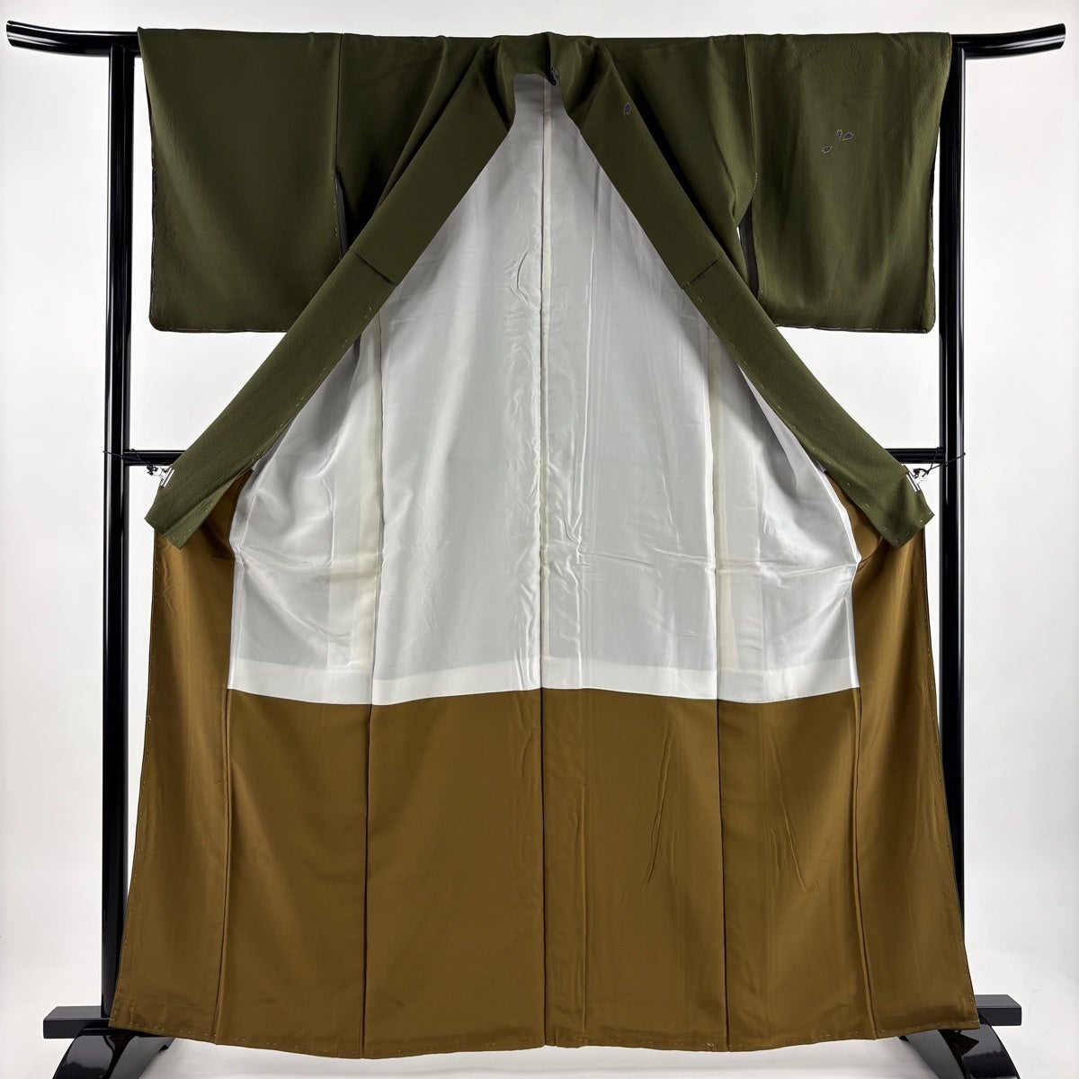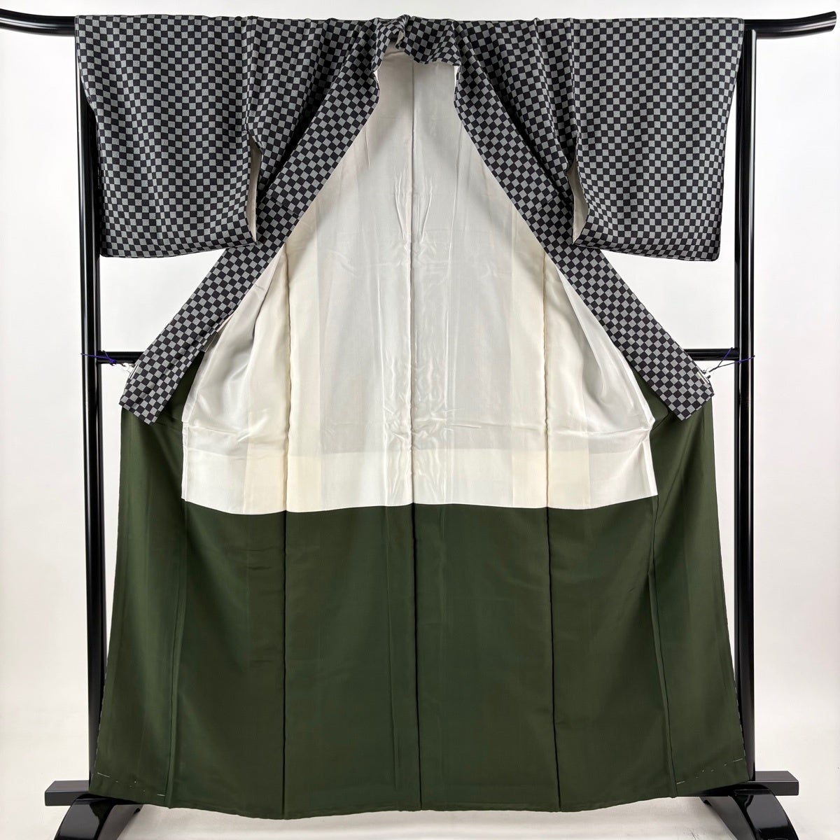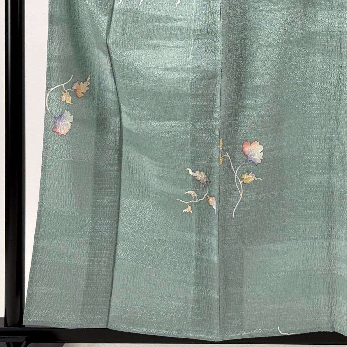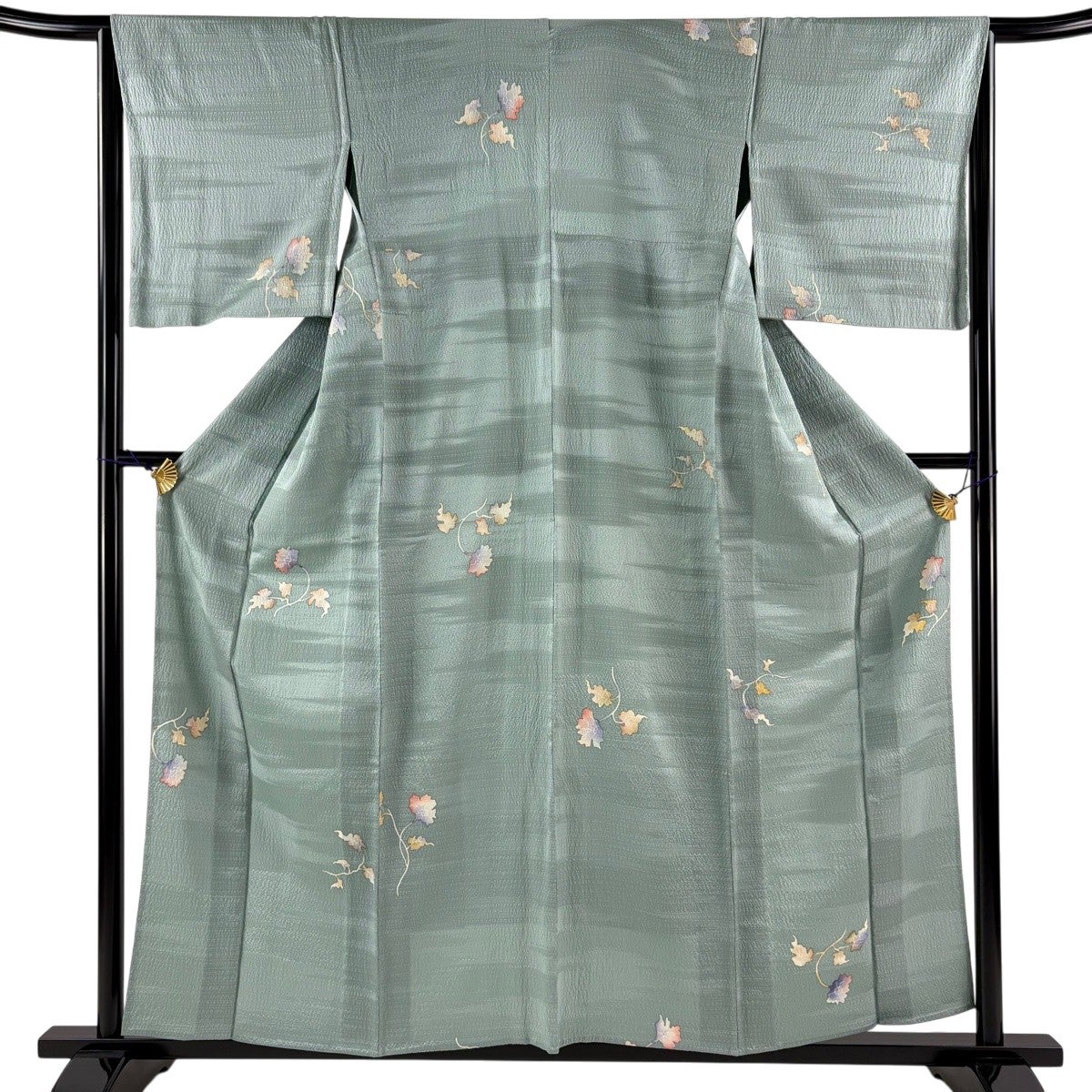 色無地 身丈151cm 裄丈61.5cm S 袷 地紋 薄緑 正絹 優品 一つ紋