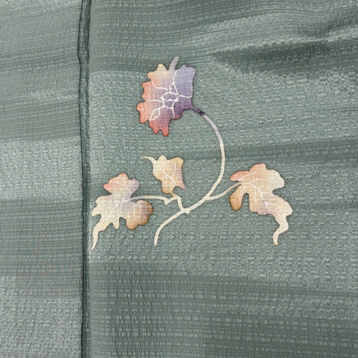 【美品】 紬 身丈159.5cm 裄丈63.5cm S 袷 草花 灰緑 正絹 優品